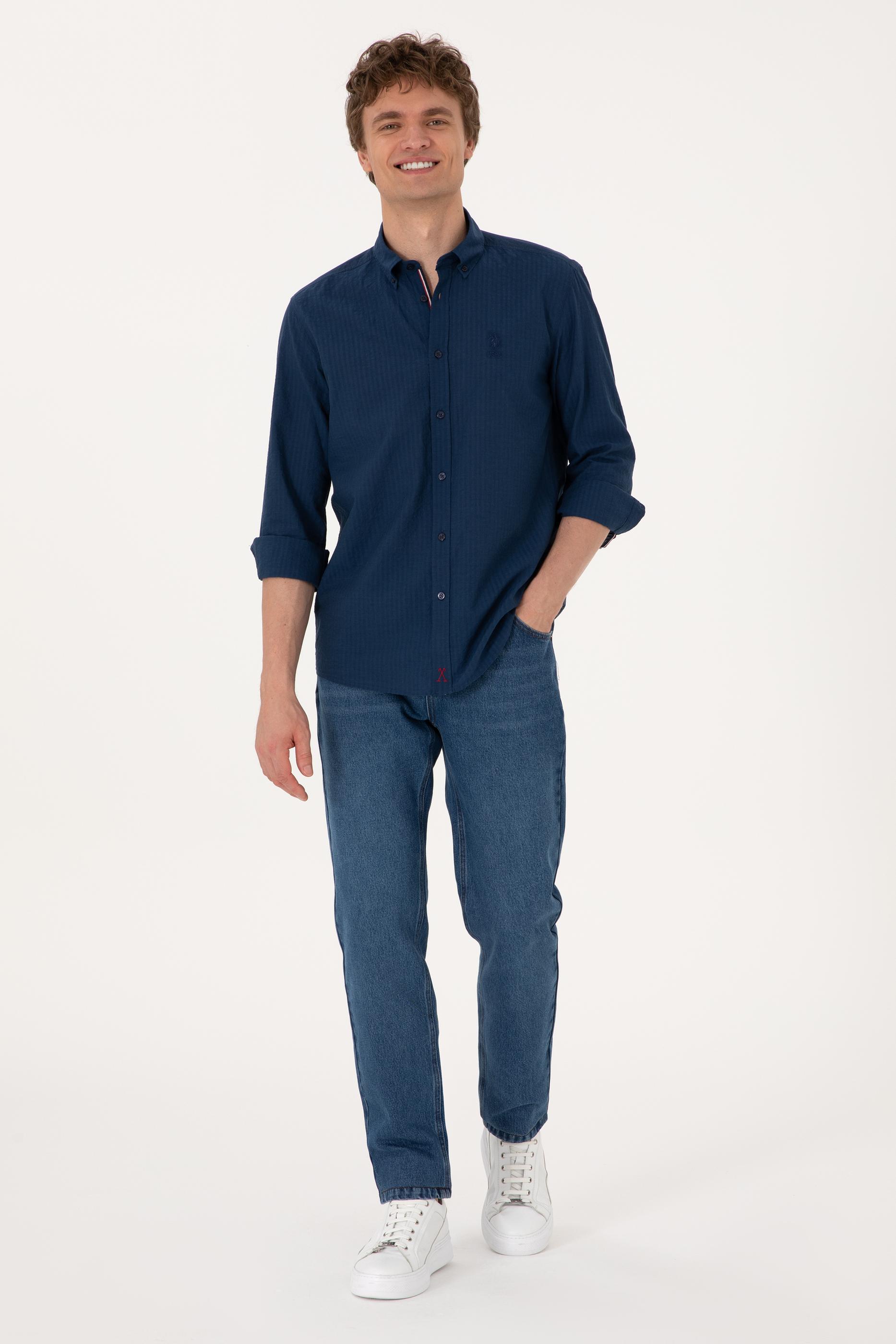 - Erkek İndigo Uzun Kollu Gömlek