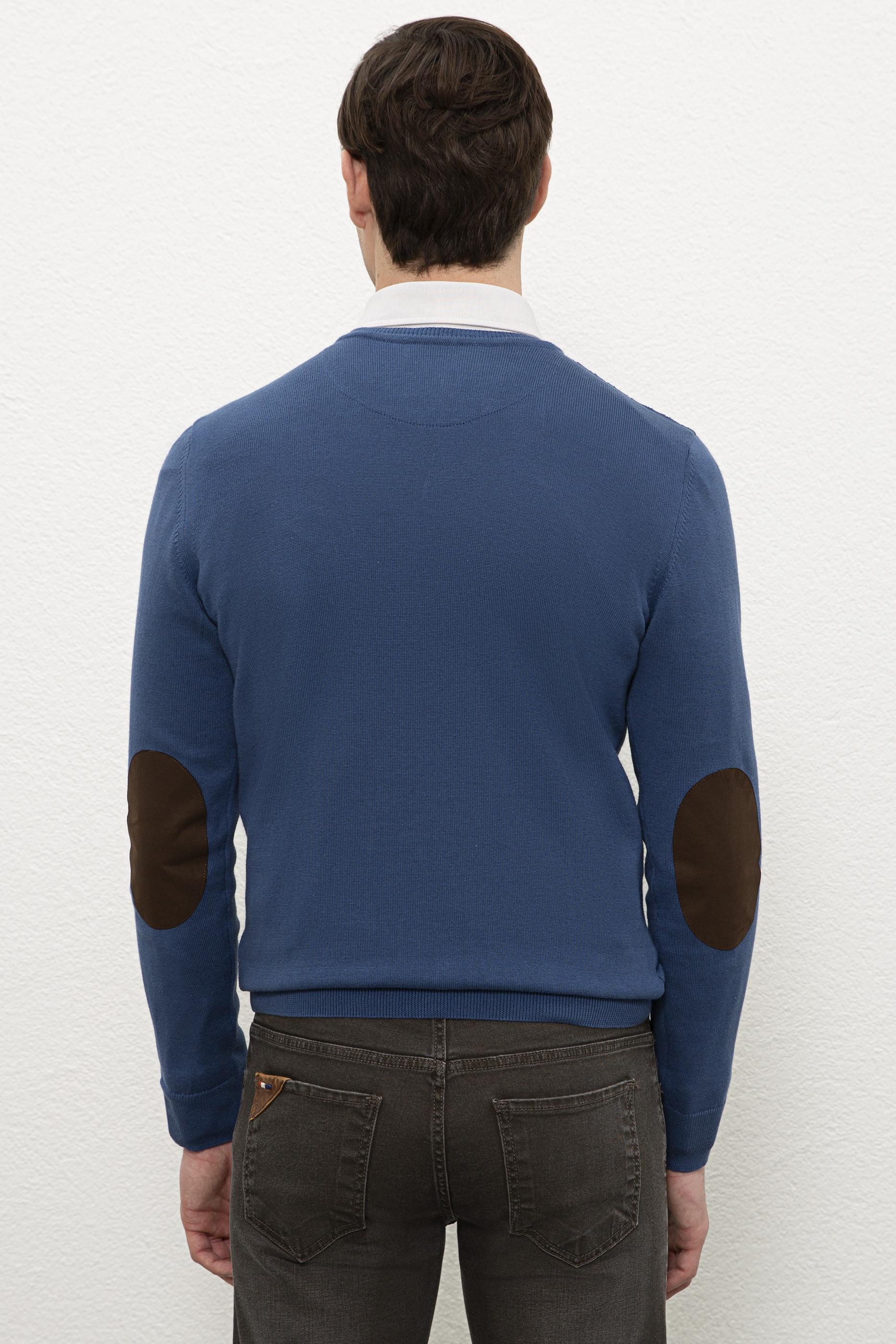 Erkek İndigo V-Yaka Triko Kazak Basic - 50206753005