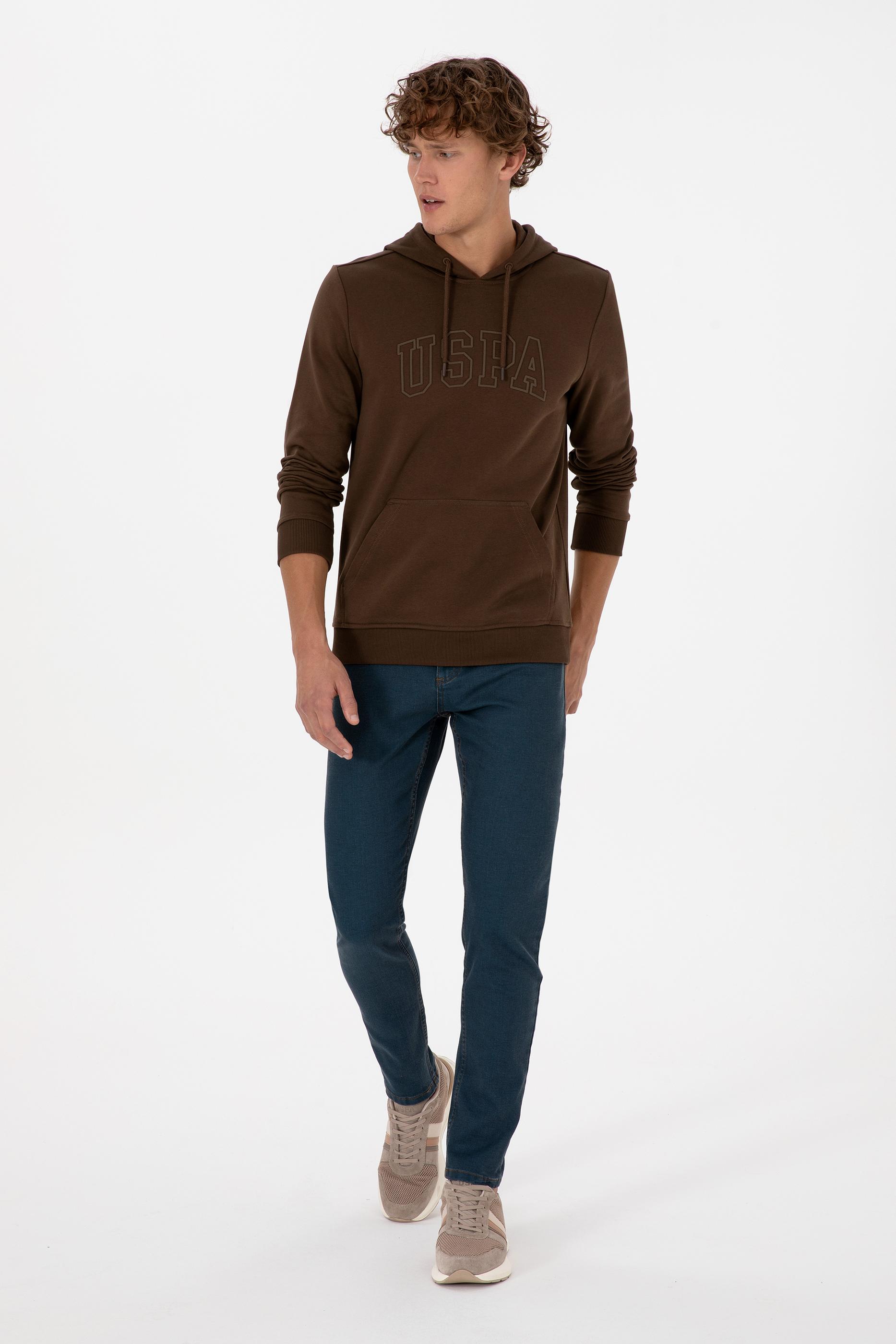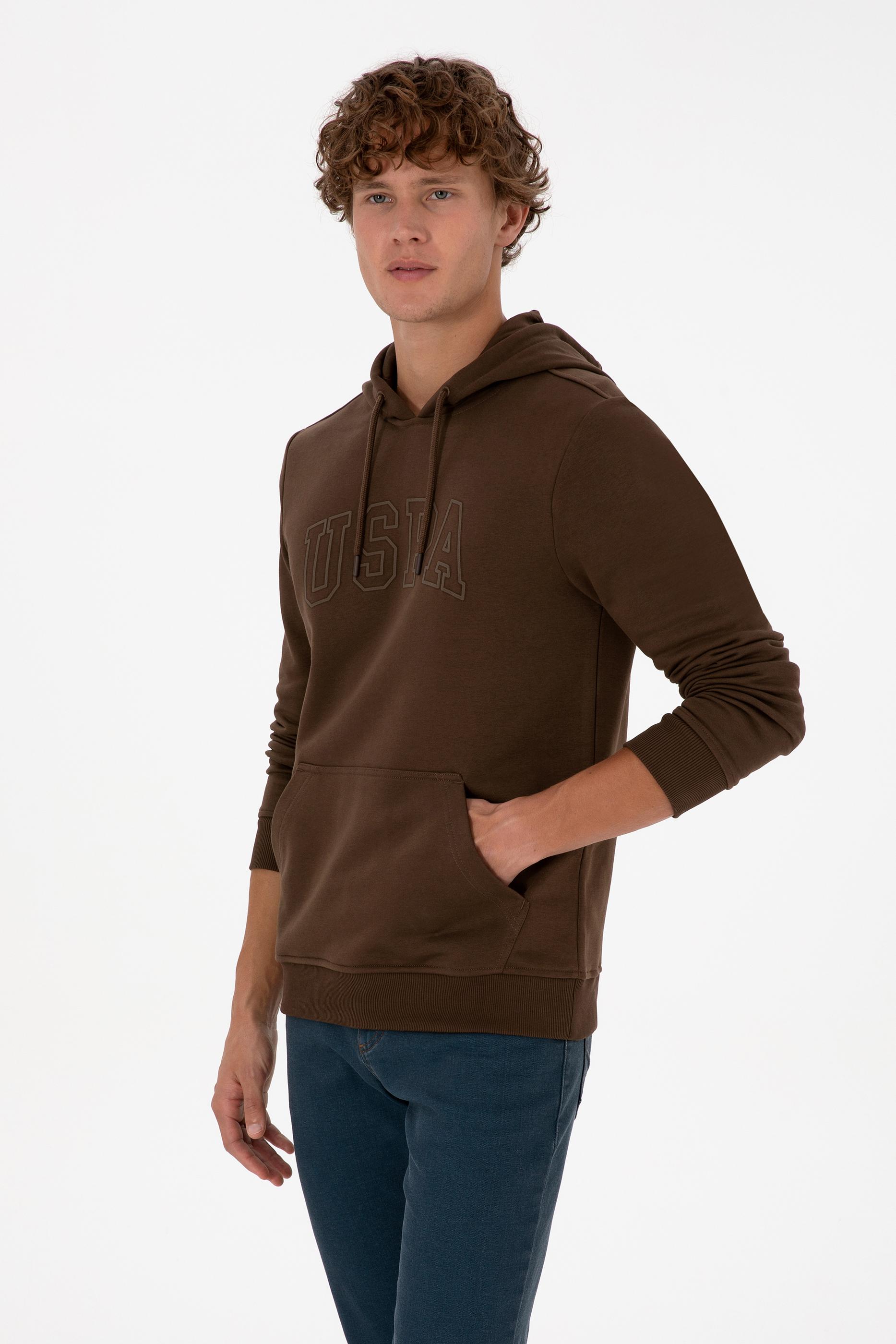 - Erkek Regular Fit Kapüşonlu Kahverengi Basic Sweatshirt
