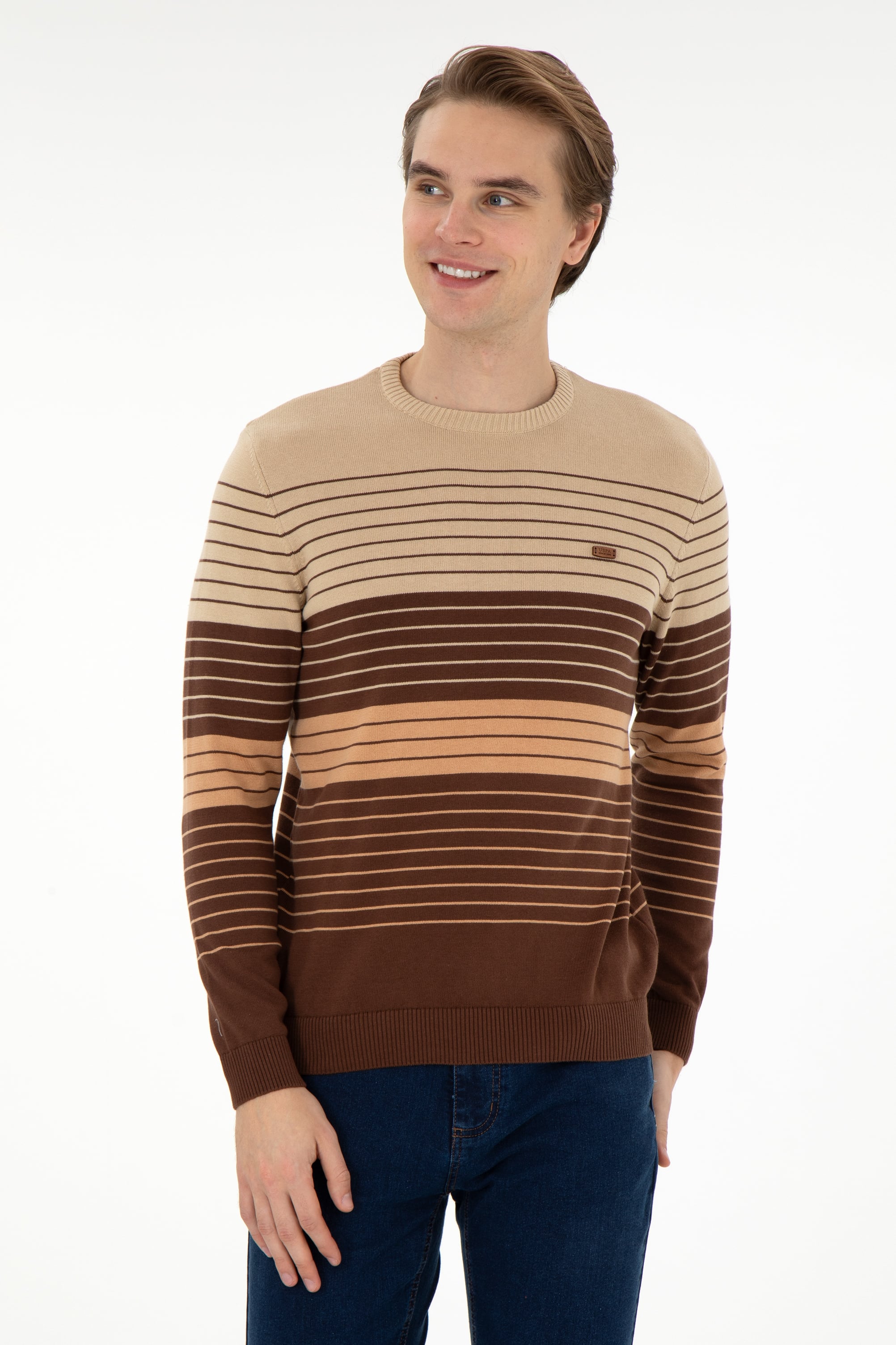 - Erkek Slim Fit Bisiklet Yaka Kahverengi Kazak