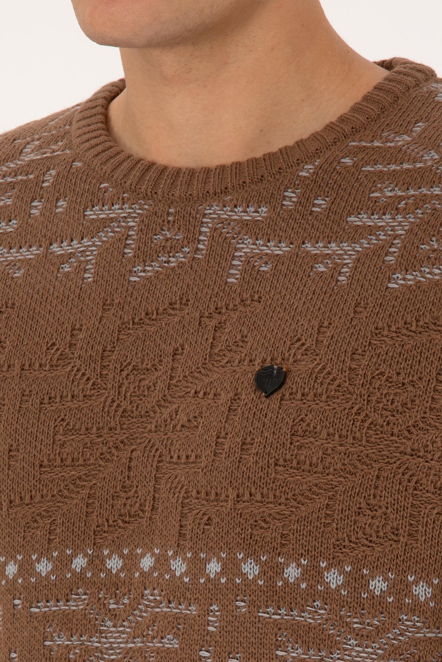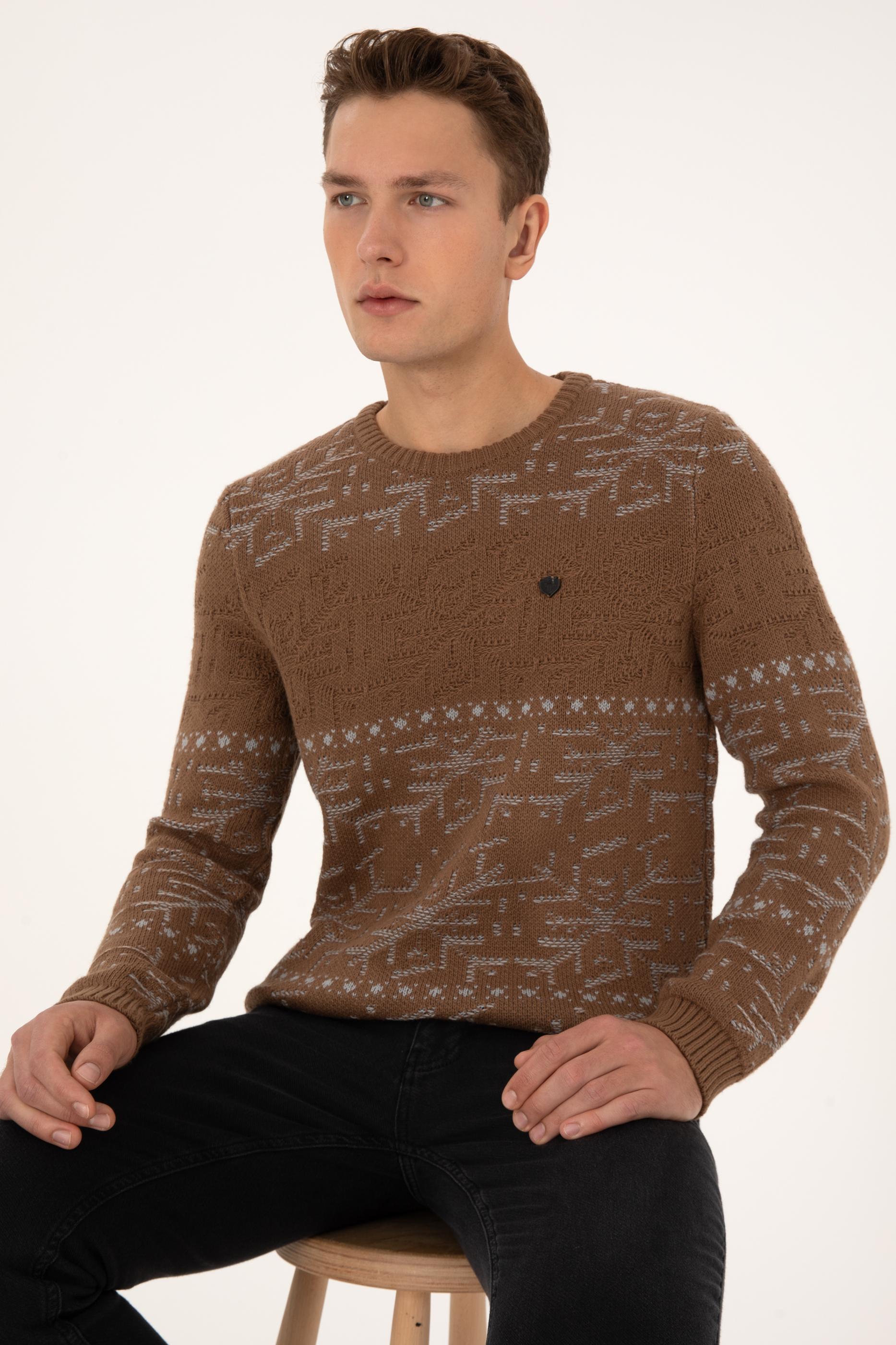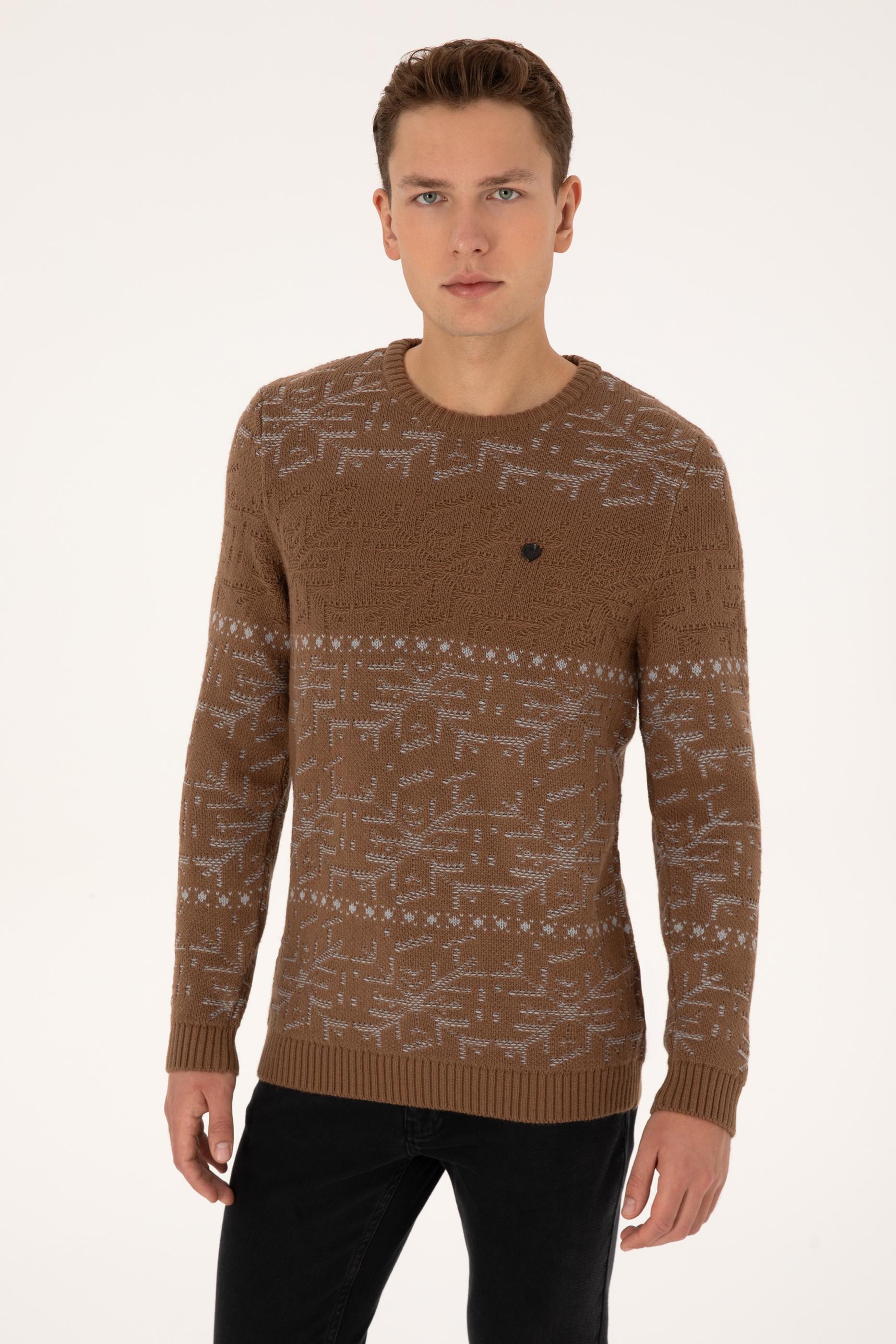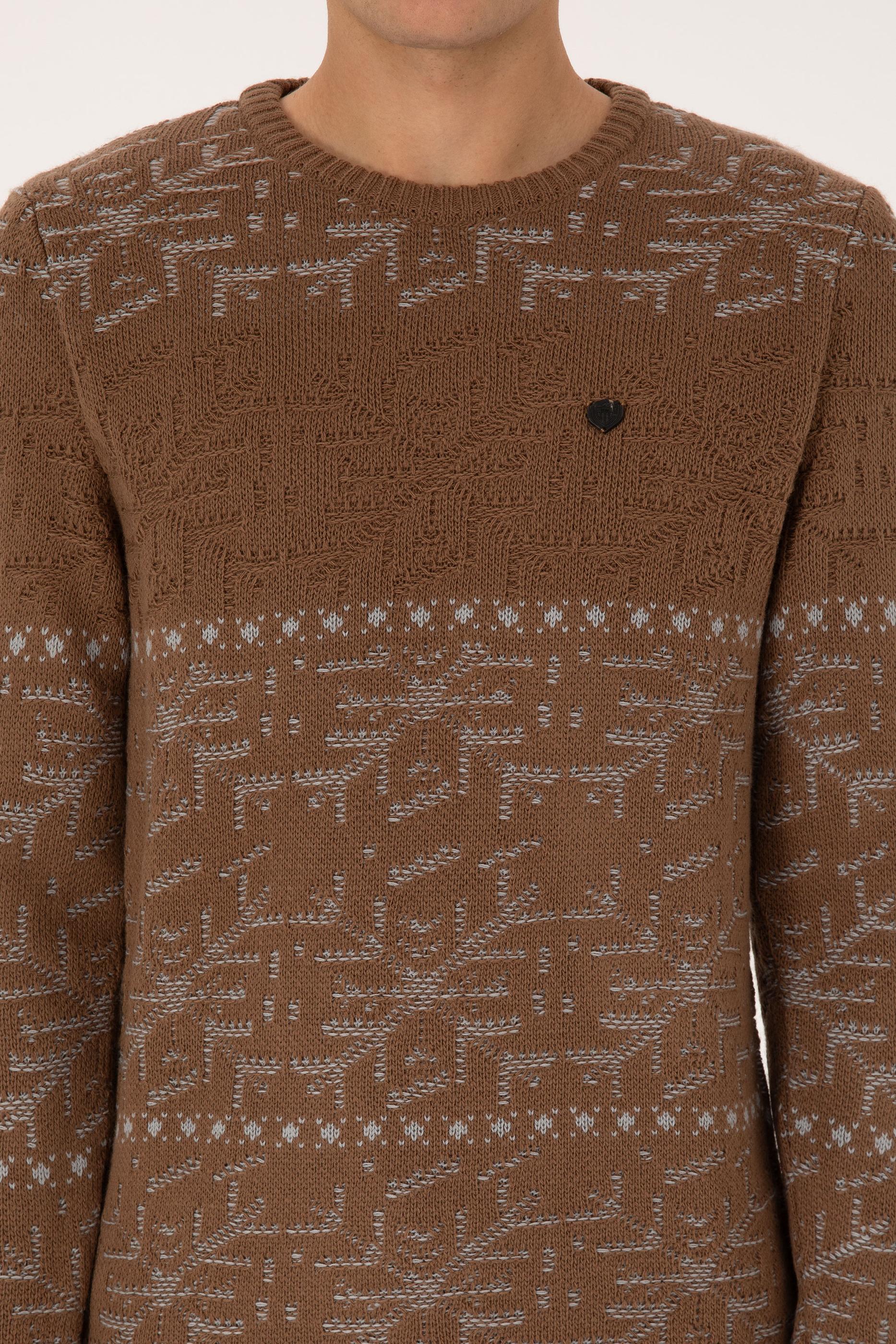 Erkek Comfort Fit Bisiklet Yaka Kahverengi Kazak