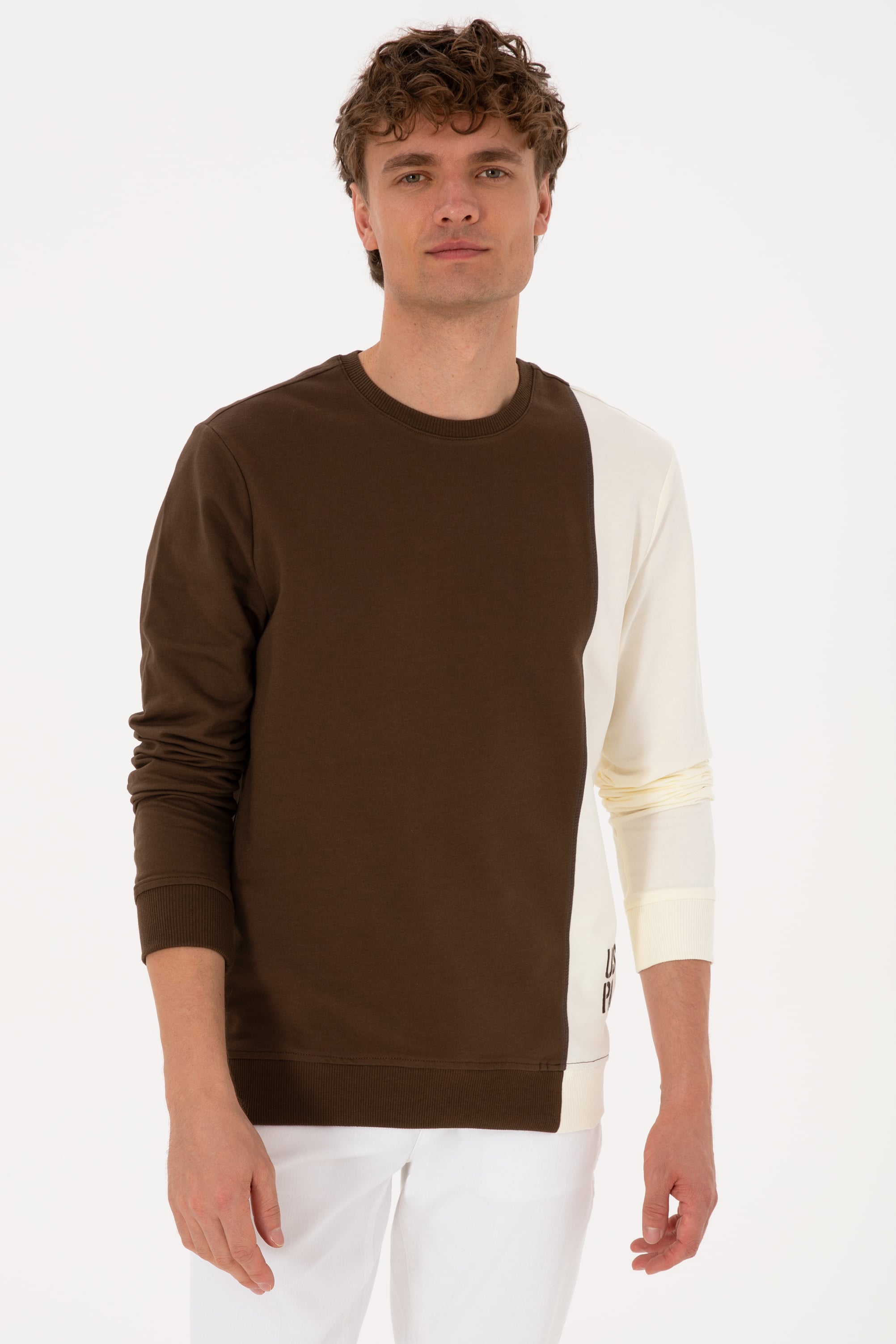 - Erkek Regular Fit Bisiklet Yaka Kahverengi İnce Sweatshirt
