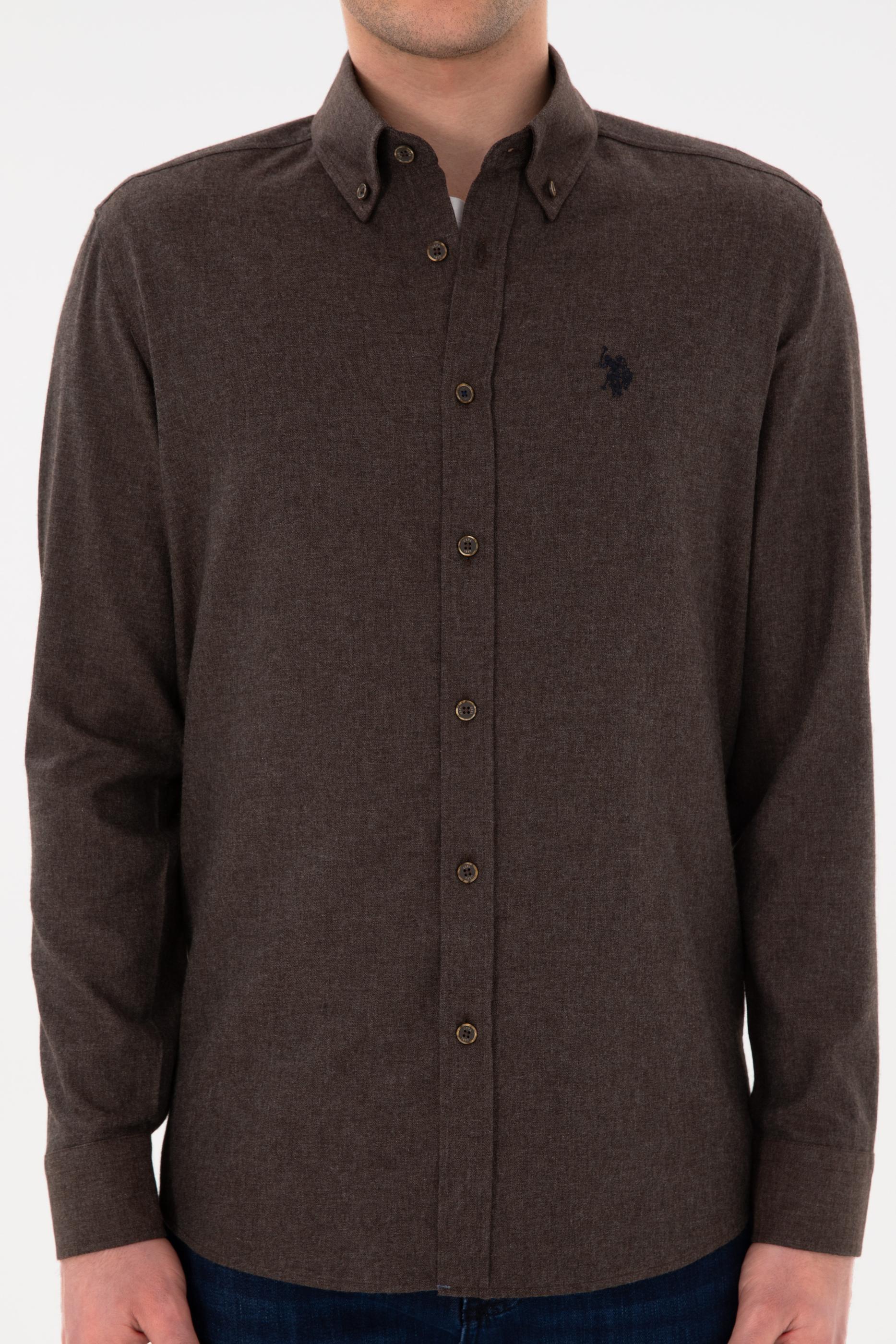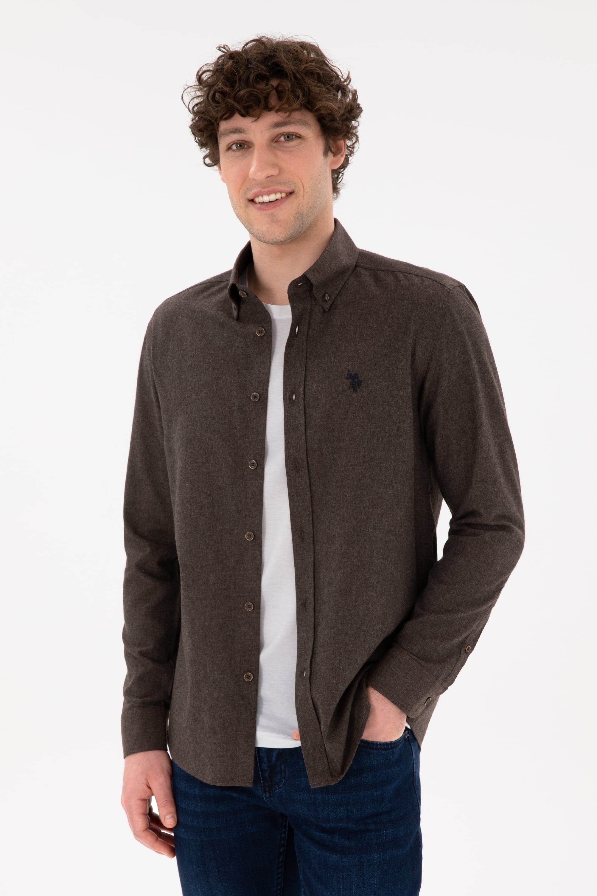 - Erkek Kahverengi Uzun Kollu Basic Gömlek