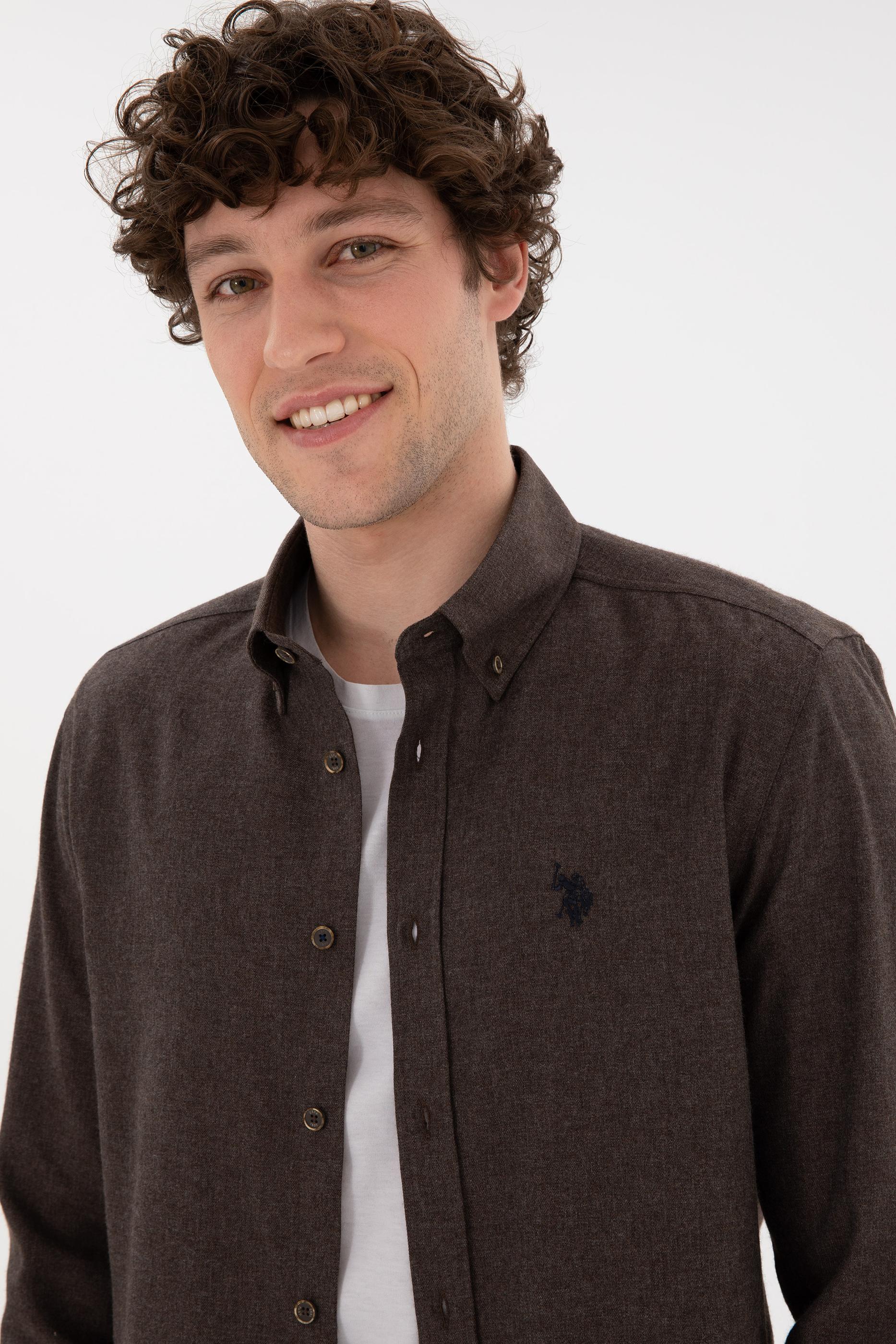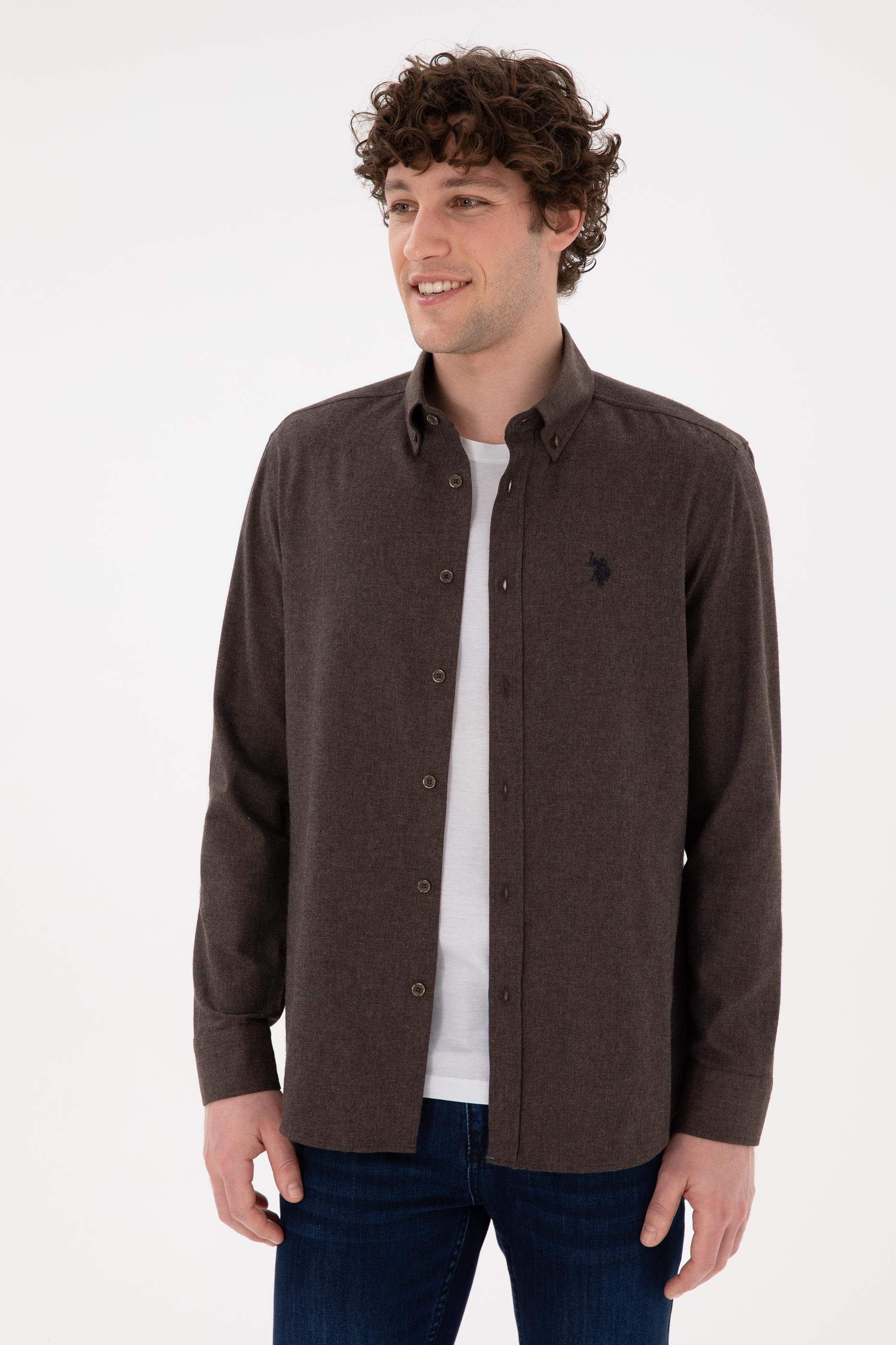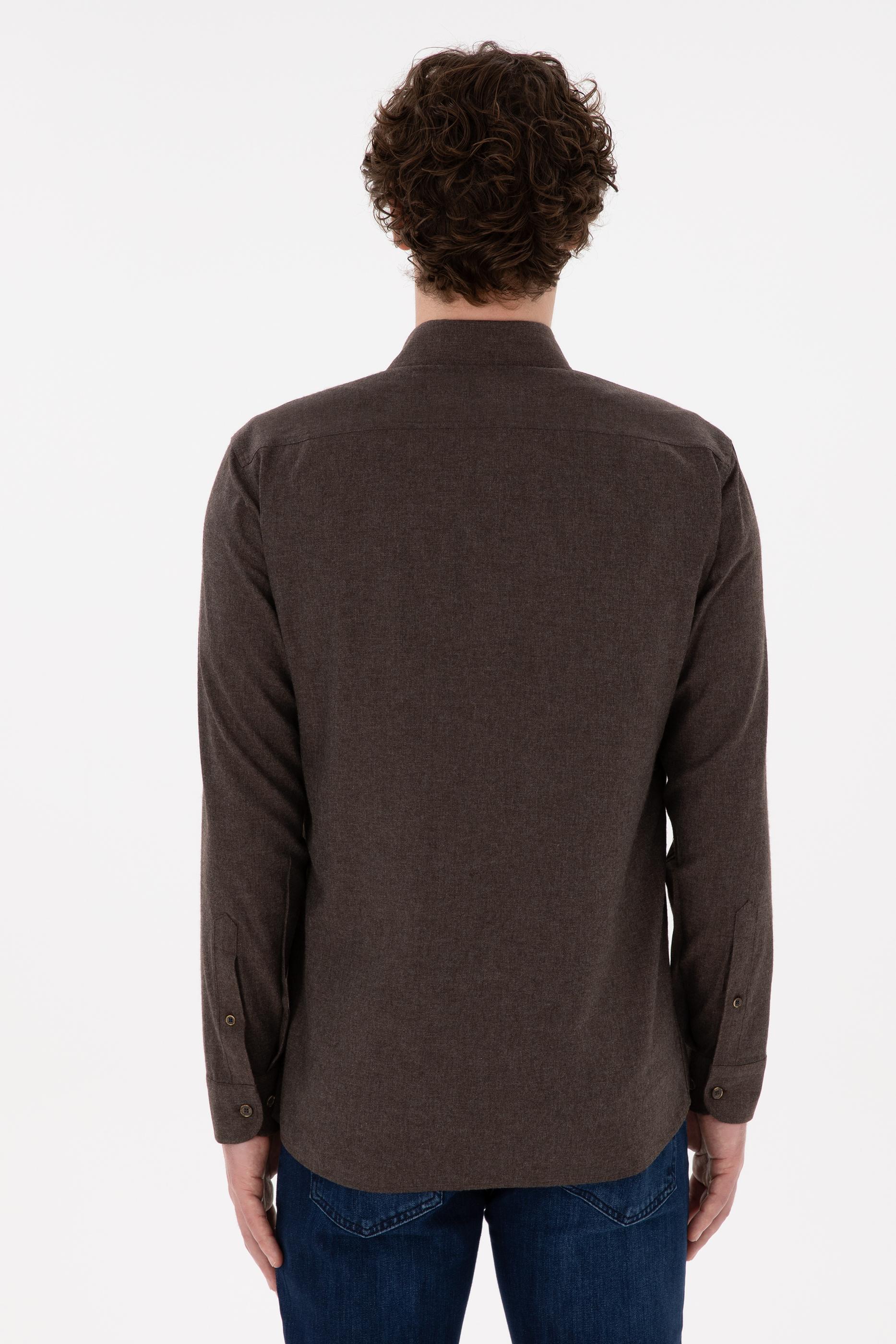 Erkek Kahverengi Uzun Kollu Basic Gömlek