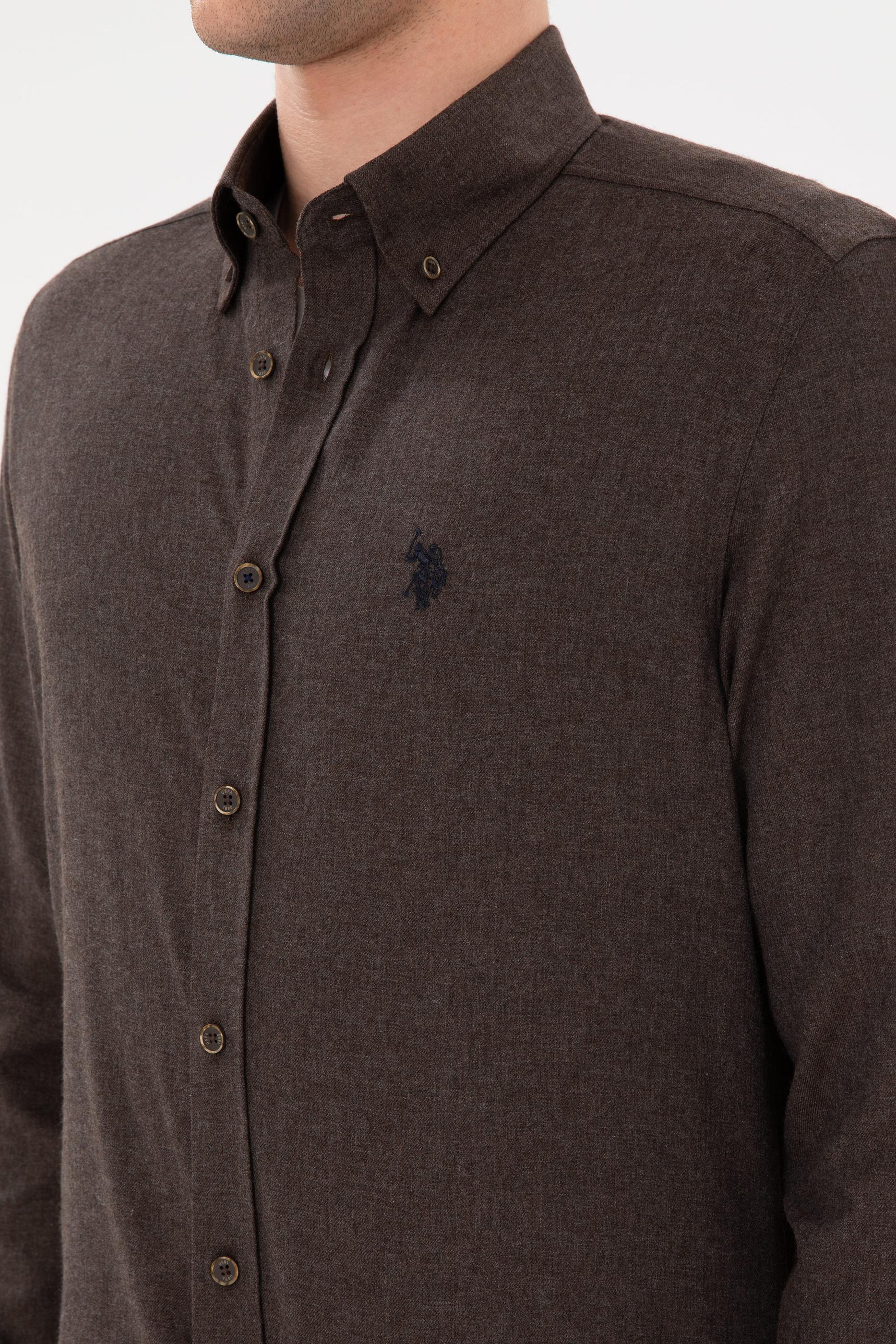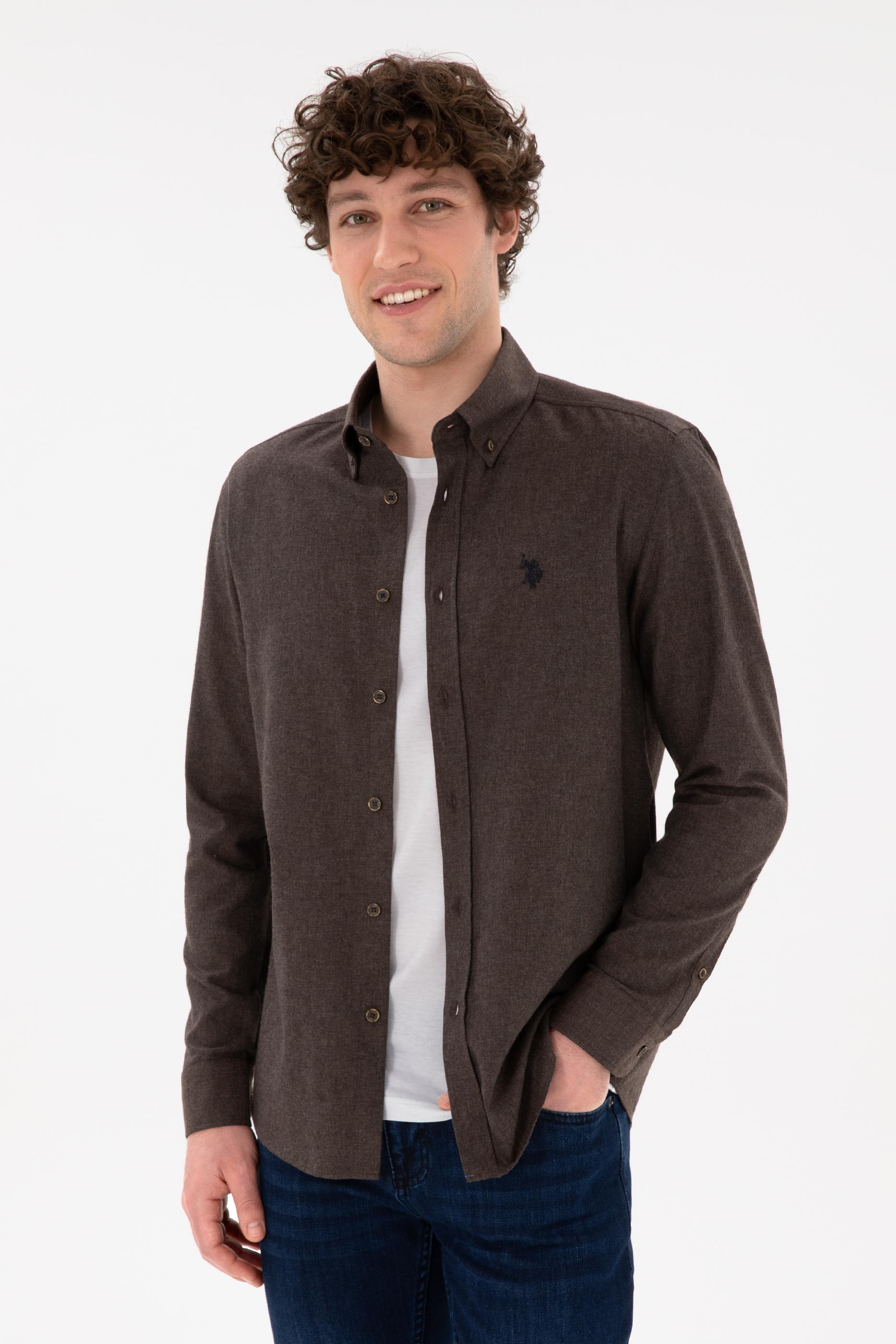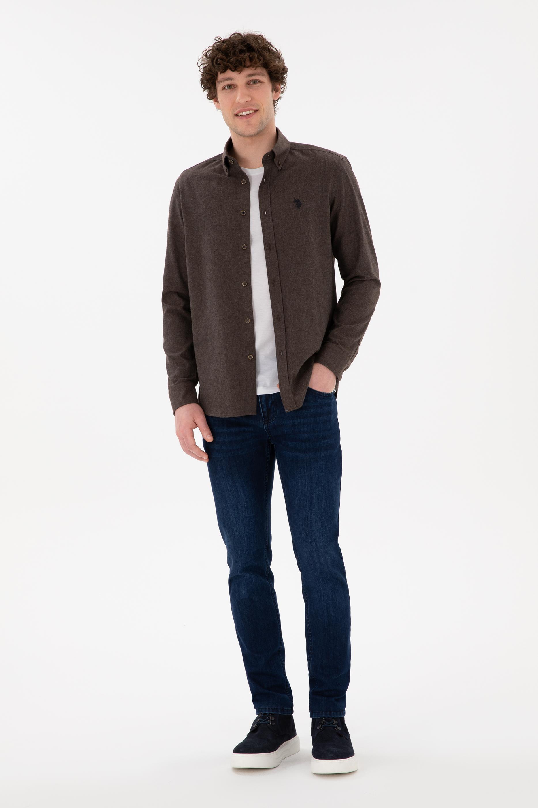 Erkek Kahverengi Uzun Kollu Basic Gömlek