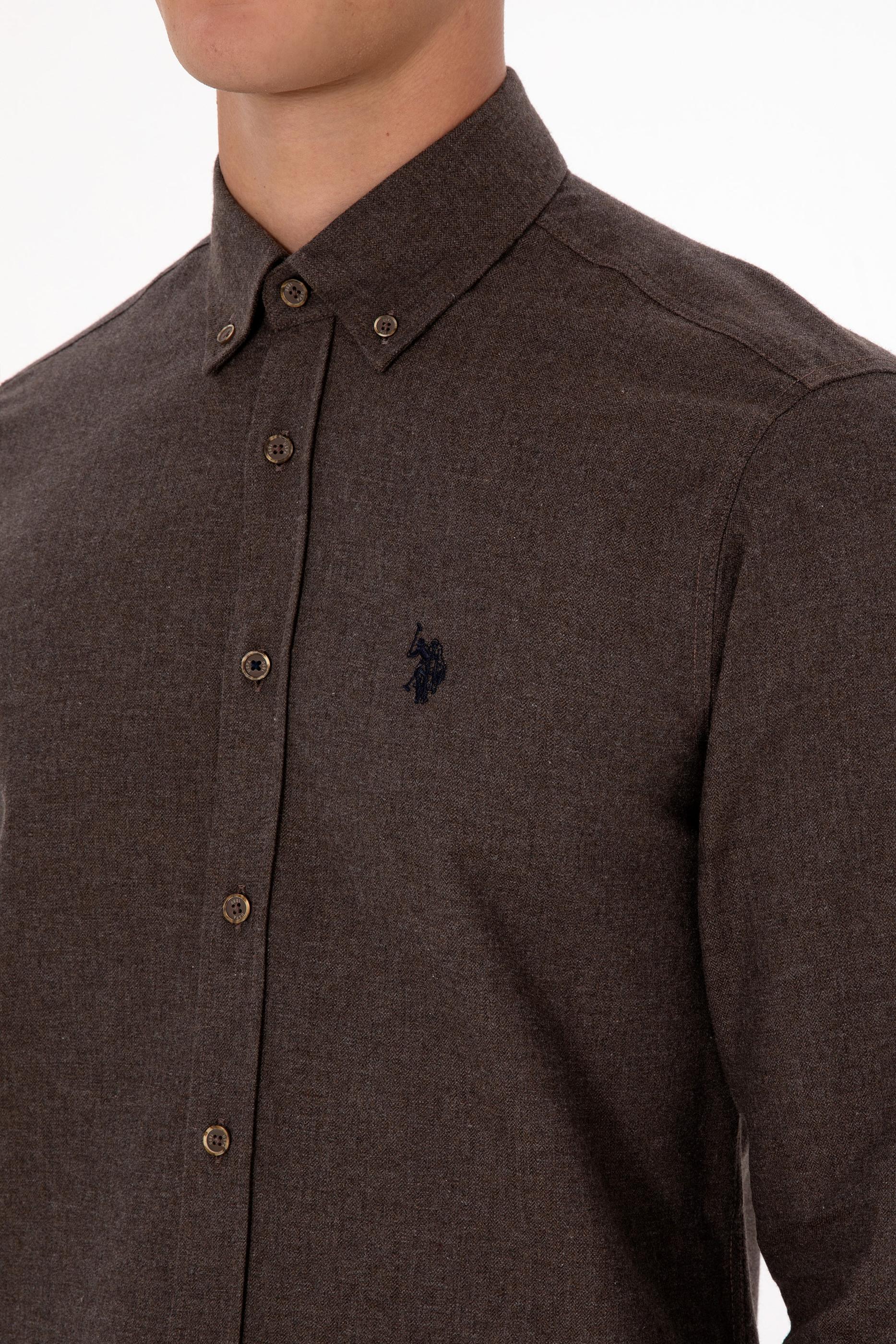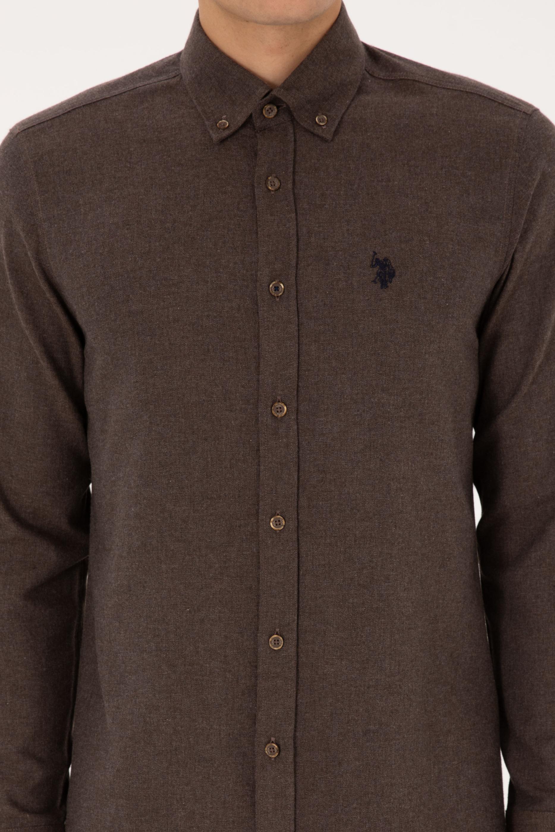 - Erkek Kahverengi Uzun Kollu Basic Gömlek