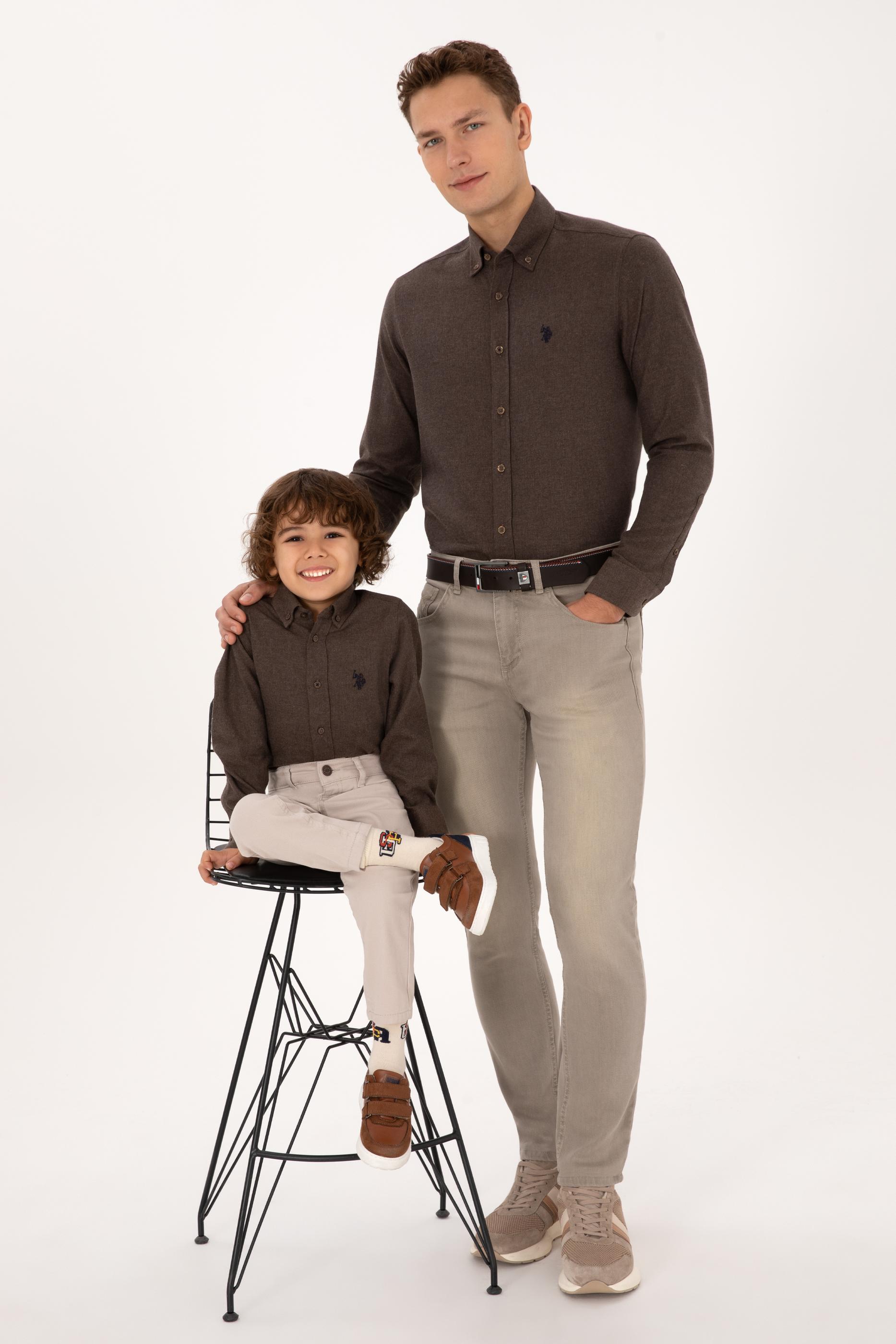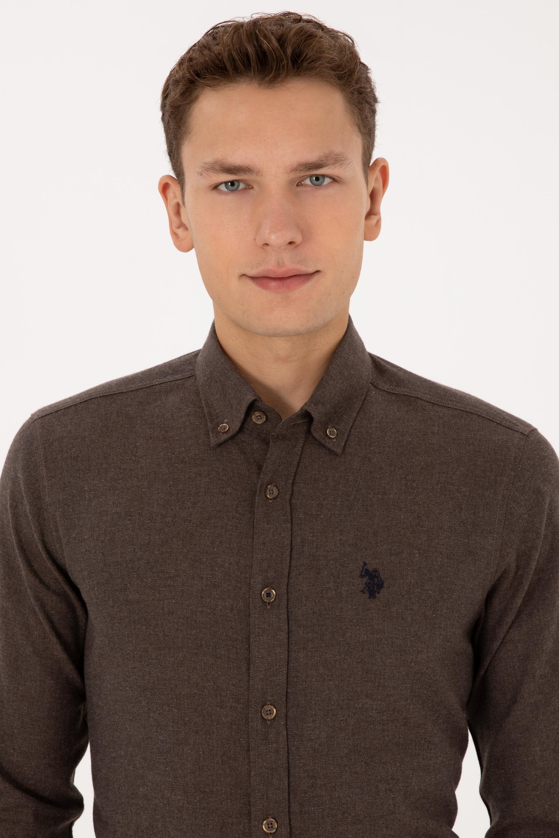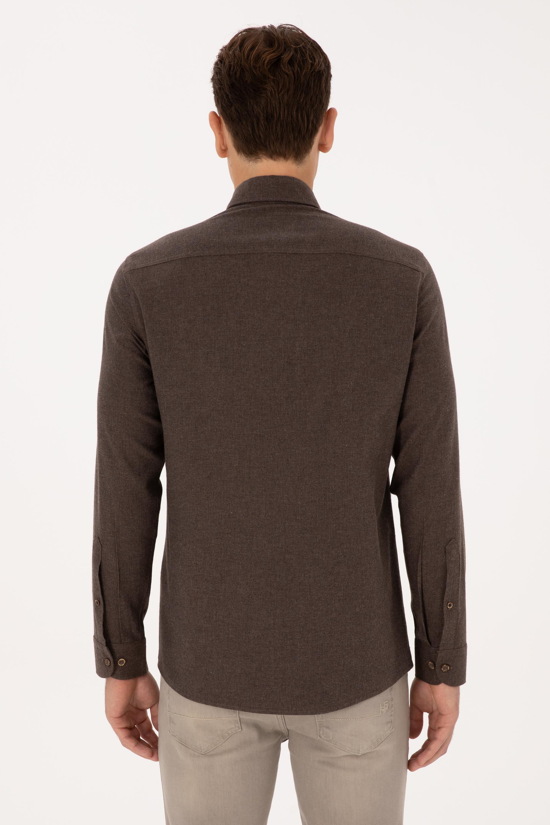 Erkek Kahverengi Uzun Kollu Basic Gömlek