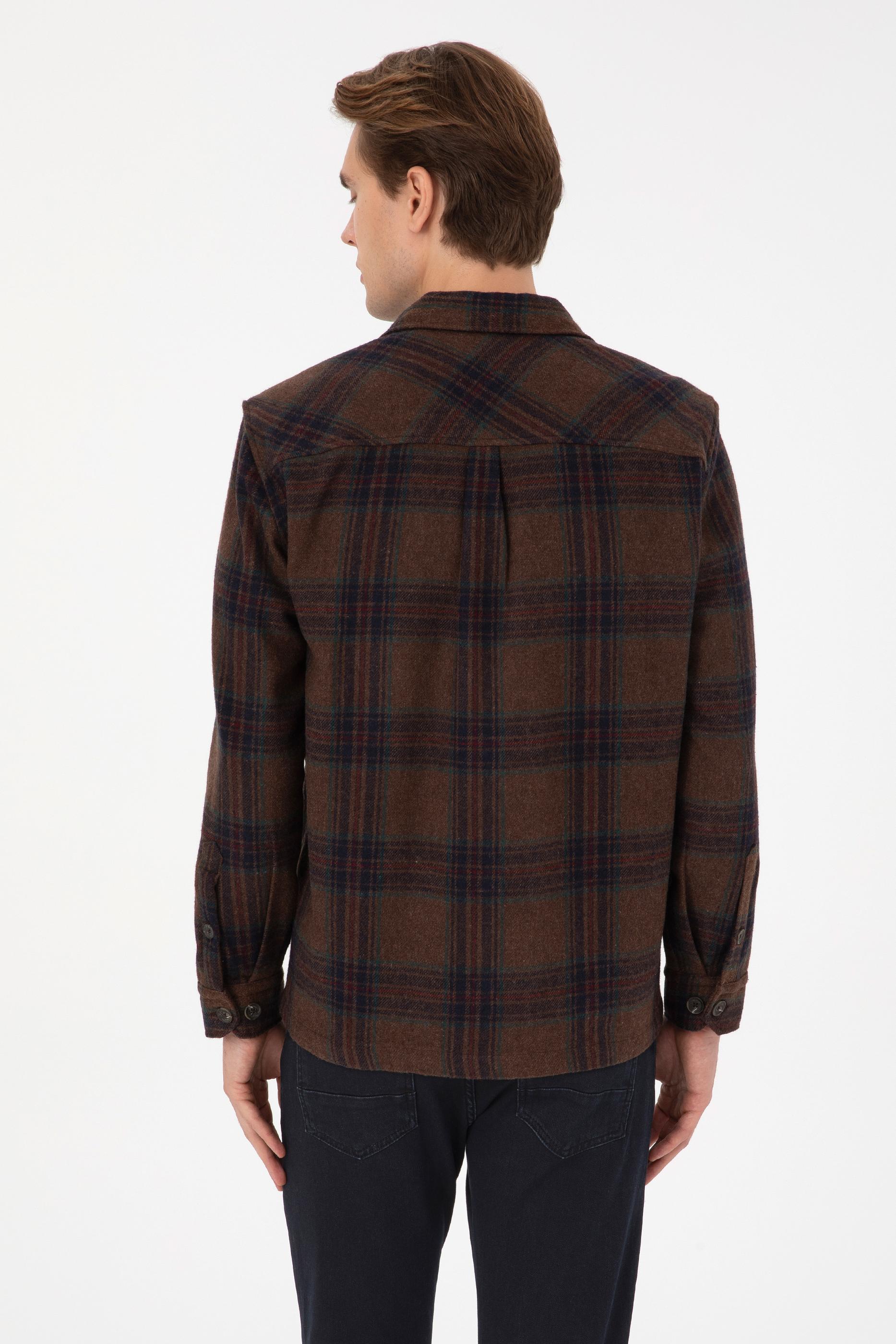 Erkek Kahverengi Uzun Kollu Cepli Ekoseli Gömlek