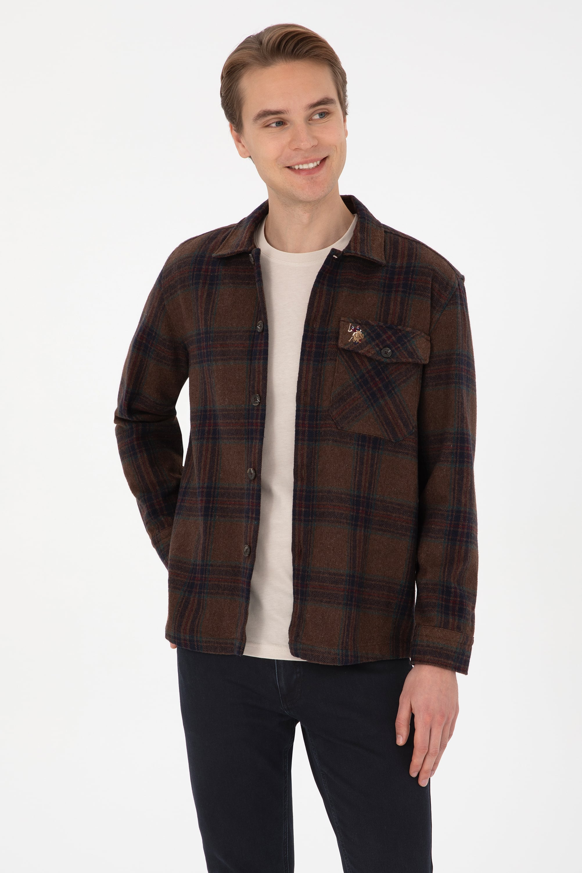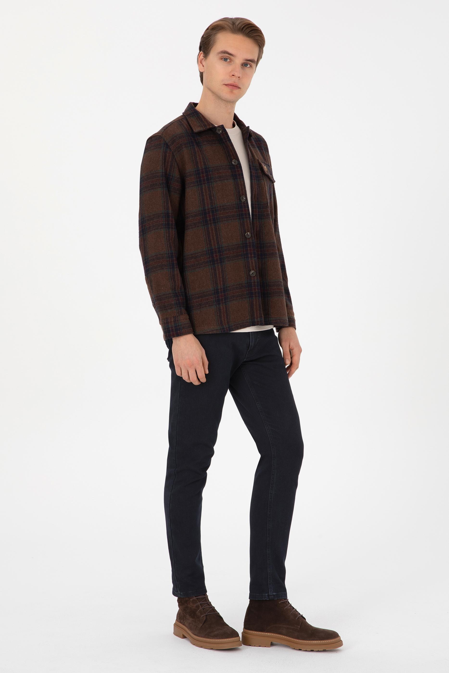 - Erkek Kahverengi Uzun Kollu Cepli Ekoseli Gömlek
