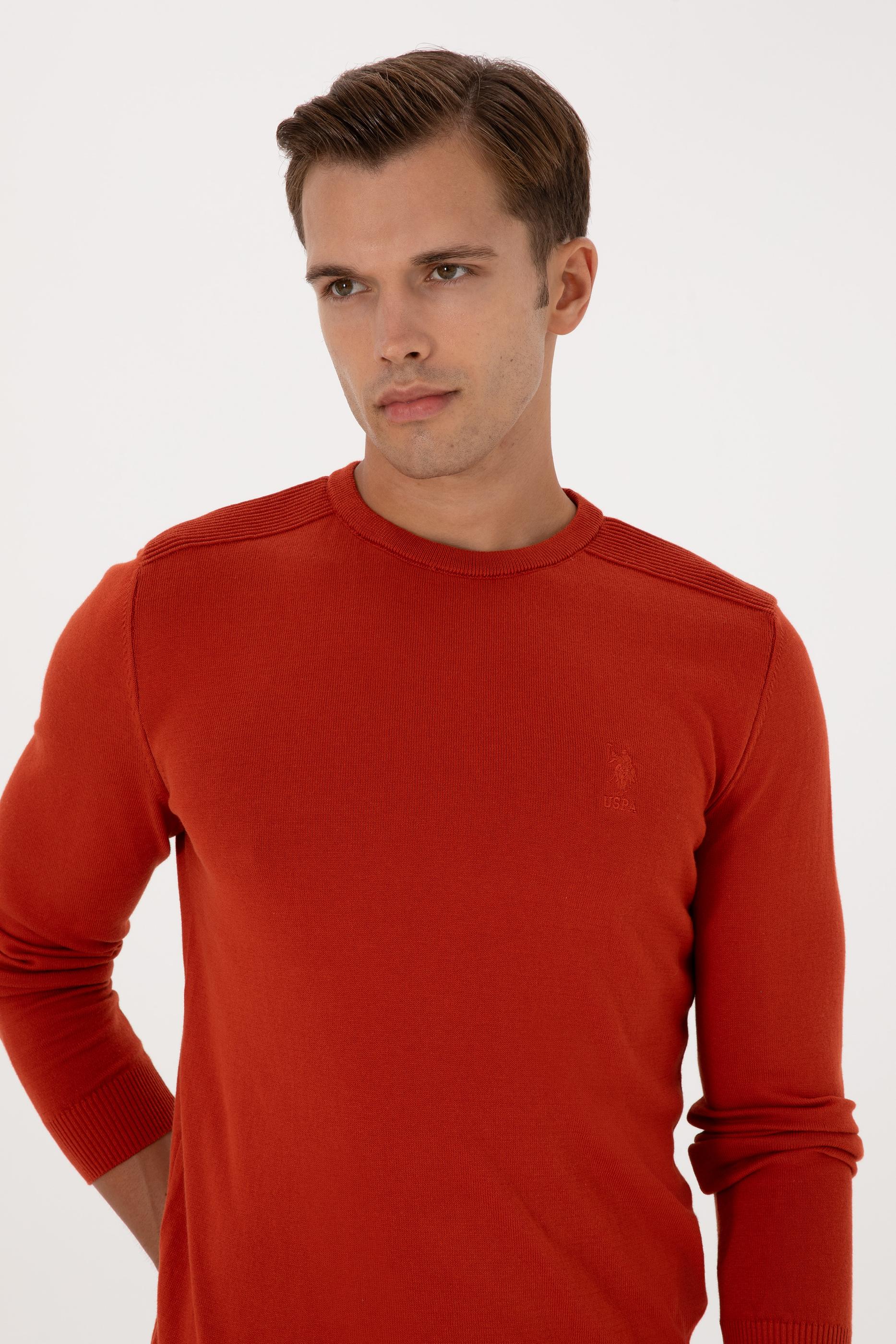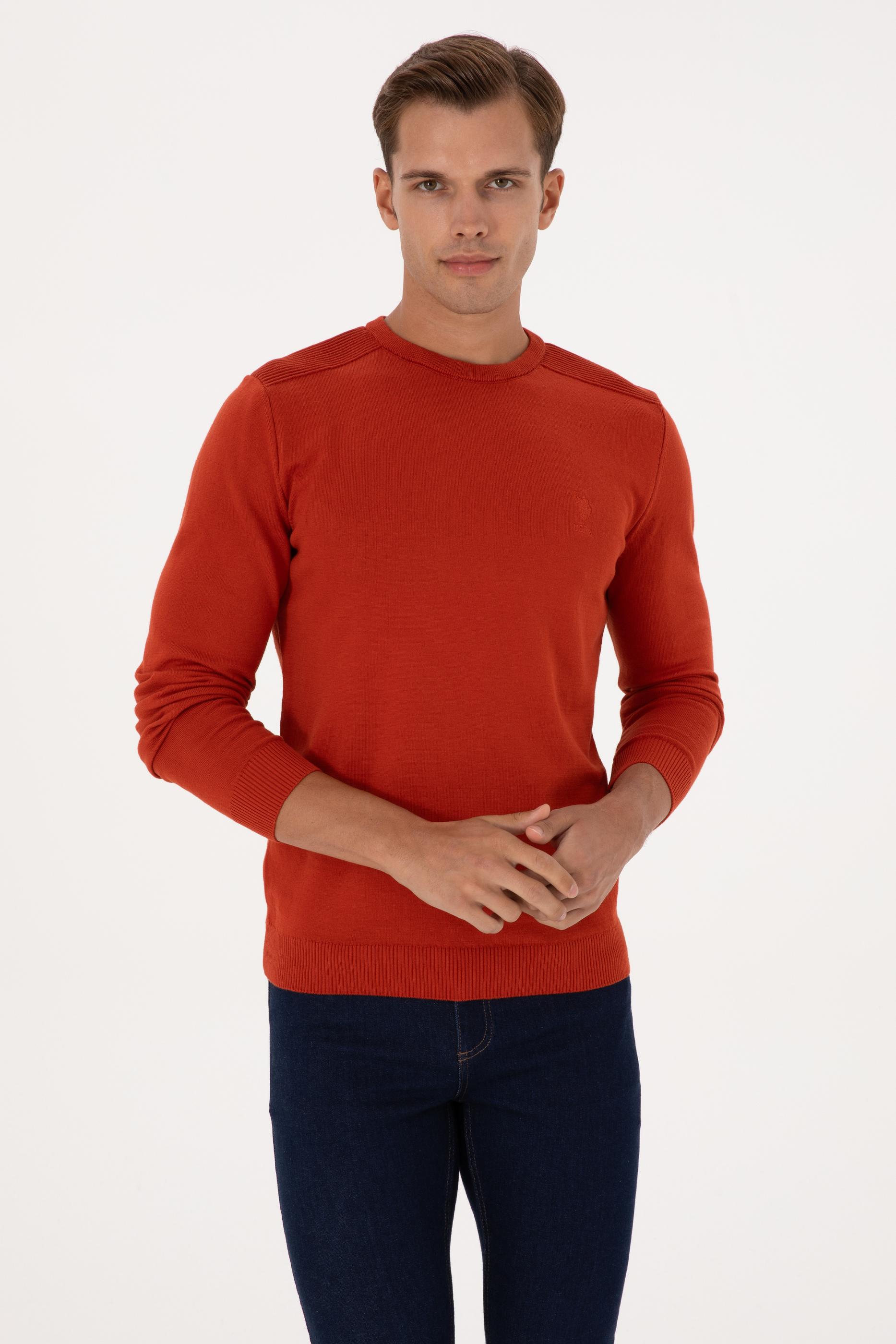 "name": "Erkek Slim Fit Bisiklet Yaka Kiremit Basic Kazak",