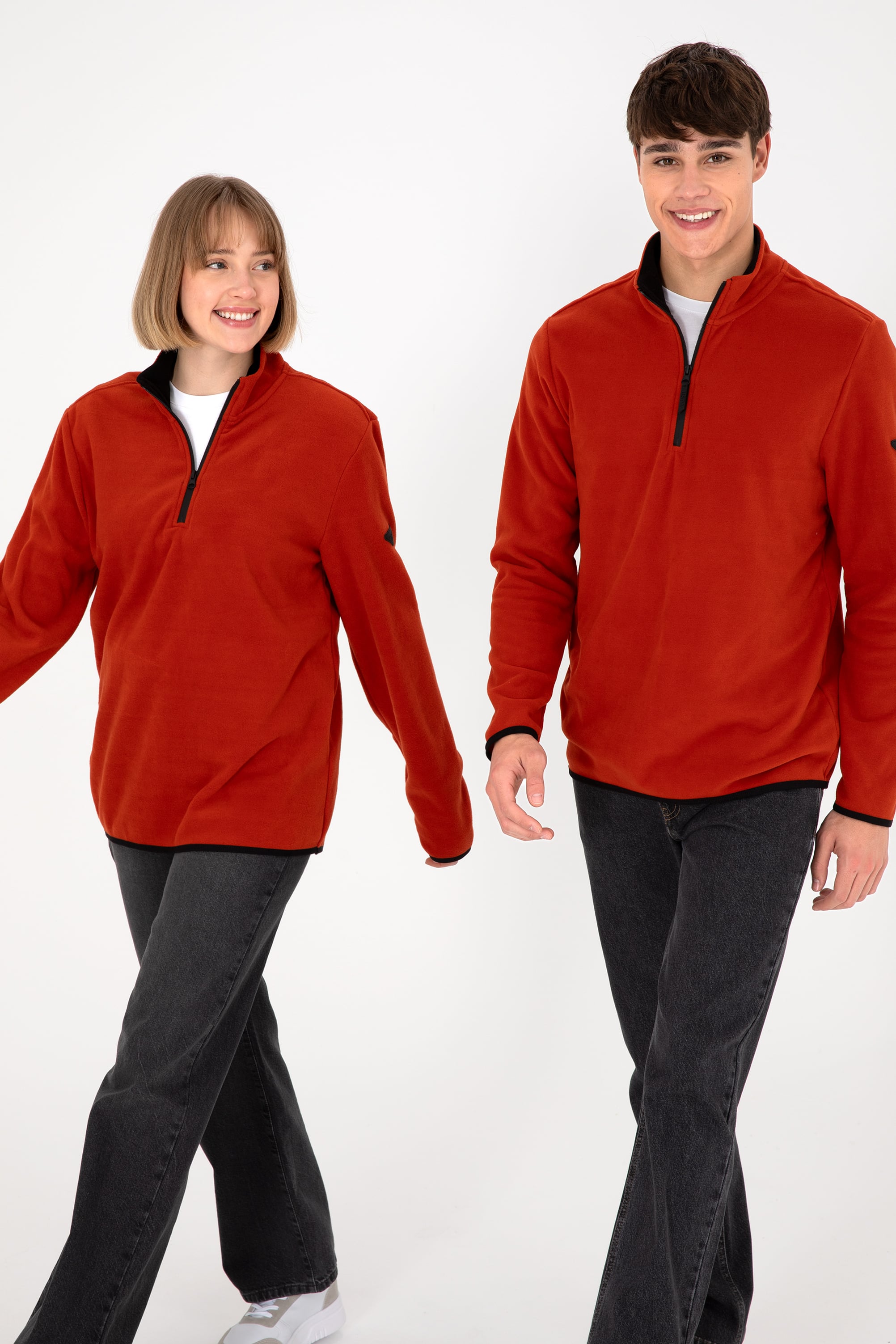 - Erkek Yarım Fermuarlı Kiremit Basic Polar Sweatshirt