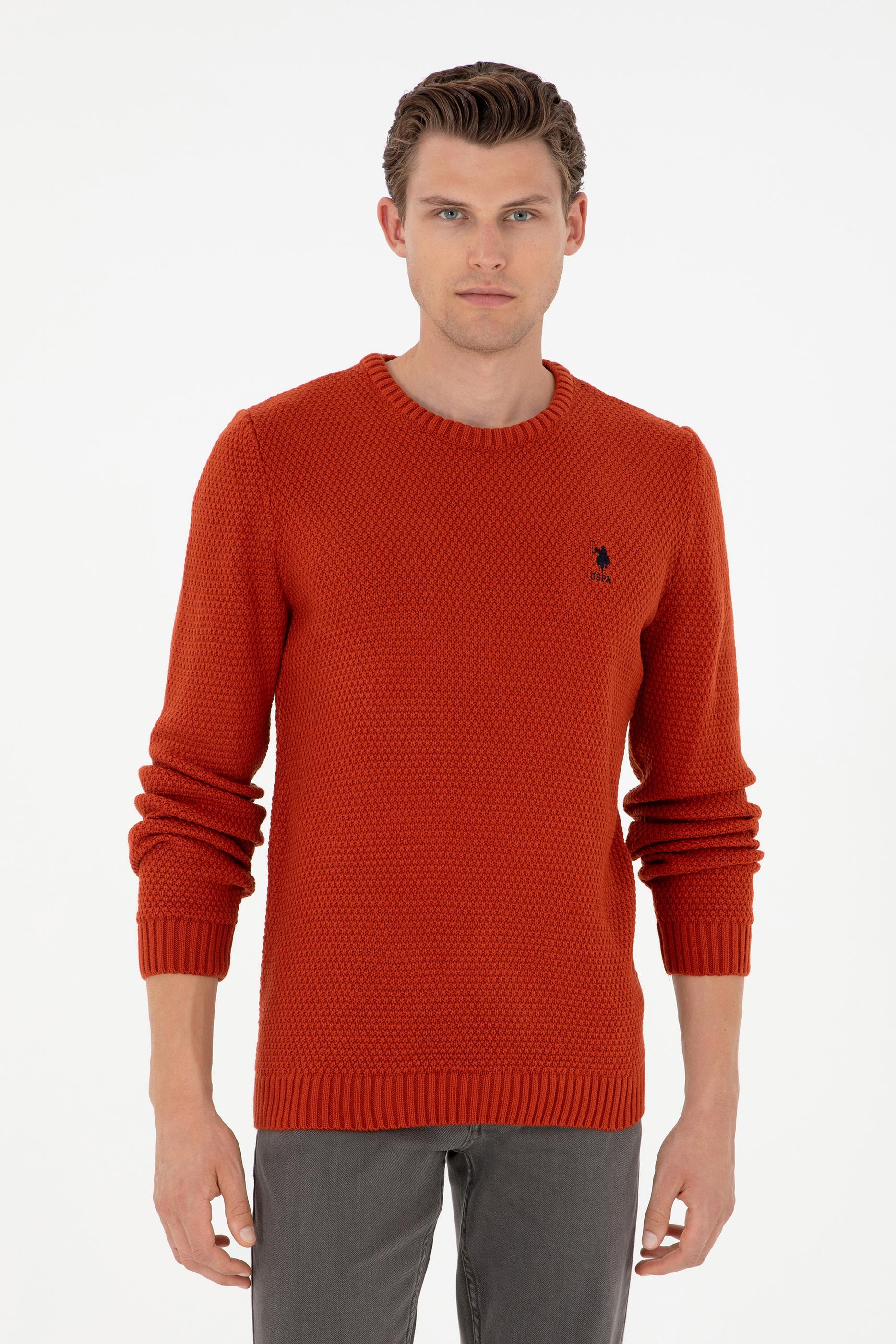 - Erkek Slim Fit Bisiklet Yaka Kiremit Melanj Kazak
