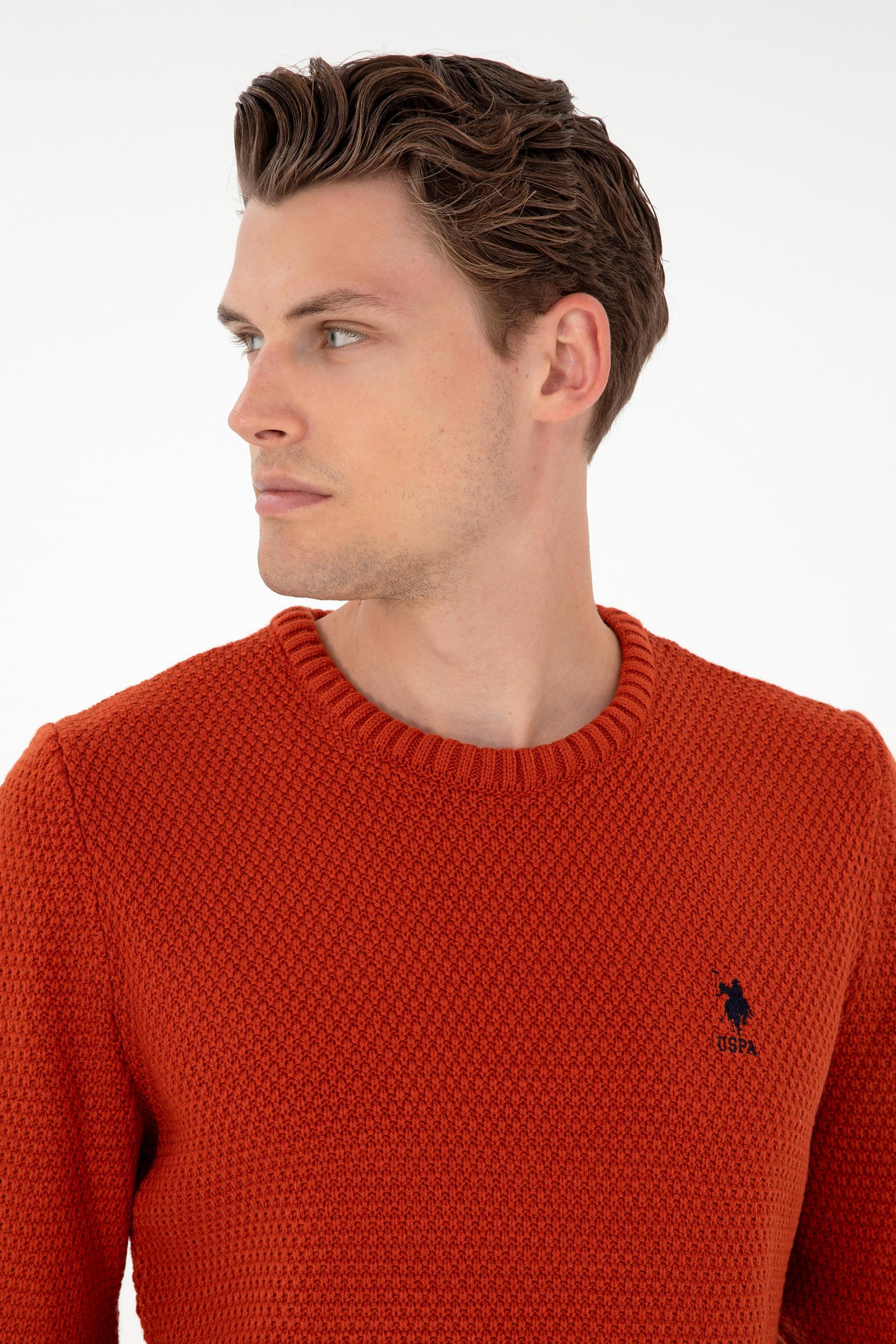 Erkek Slim Fit Bisiklet Yaka Kiremit Melanj Kazak