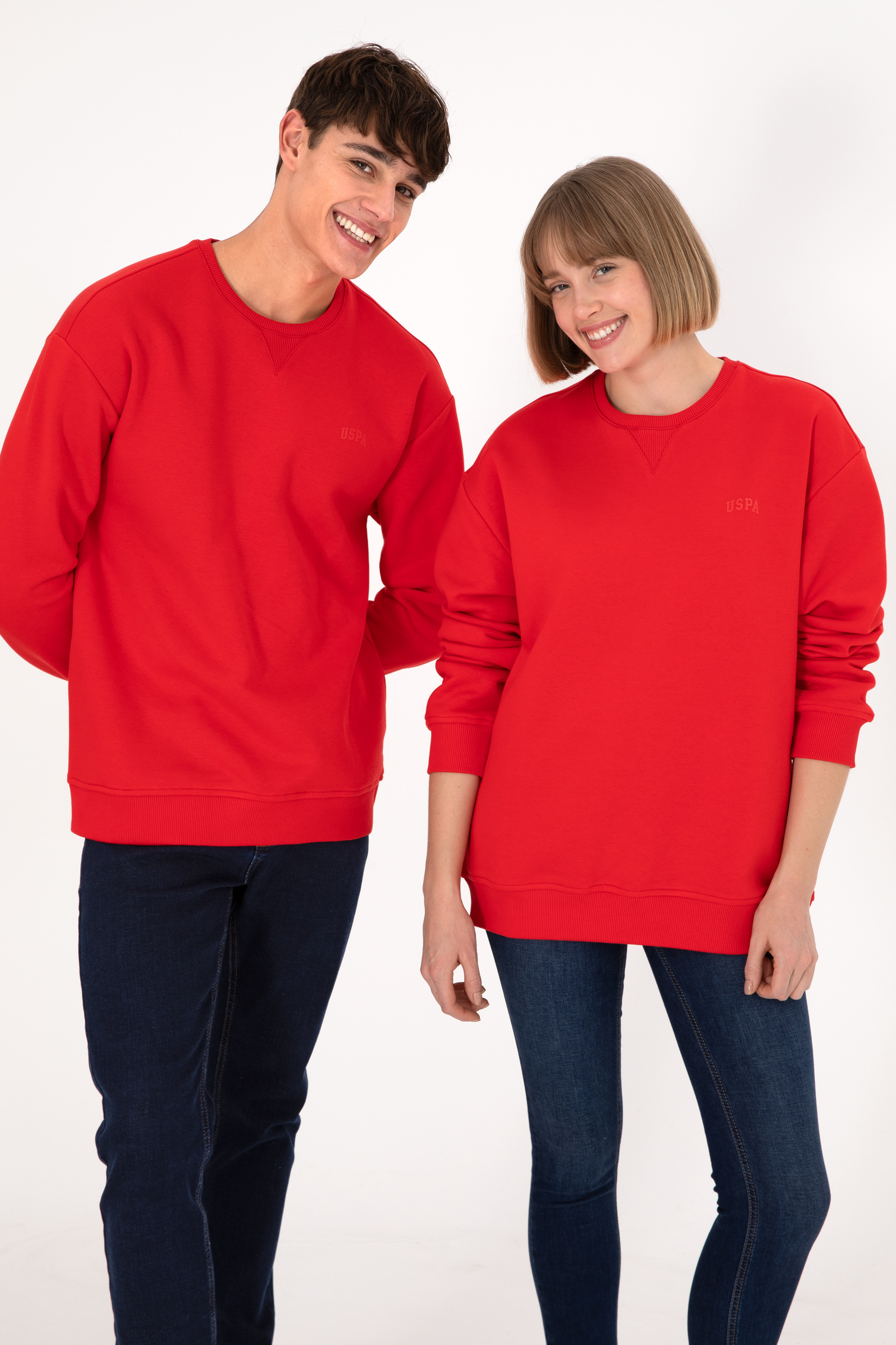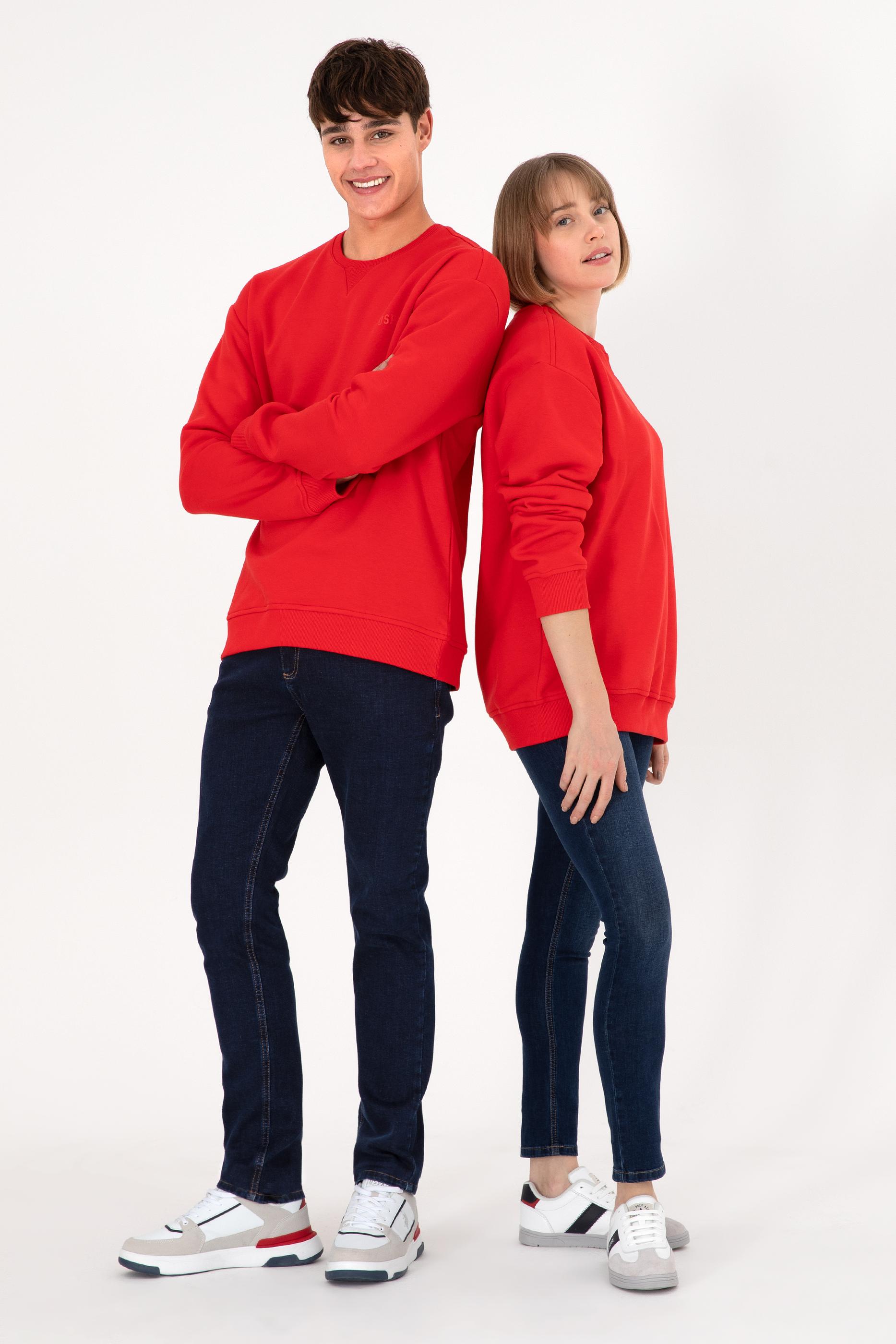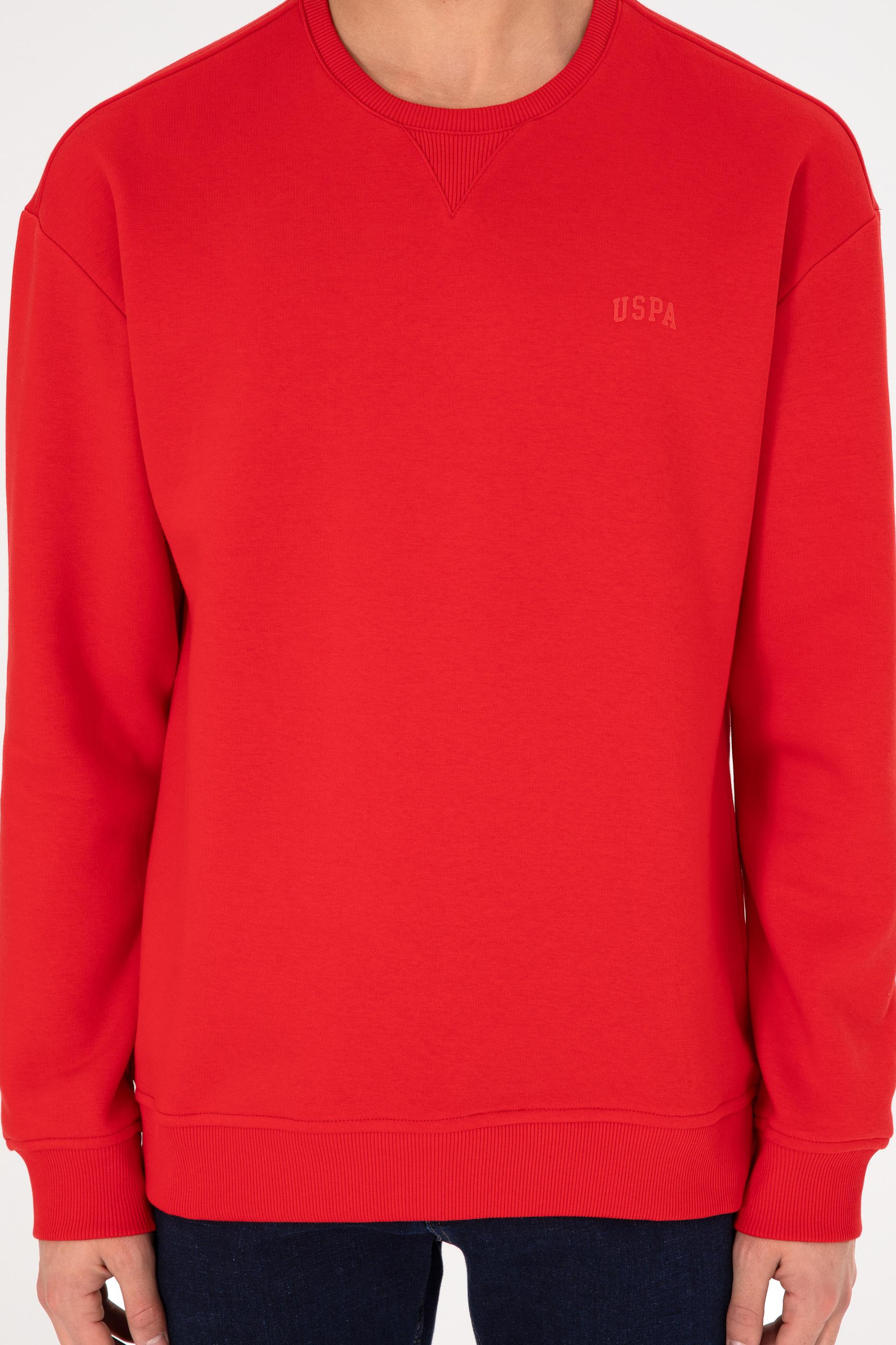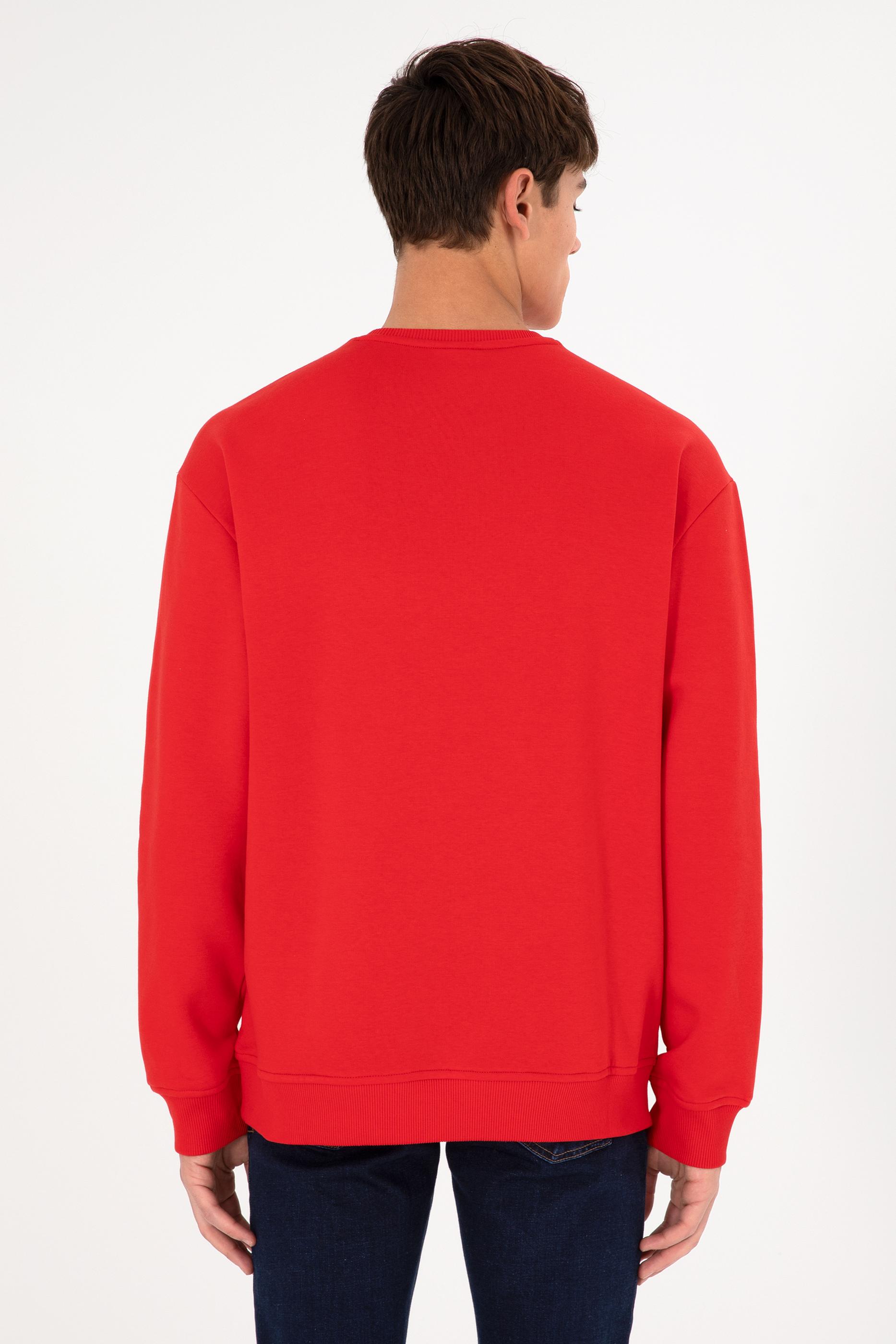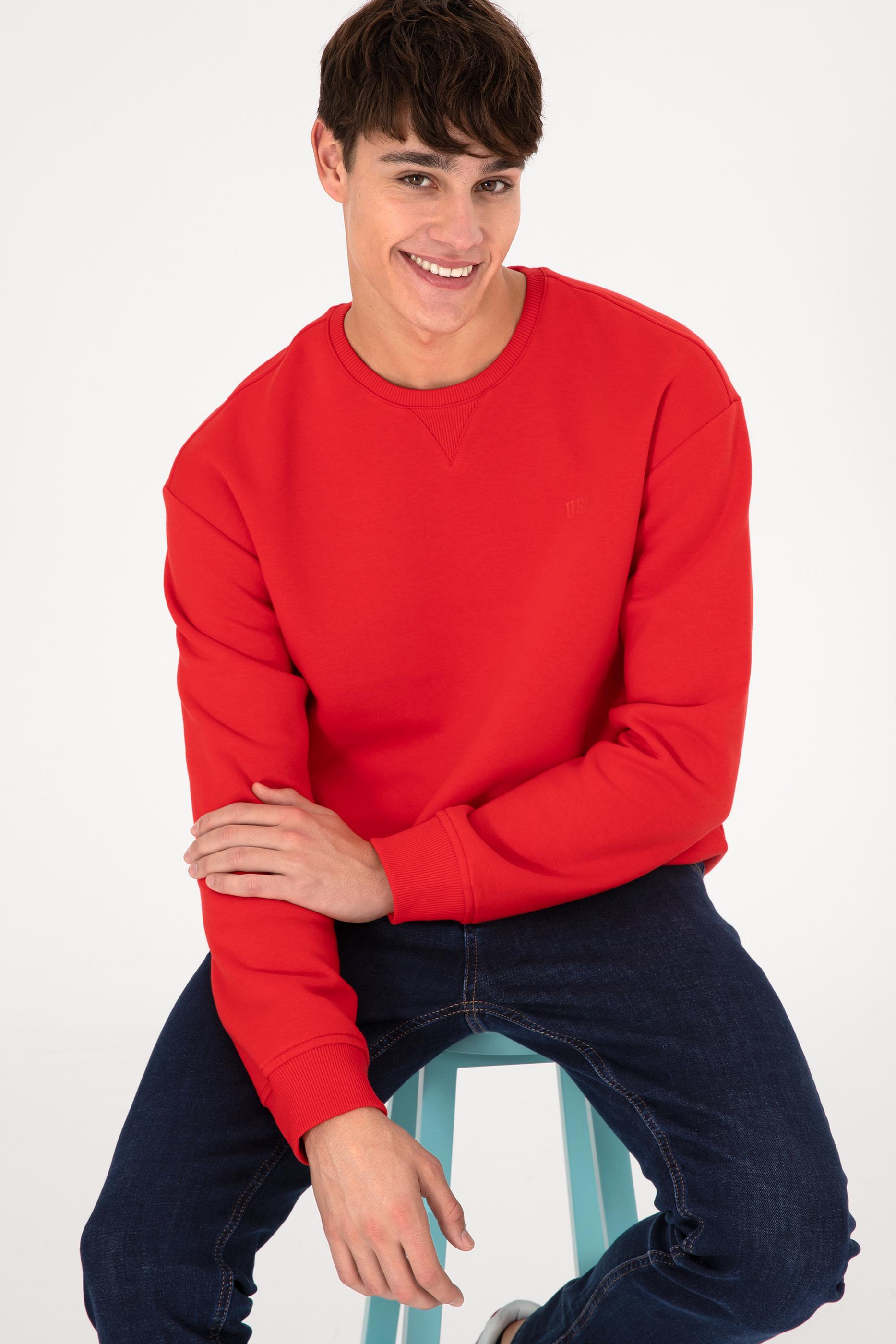 - Erkek Bisiklet Yaka Kırmızı Basic Şardonlu Sweatshirt