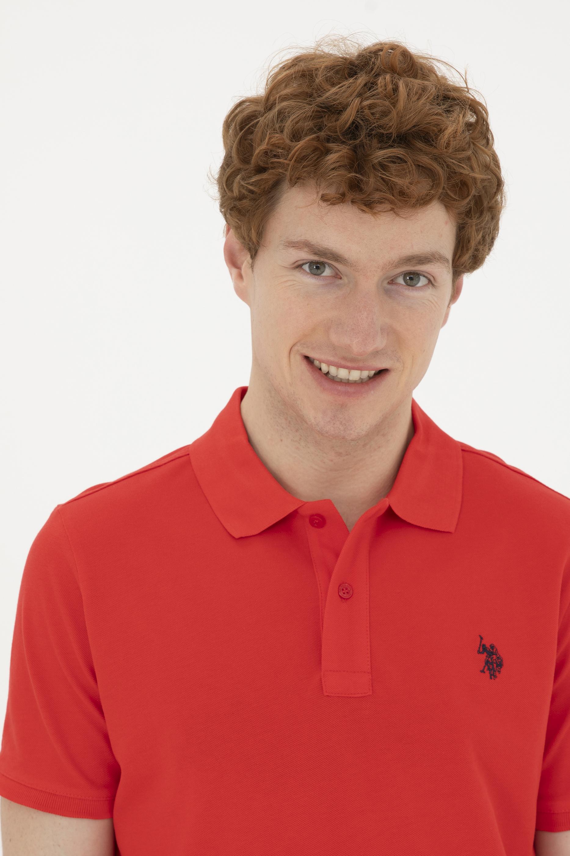 - Erkek Slim Fit Polo Yaka Kırmızı Basic Tişört