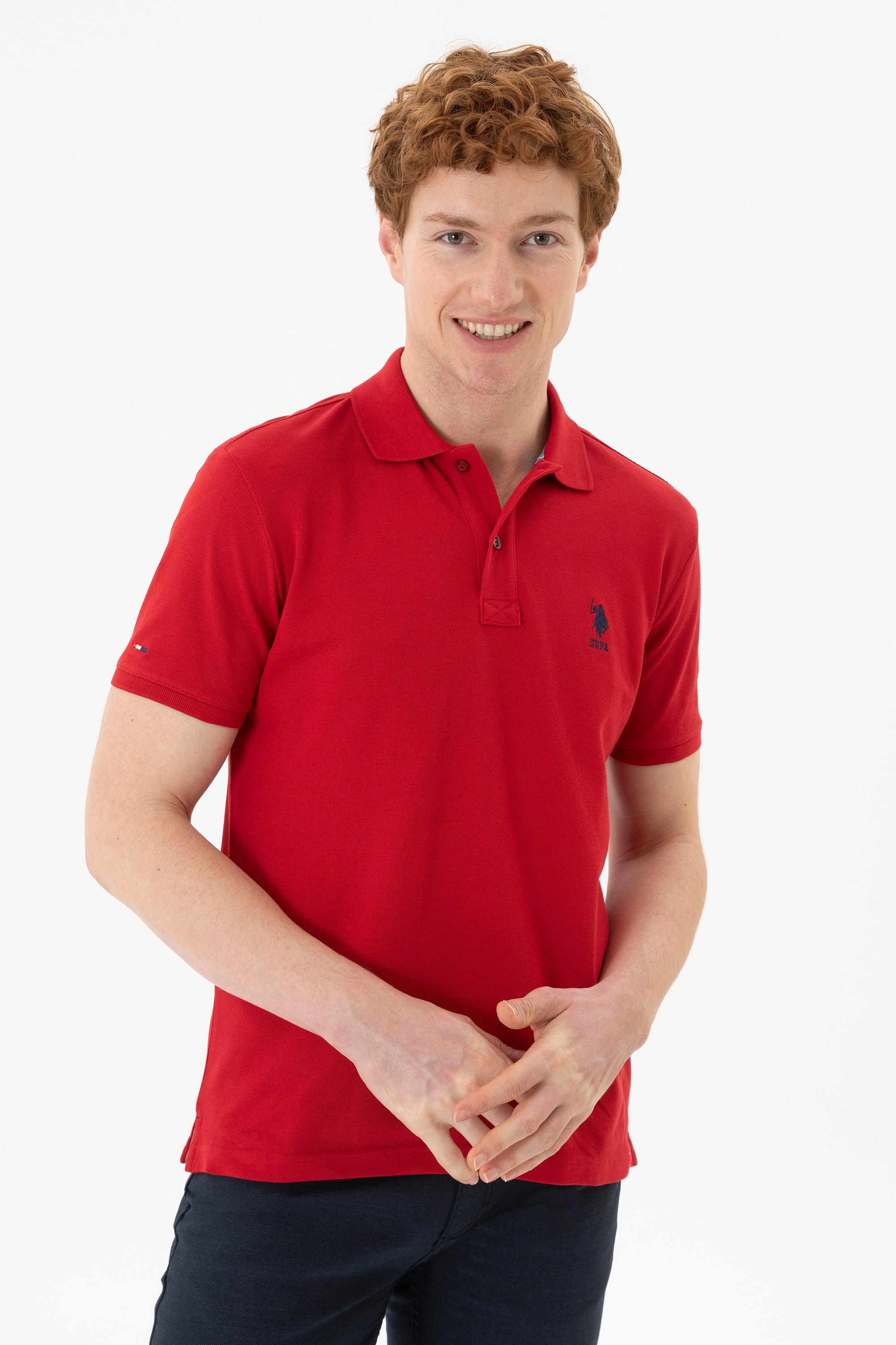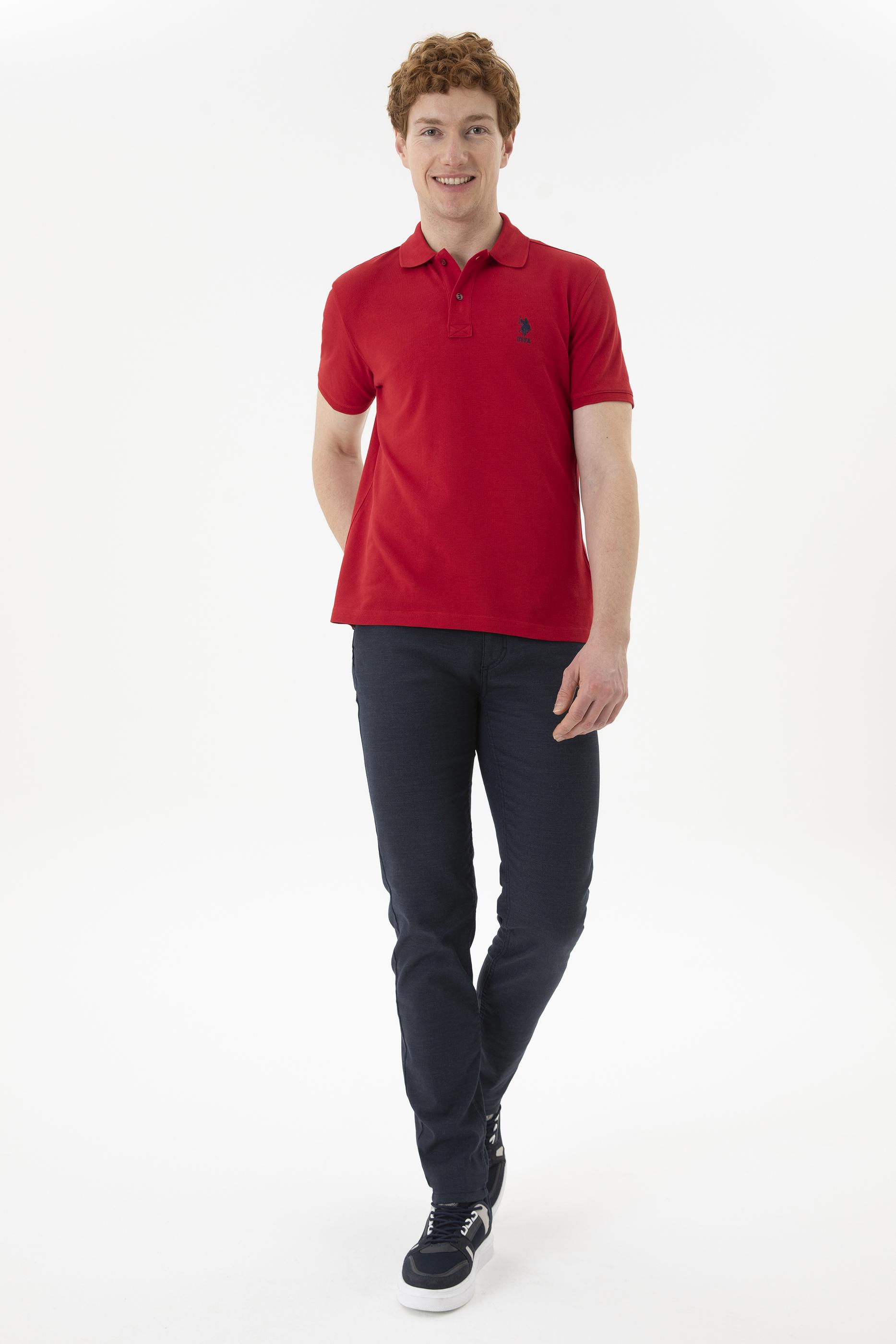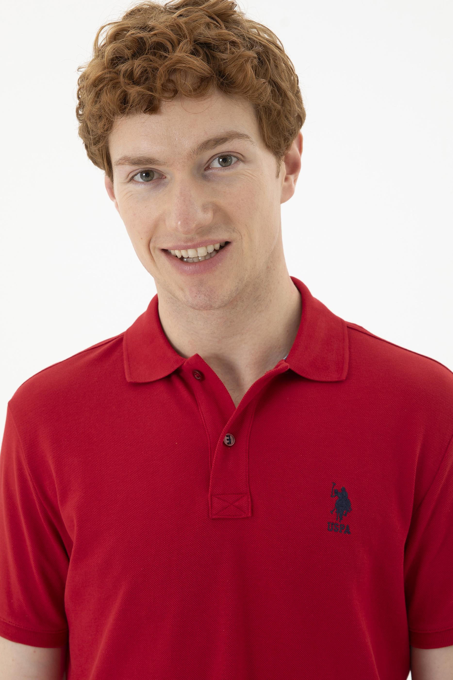 - Erkek Slim Fit Polo Yaka Kırmızı Basic Tişört