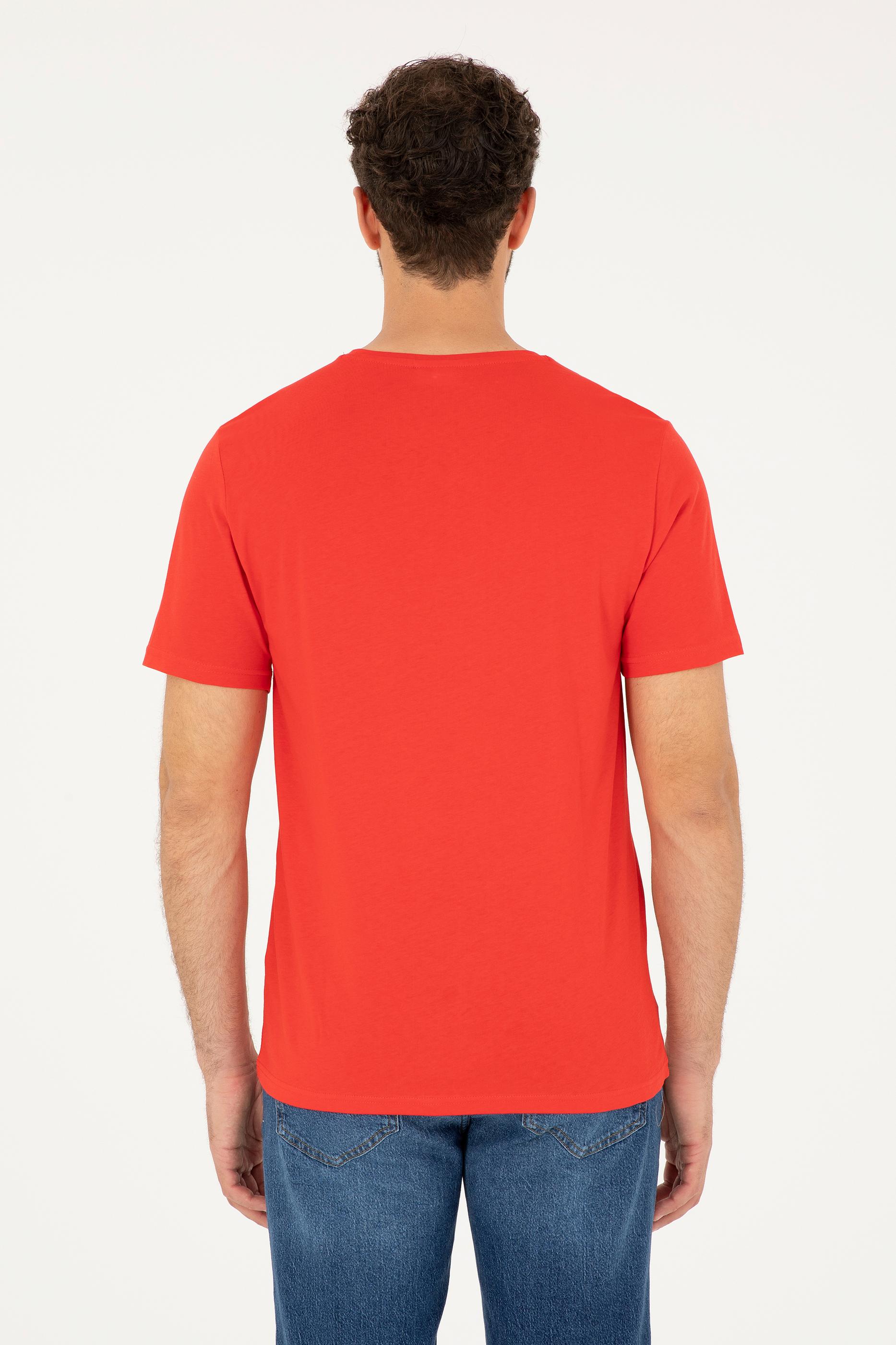 Erkek Regular Fit Bisiklet Yaka Kırmızı Basic Tişört