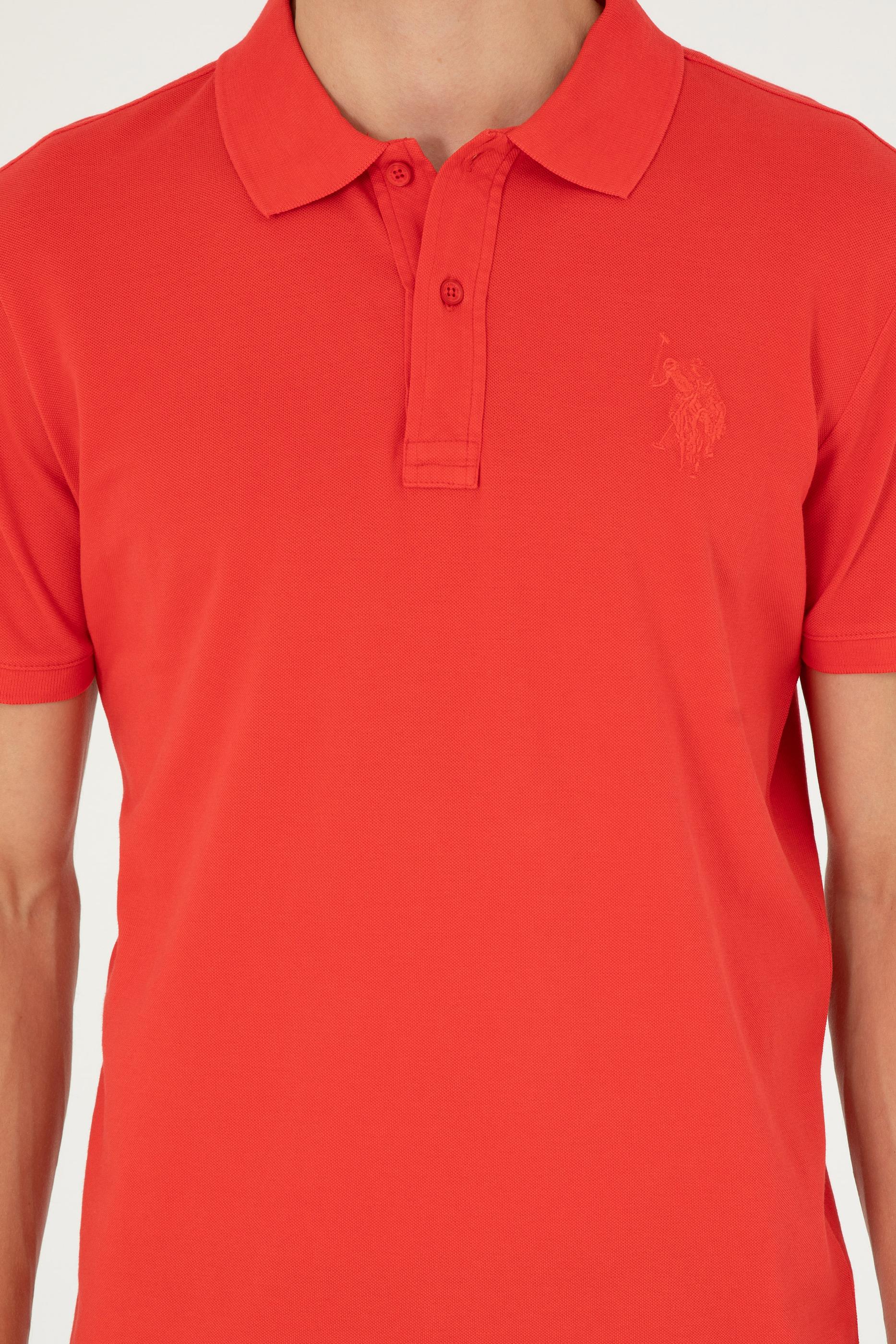 - Erkek Slim Fit Polo Yaka Kırmızı Basic Tişört
