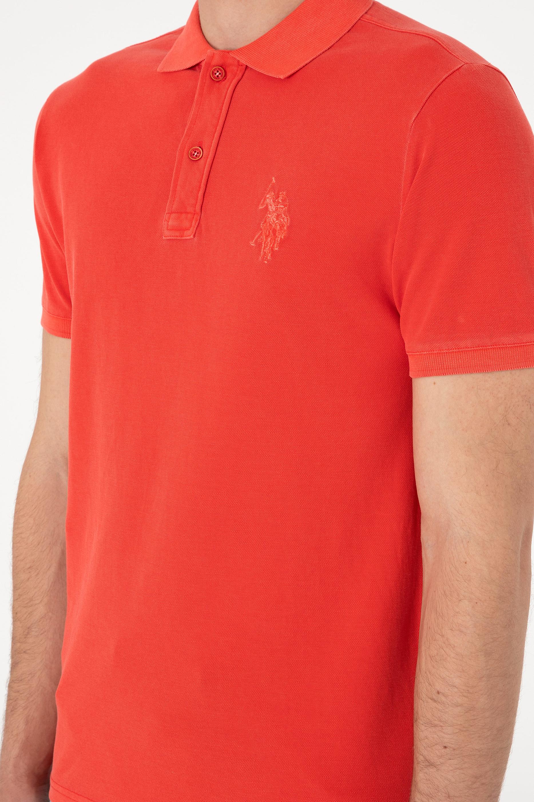 Erkek Slim Fit Polo Yaka Kırmızı Yıkamalı Basic Tişört