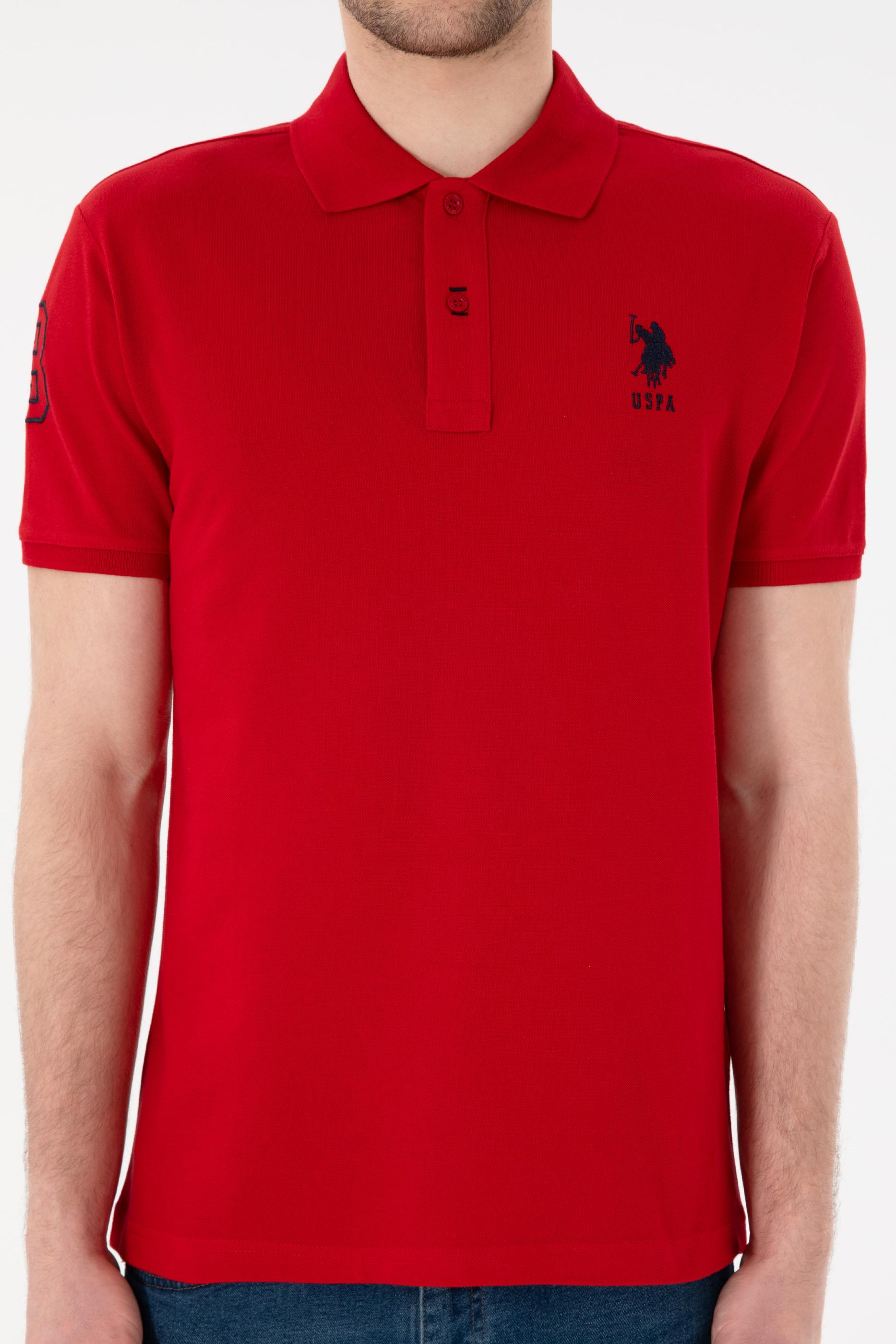 Erkek Slim Fit Polo Yaka Kırmızı Basic Tişört