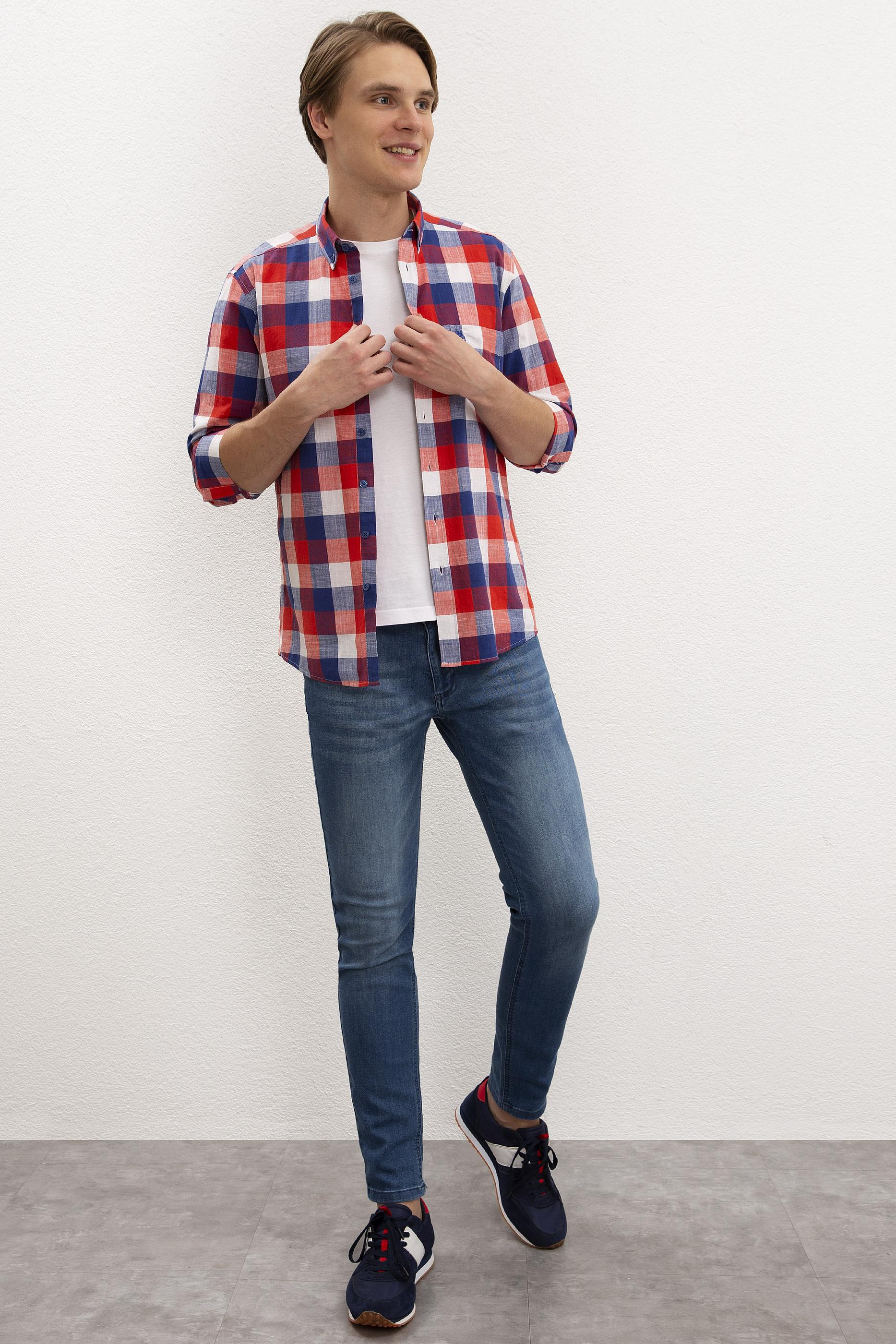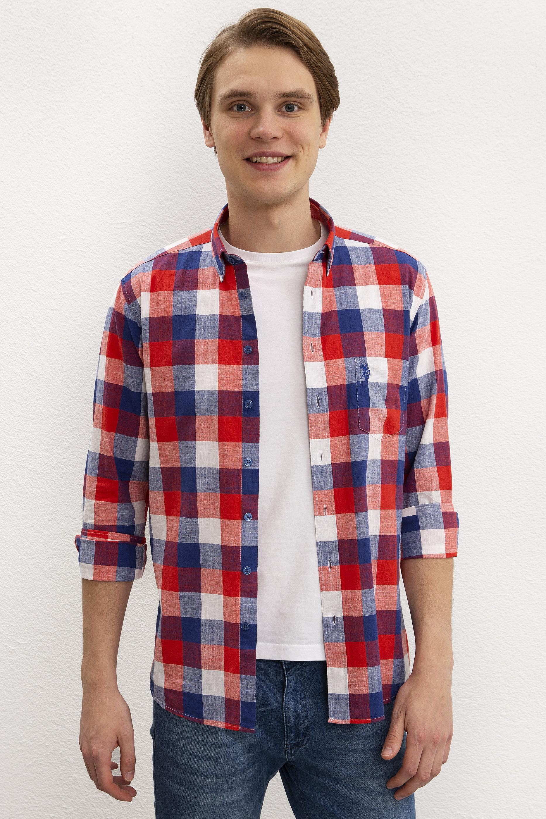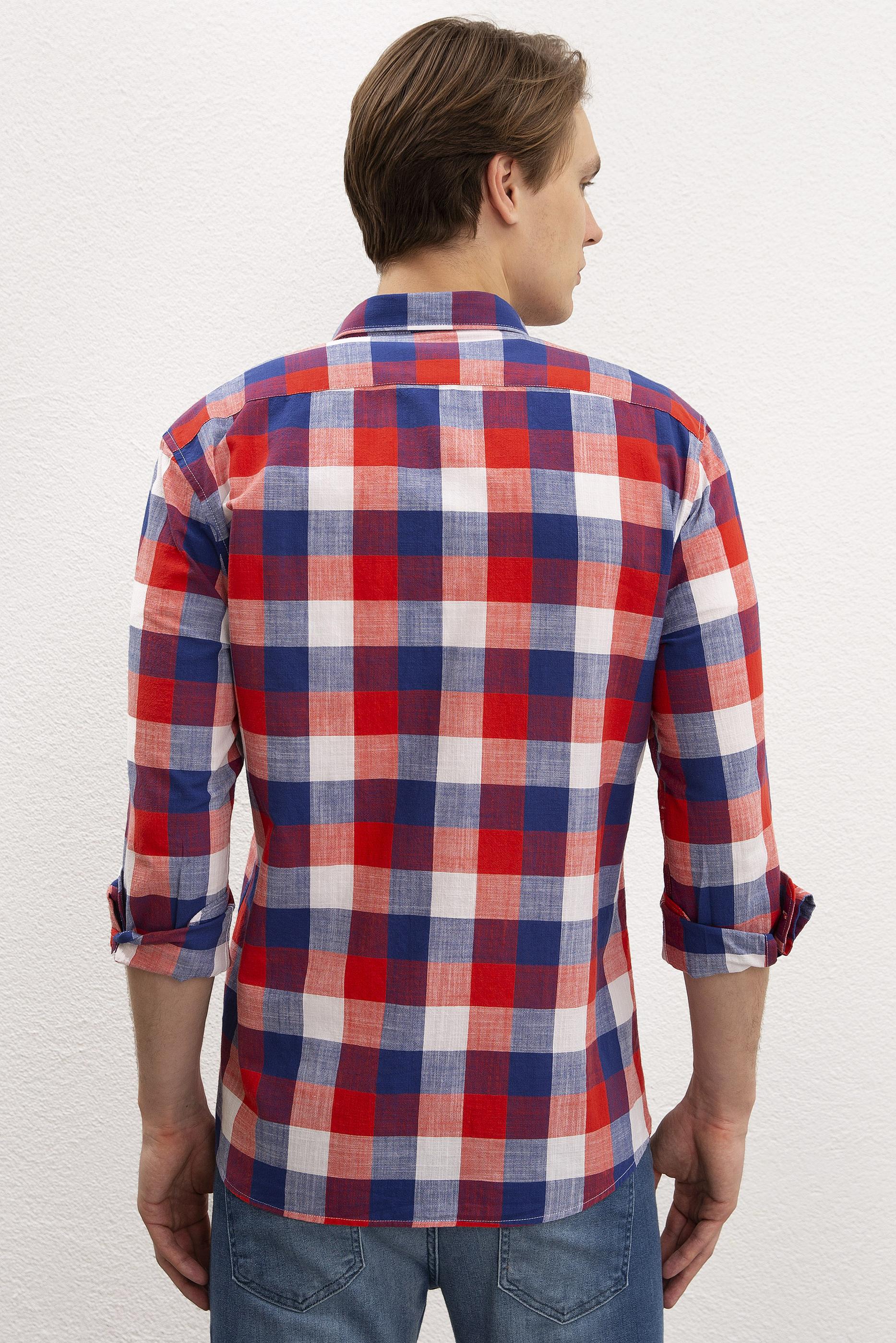 Dilerseniz spor dilerseniz de casual kombinlerde giyebileceğiniz uzun kollu erkek gömlek modelimiz nefes alan ve terletmeyen aynı zamanda rahat kalıba sahiptir. Regular fit uzun kollu erkek gömleğimiz kombininizi oluşturan diğer tüm parçalarla birleşerek göz alıcı bir görünüm oluşturur. Rahat bir giyim sunarak size zahmetsiz bir şıklık katar. Düğmeli yaka ve kareli desen tasarımıyla hareket kazandırdığımız uzun kollu erkek gömlek modelimizi çok seveceksiniz.