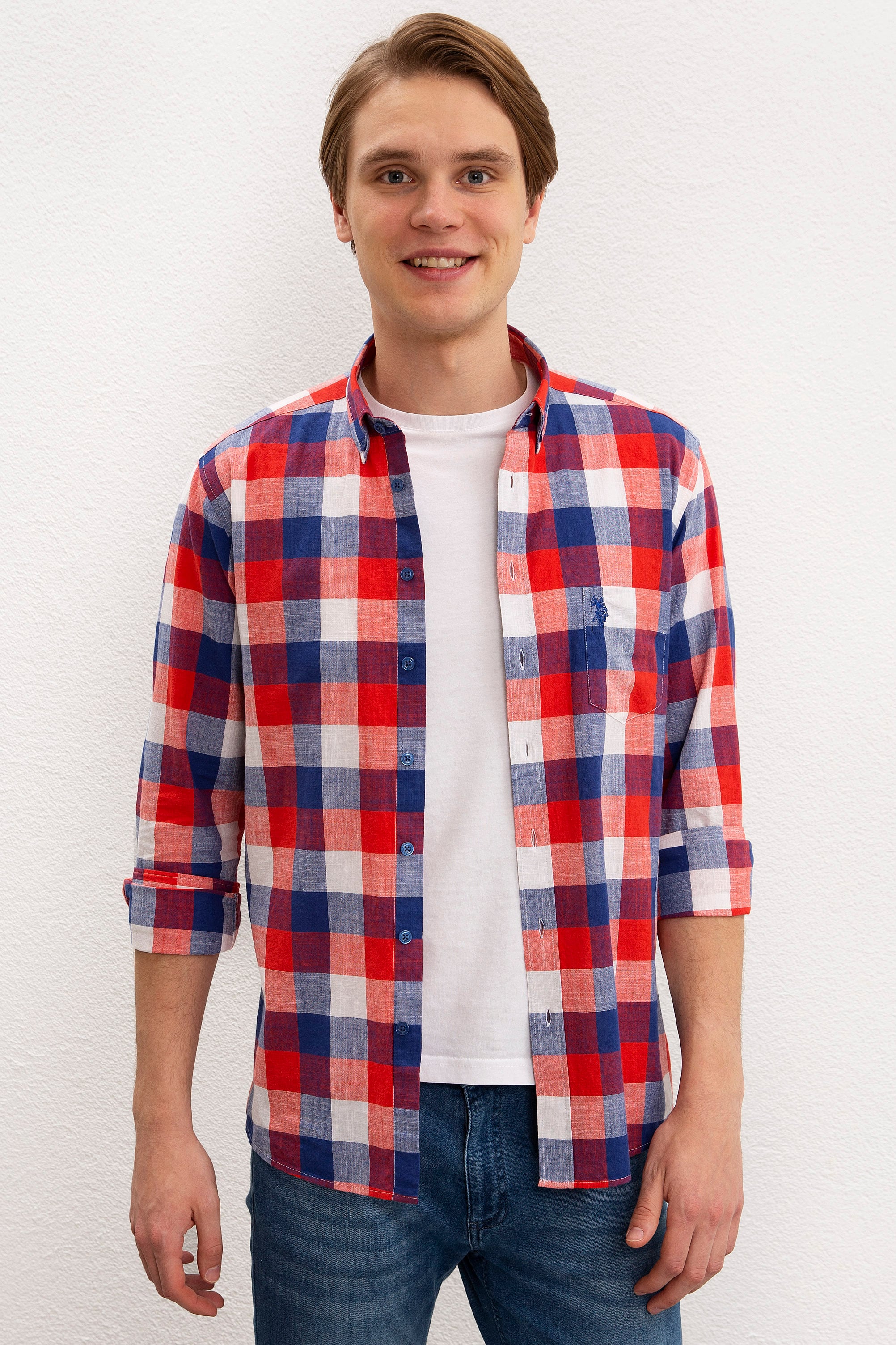Düğmeli yaka ve kareli desen tasarımıyla hareket kazandırdığımız uzun kollu erkek gömlek modelimizi çok seveceksiniz.