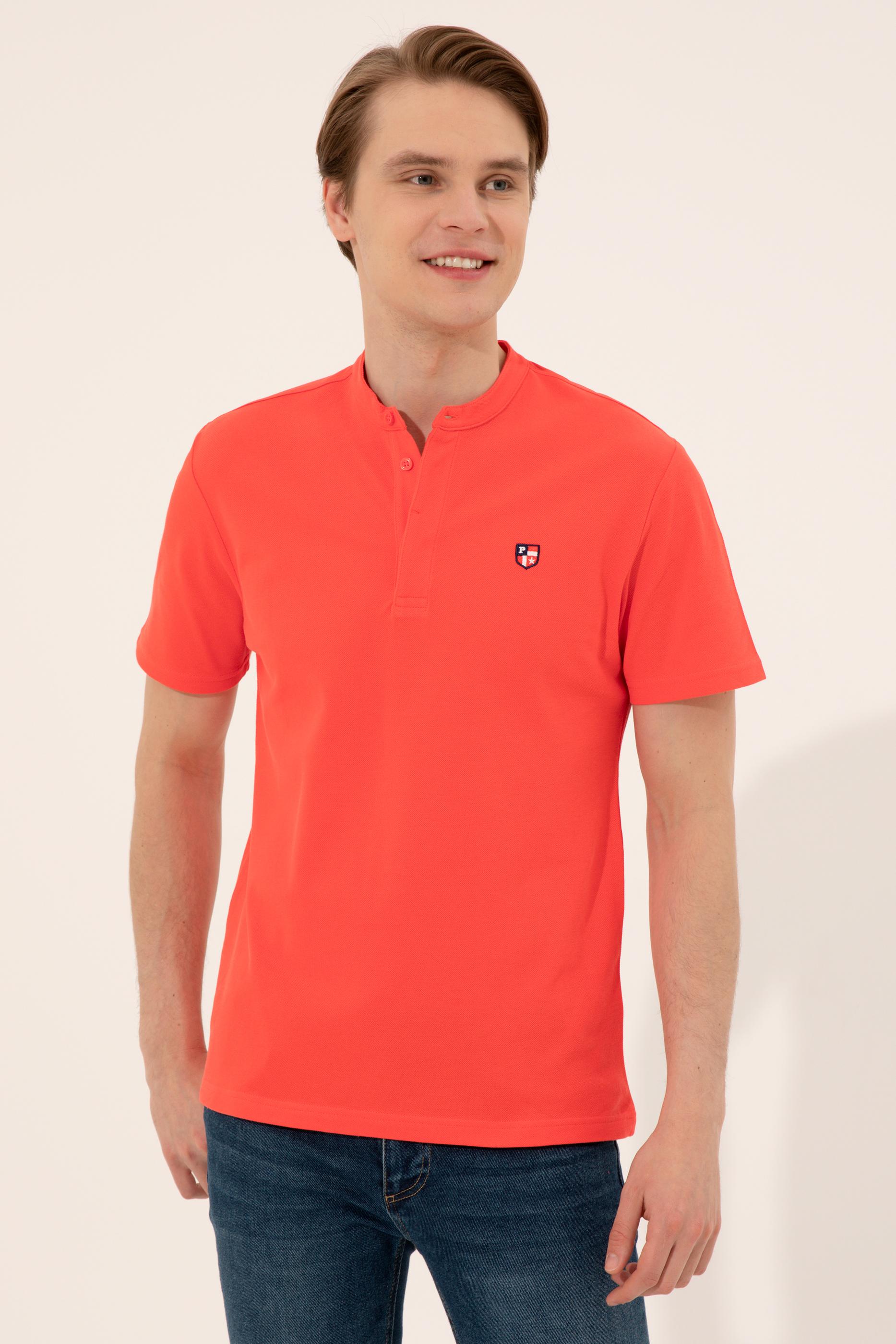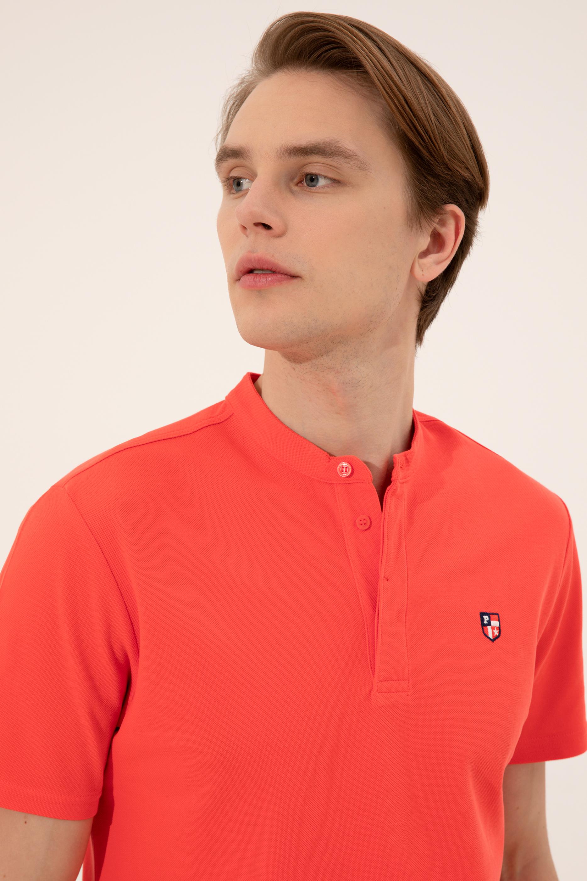 Erkek Kırmızı Hakim Yaka T-Shirt