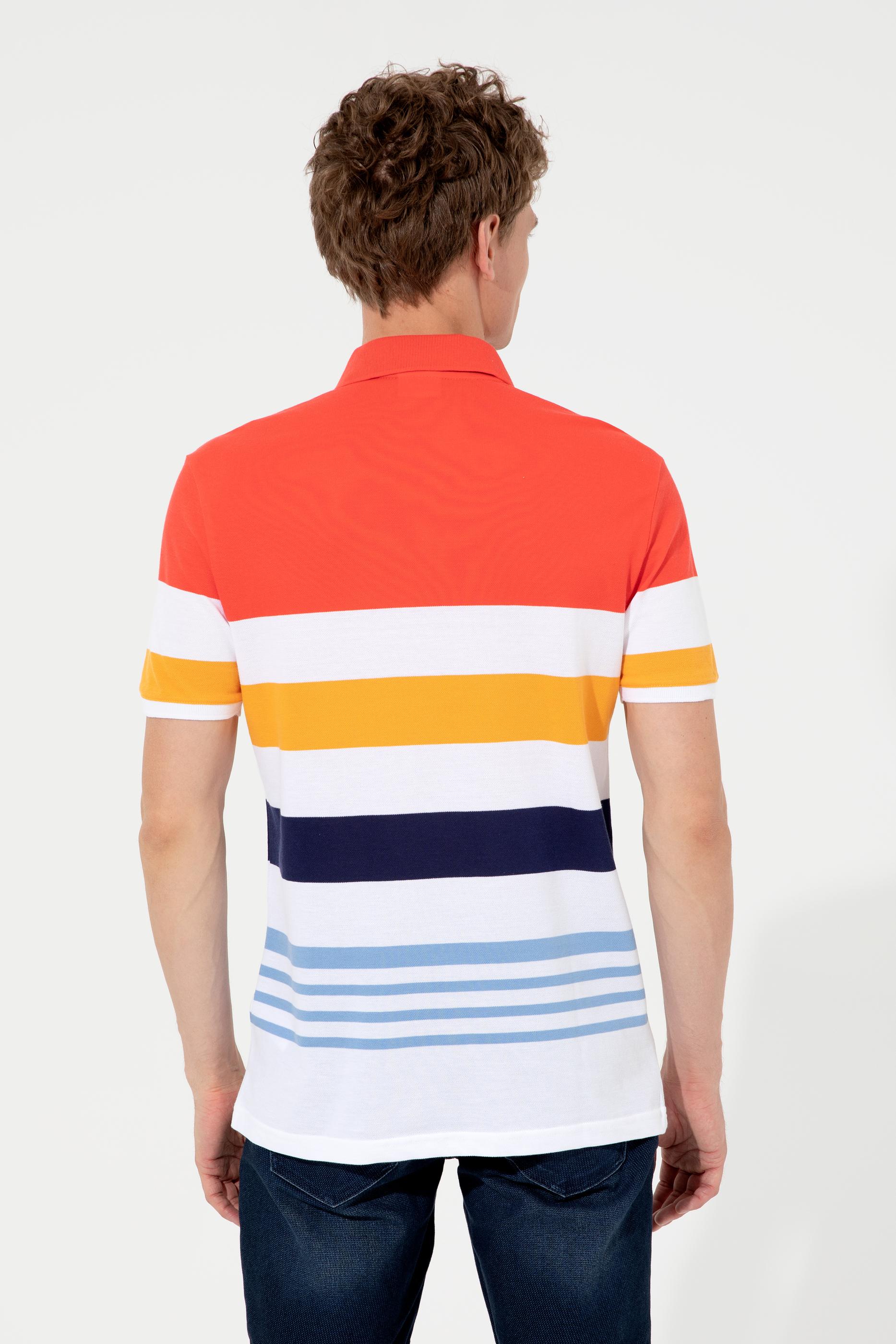 Canlı ve göz alıcı renkler kullanarak oluşturduğumuz blok desenli polo yaka erkek tişörtümüz casual kombinler başta olmak üzere entegre etmek istediğiniz her görünümde size eşlik eder.