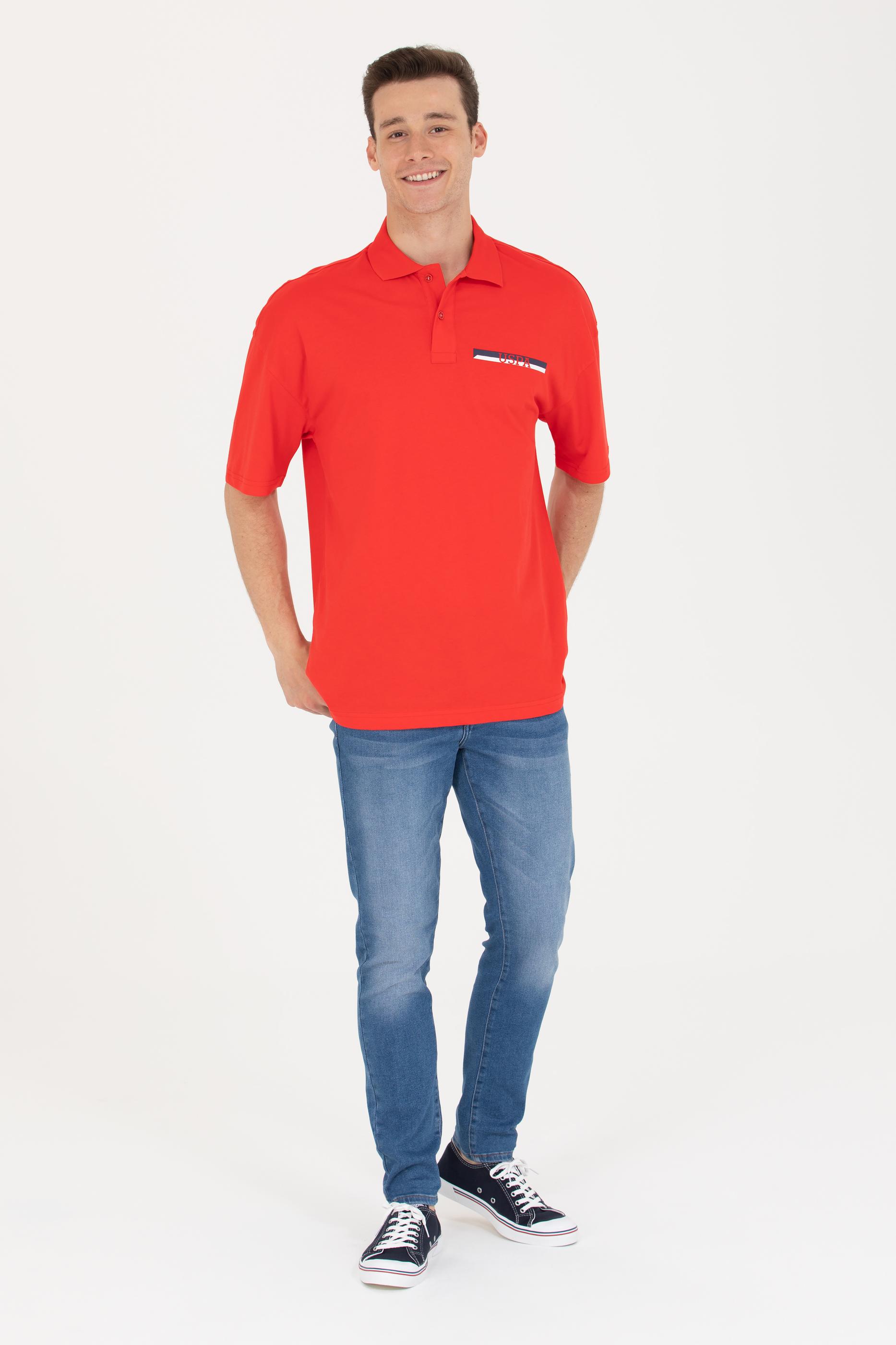 Erkek Kırmızı Oversize Polo Yaka Tişört