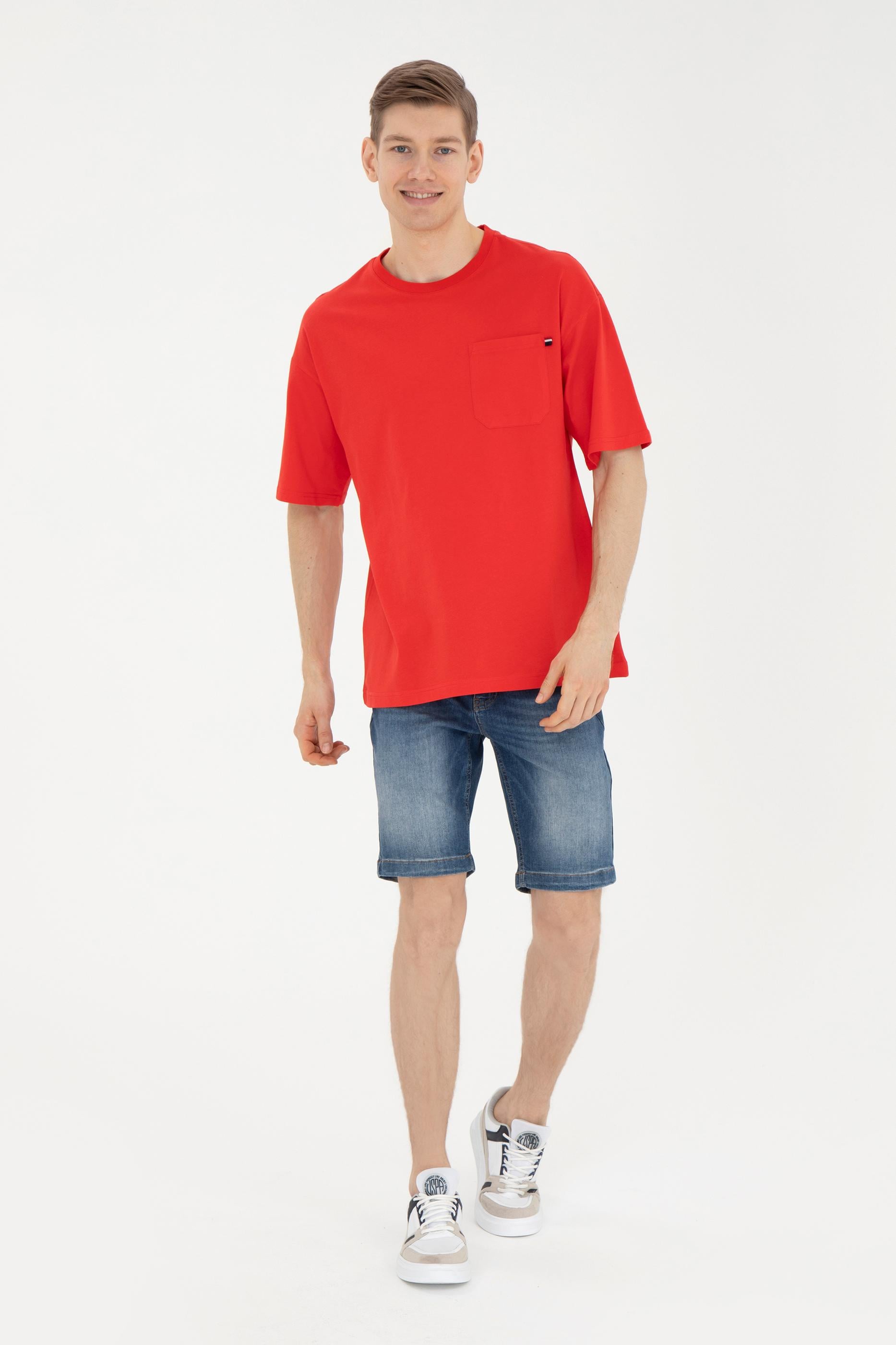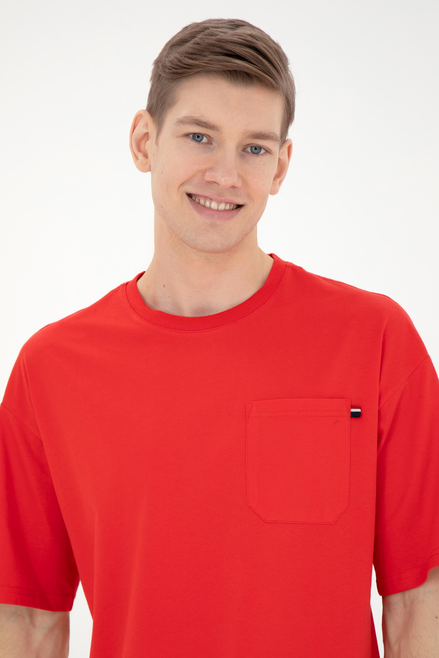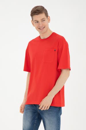 Erkek Comfort Fit Bisiklet Yaka Kırmızı Tişört