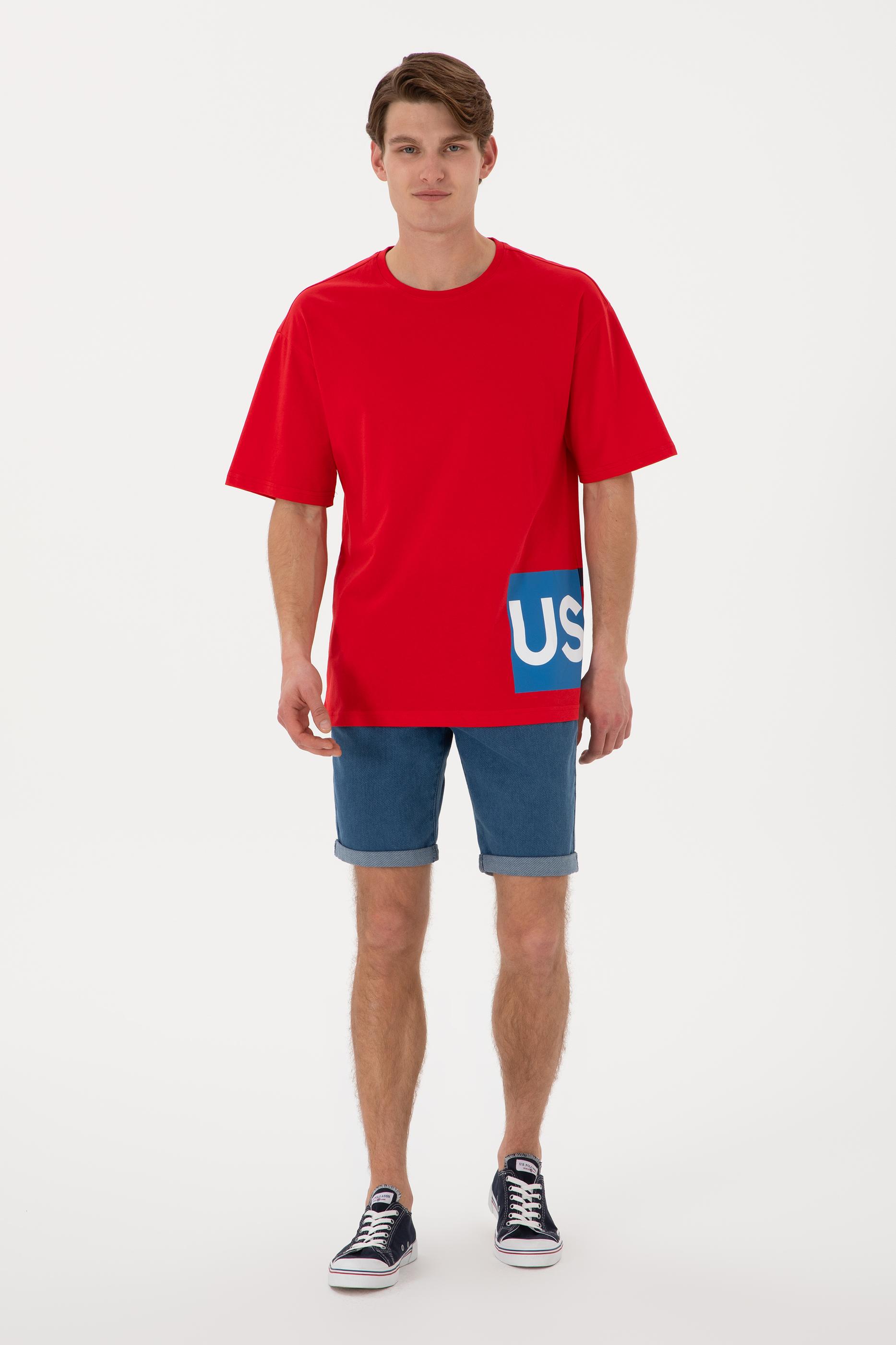 enerjik tasarımıyla öne çıkan bu kırmızı U.S. Polo Assn. erkek tişört, tarzına cesur bir dokunuş katmak isteyenler için ideal bir seçimdir. %100 pamuklu kumaştan üretilmiş olan model, yumuşak dokusu ve nefes alabilir yapısıyla maksimum konfor sunarken, comfort fit kalıbı sayesinde vücuda oturmadan rahat bir kullanım sağlar. Sol etek ucunda yer alan büyük, kontrast renkli “USPA” baskısı, sade zeminle etkileyici bir tezat oluşturarak modern ve sportif bir görünüm yaratır. Bisiklet yaka detayı ve kısa kollu formu ile günlük giyimde kolaylıkla tercih edilebilir. Açık renkli şortlar, jean pantolonlar ya da sneaker’larla kombinlenerek dinamik bir yaz stili oluşturmanıza yardımcı olur.