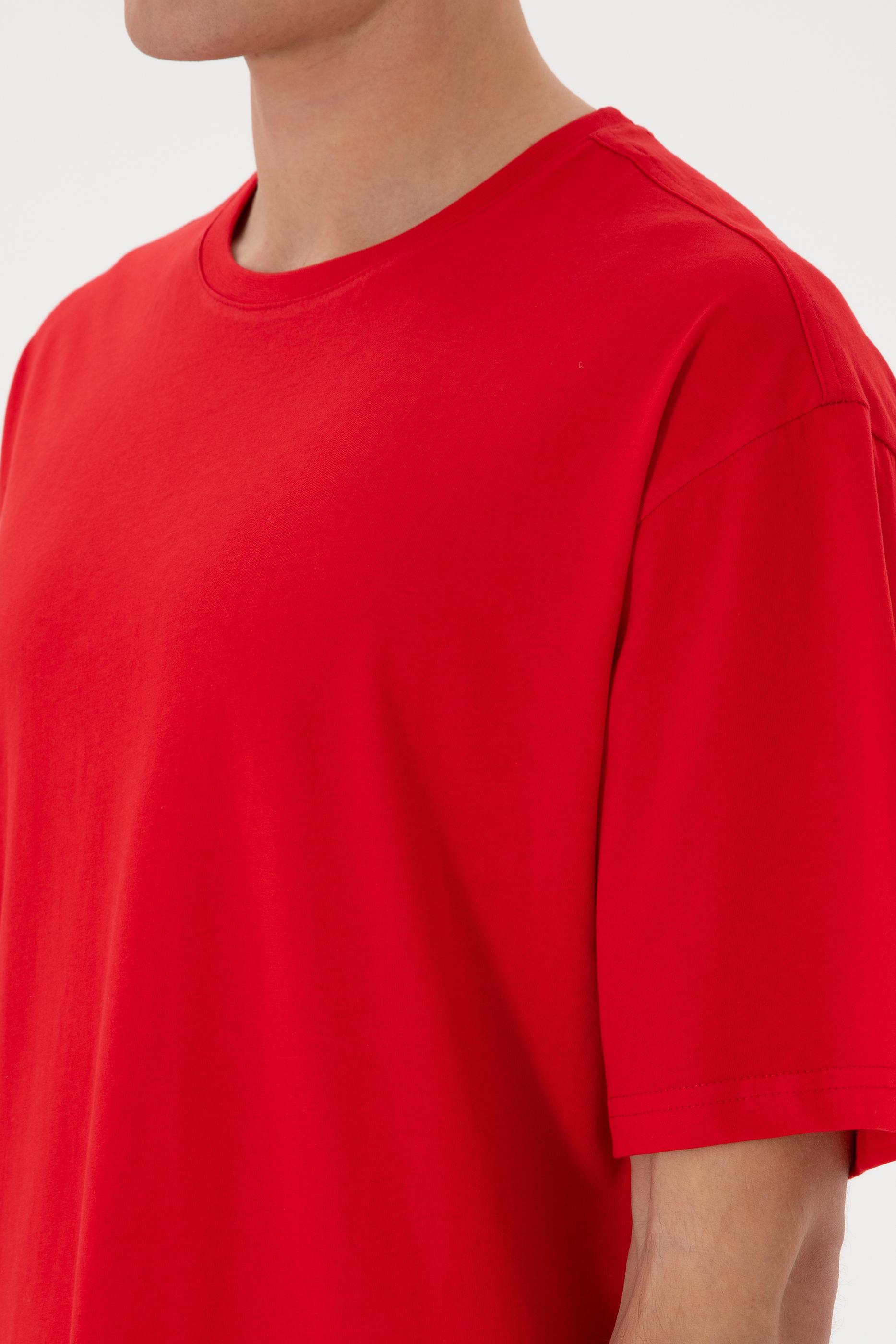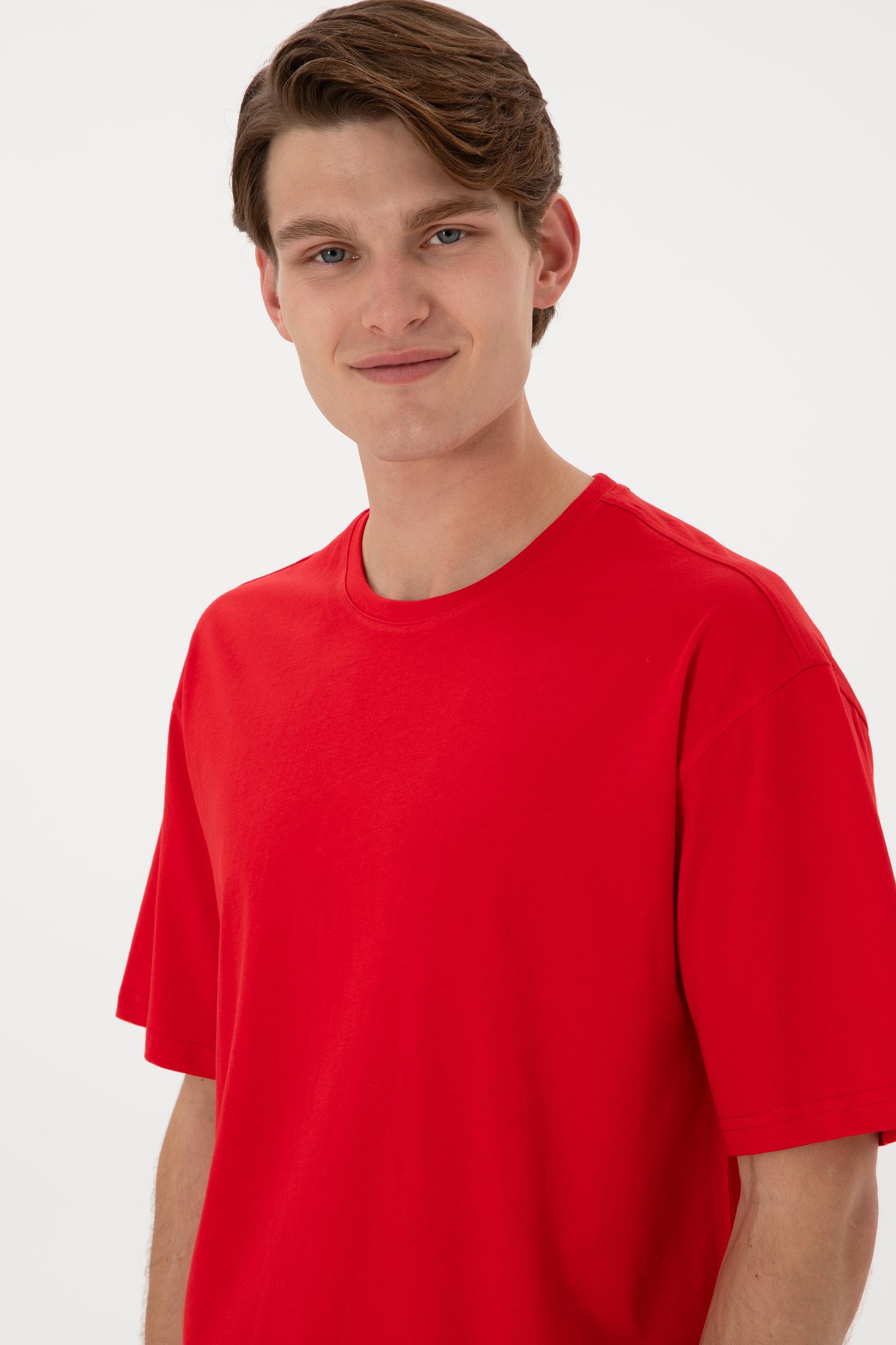 Erkek Comfort Fit Bisiklet Yaka Kırmızı Tişört