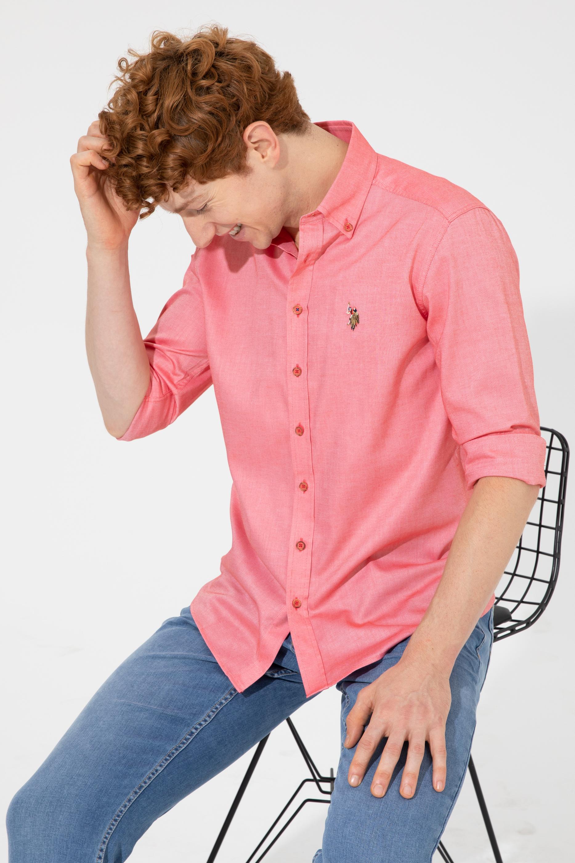 Erkek Kırmızı Uzun Kollu Basic Gömlek
