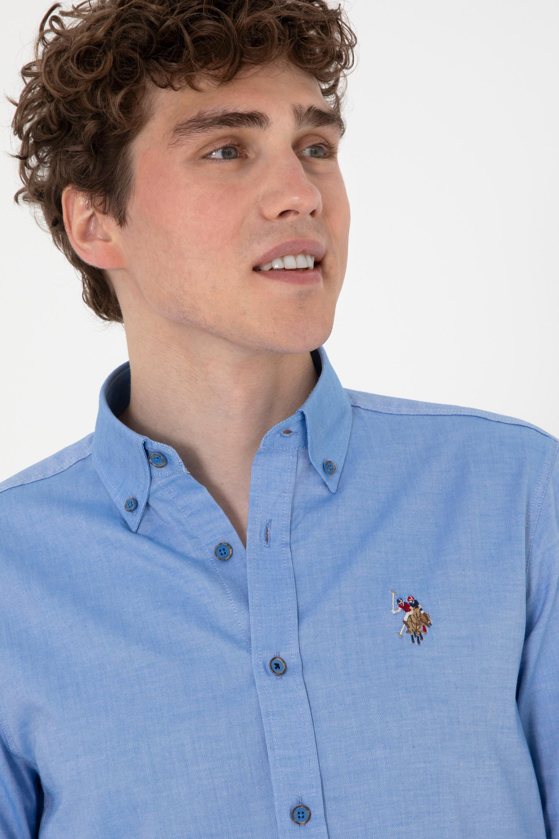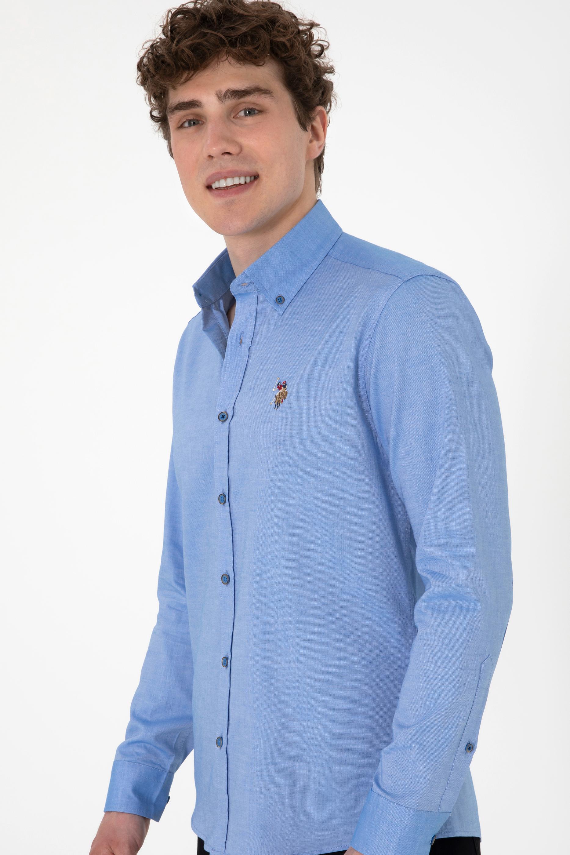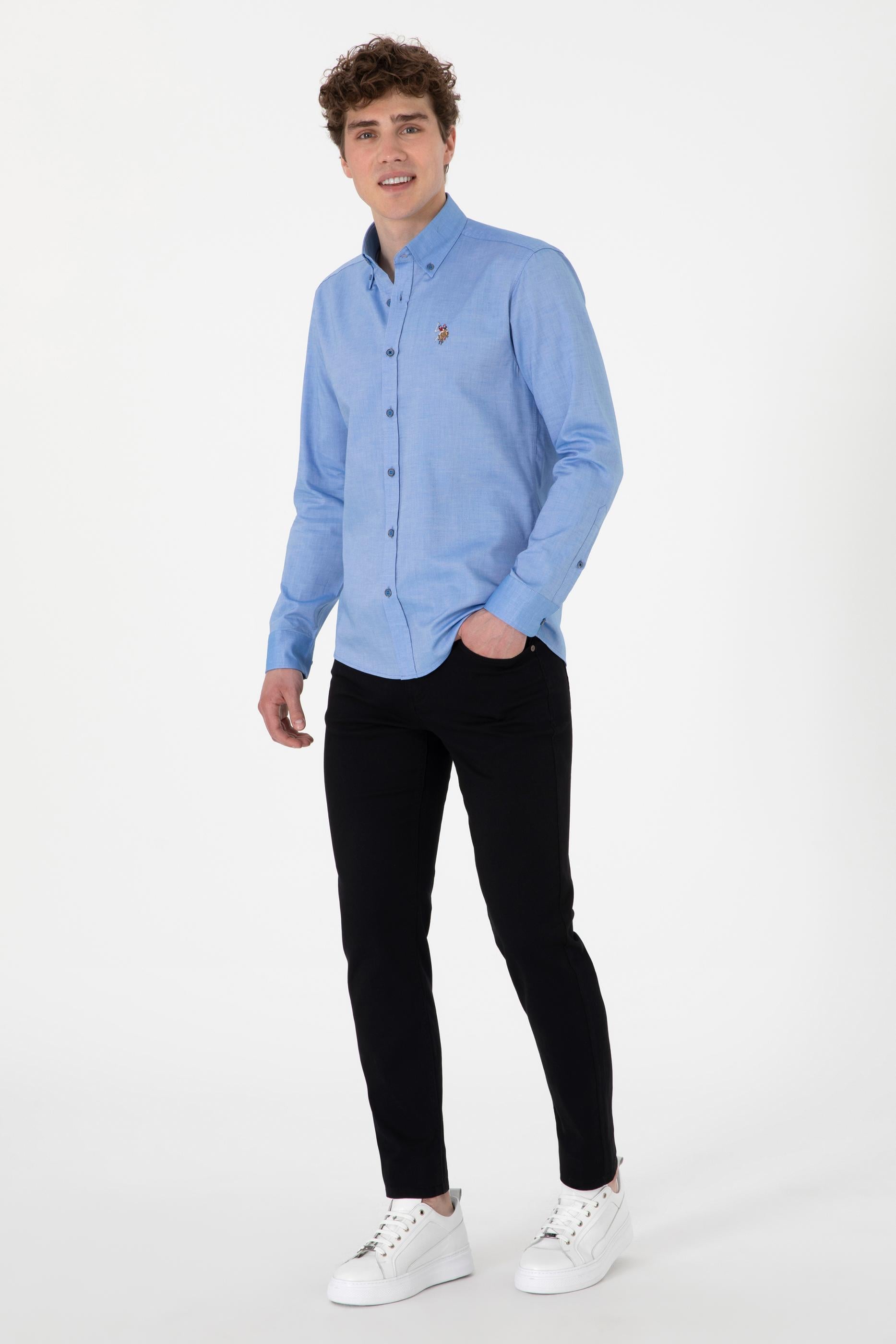 Erkek Kobalt Mavi Uzun Kollu Basic Gömlek