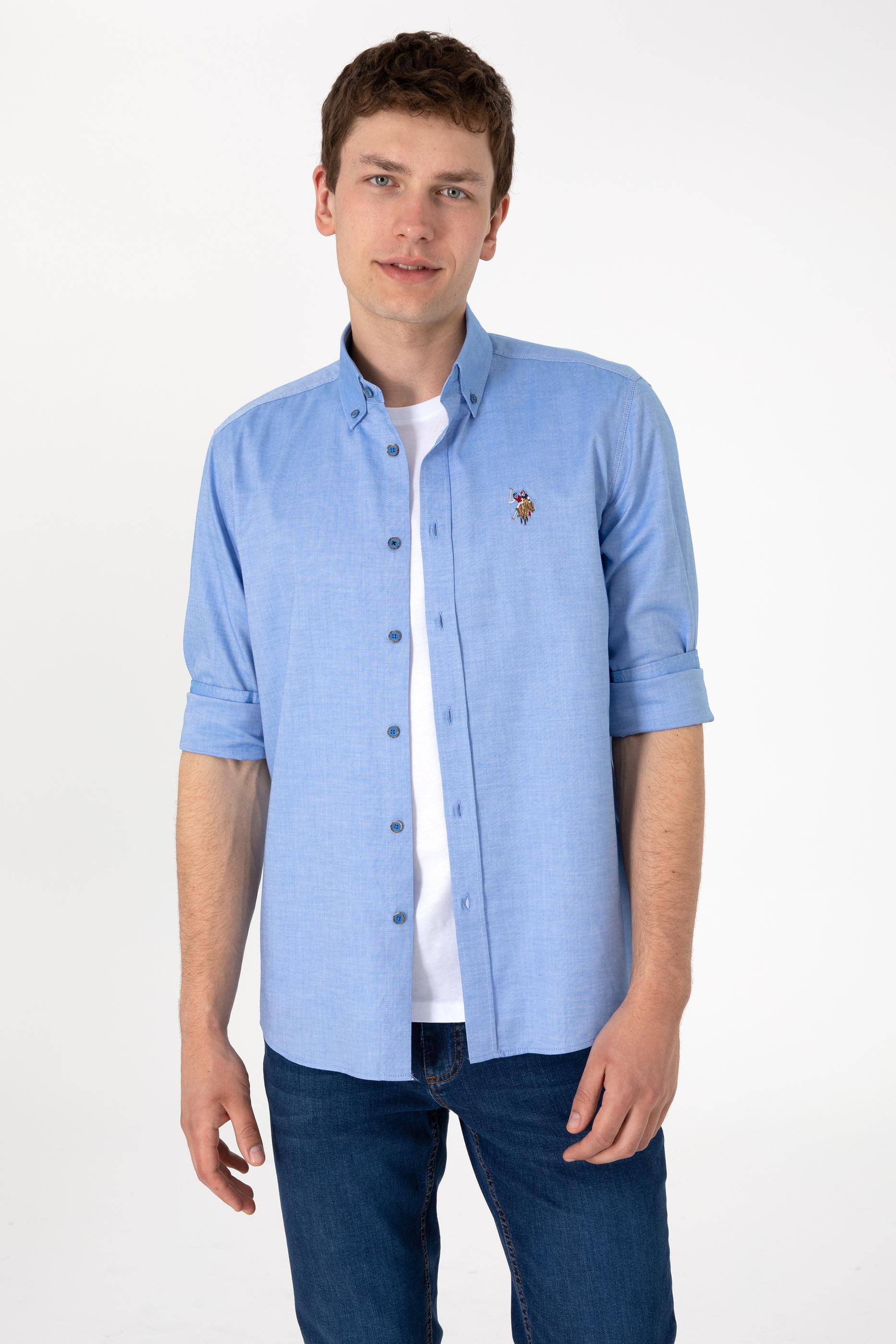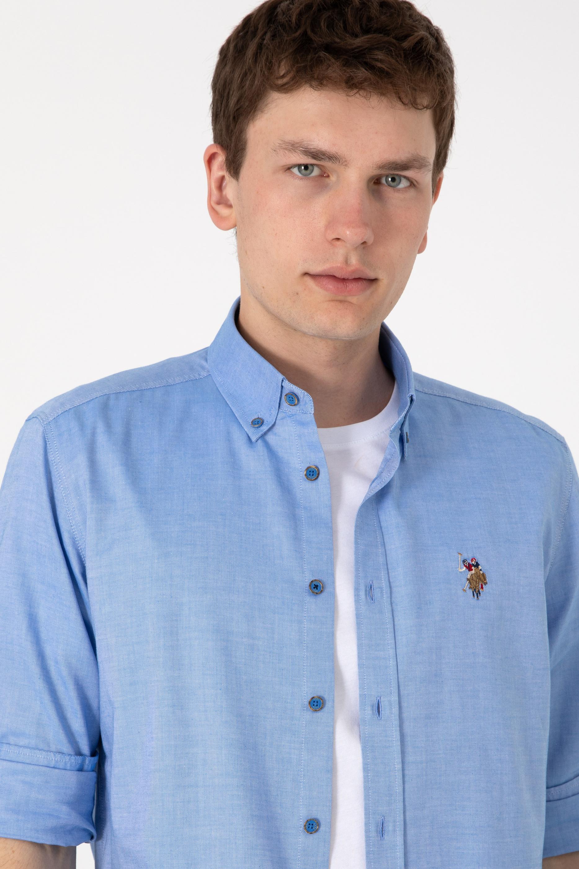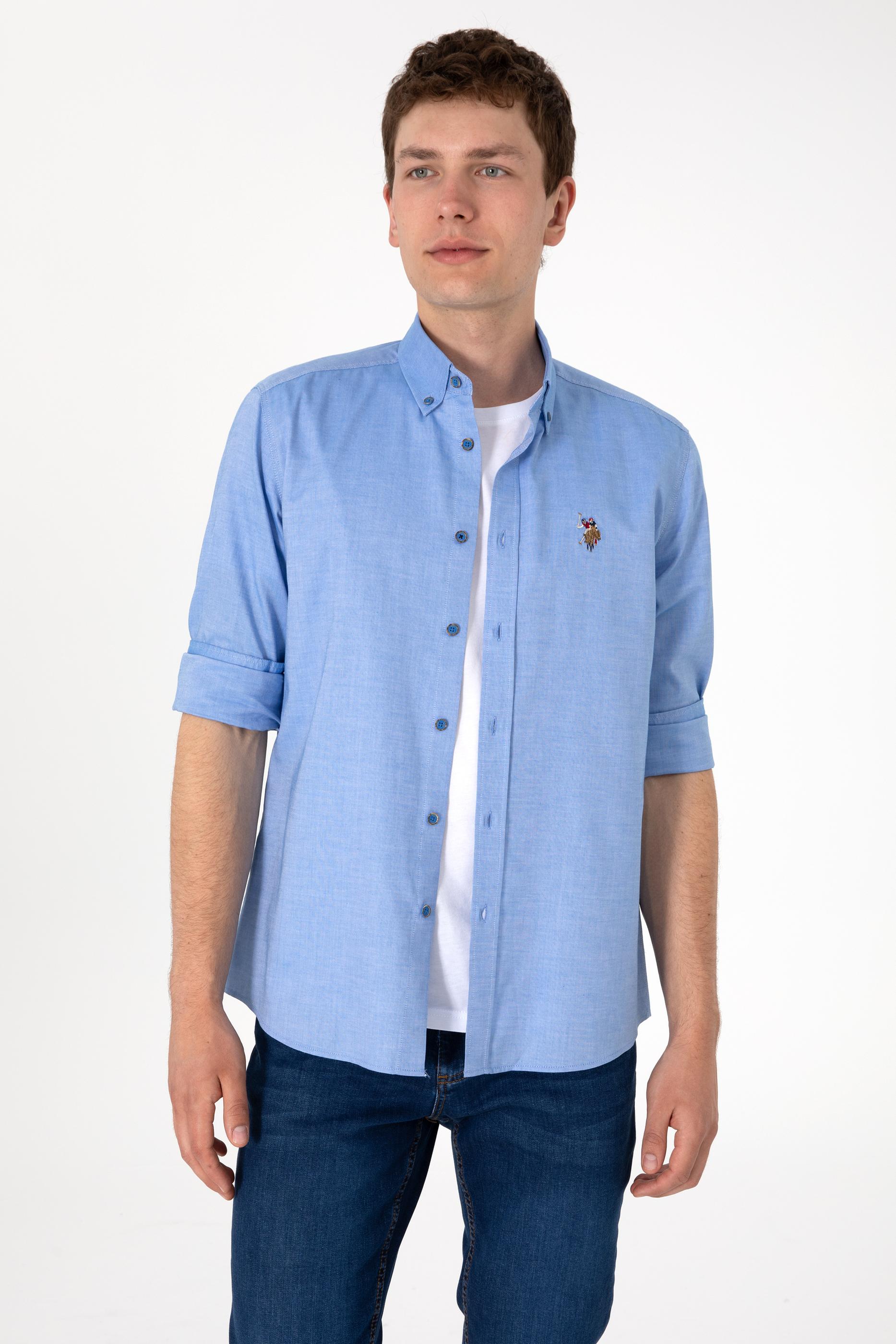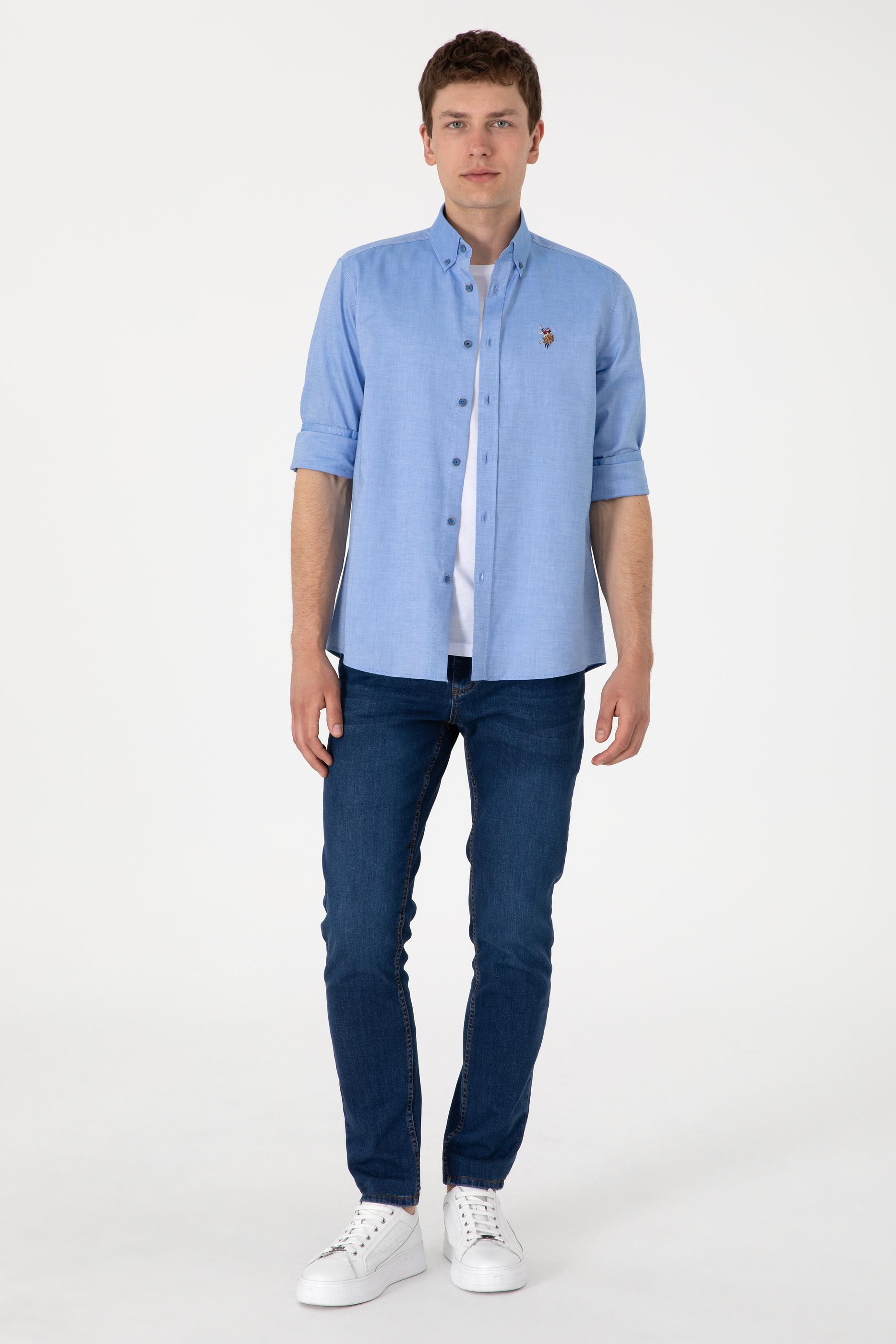 - Erkek Kobalt Mavi Uzun Kollu Basic Gömlek