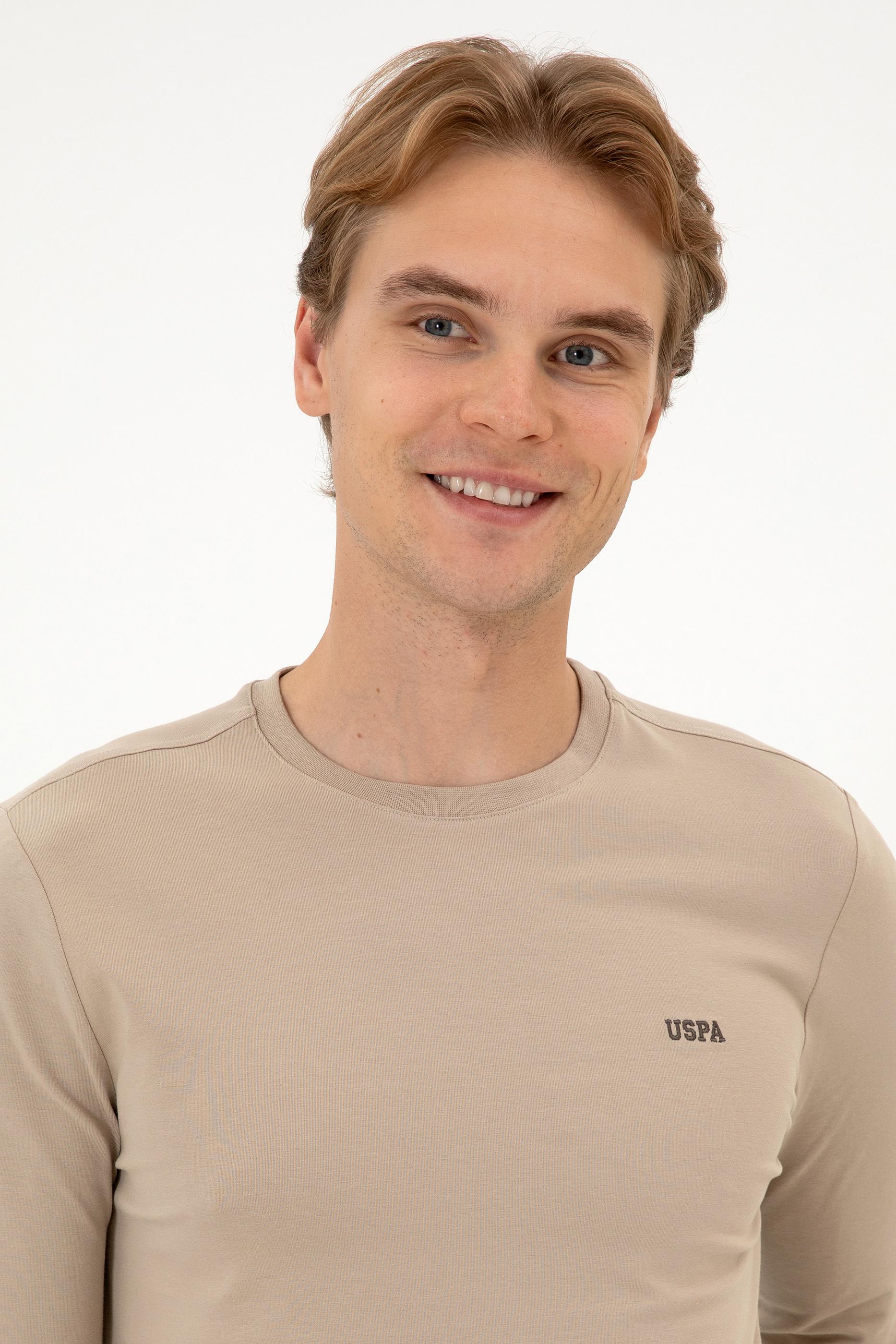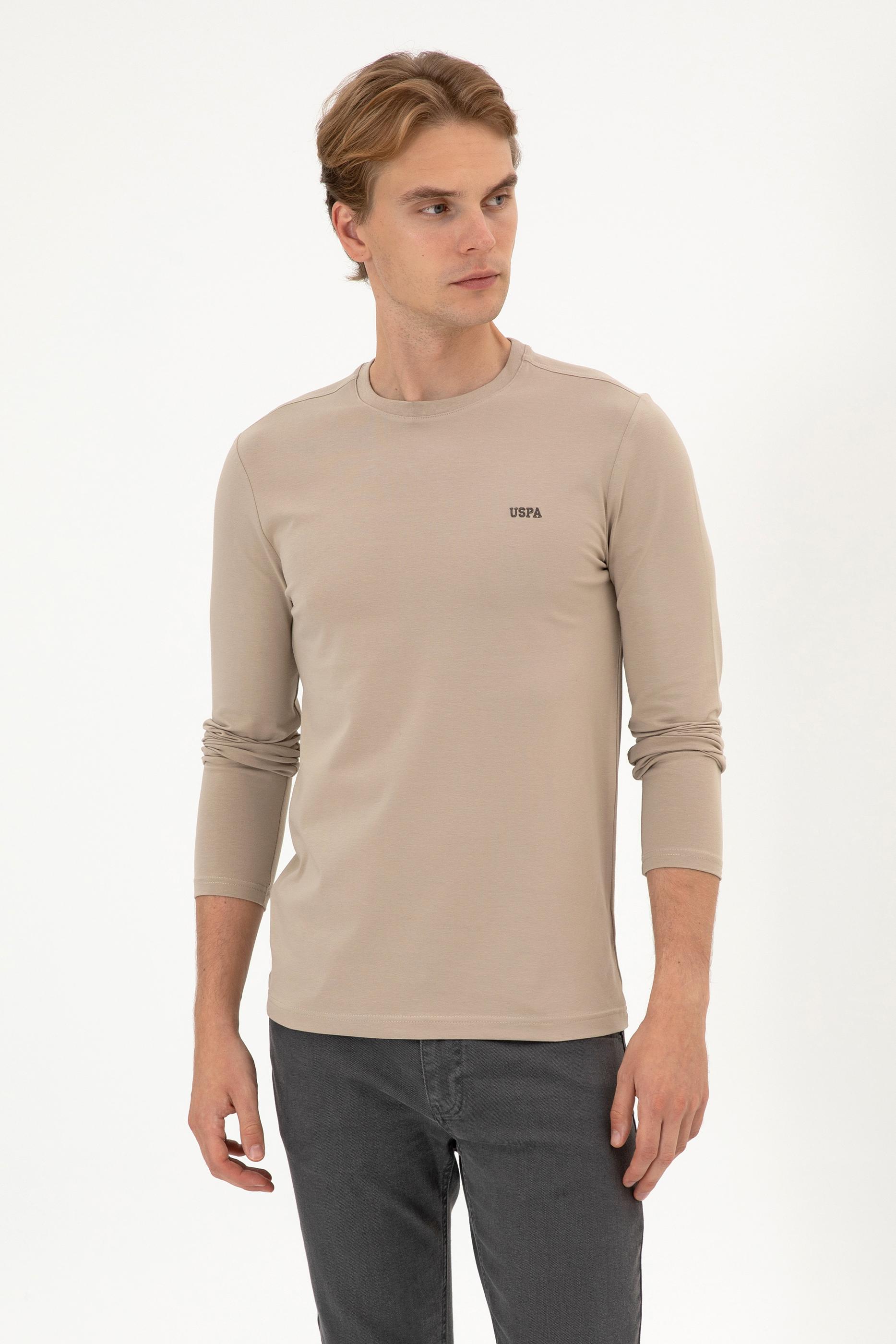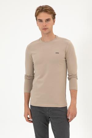 - Erkek Slim Fit Bisiklet Yaka Koyu Bej Süprem Basic Sweatshirt