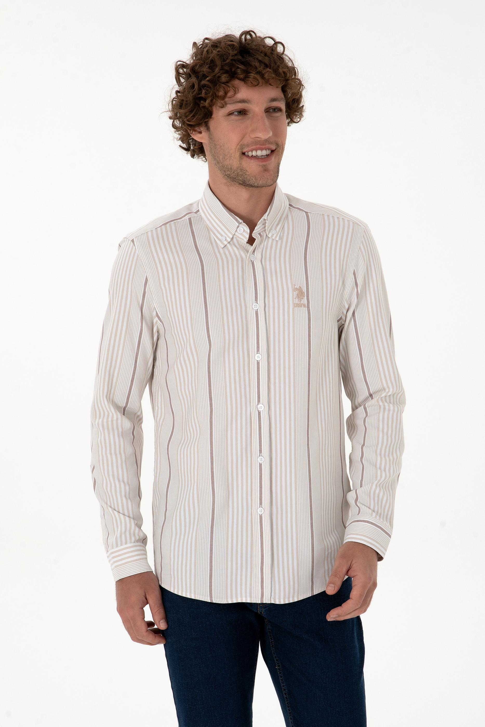 Erkek Koyu Bej Uzun Kollu Gömlek