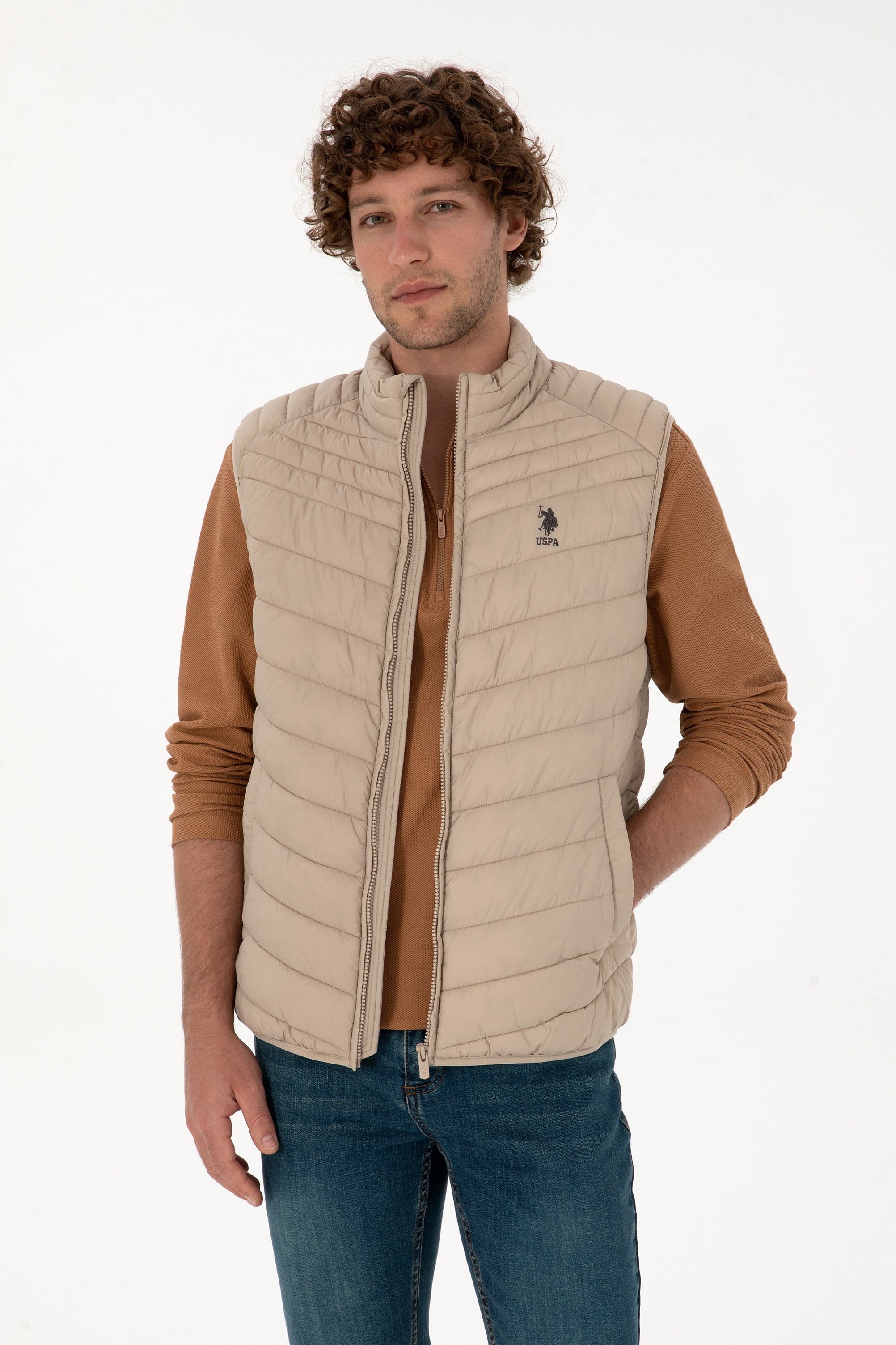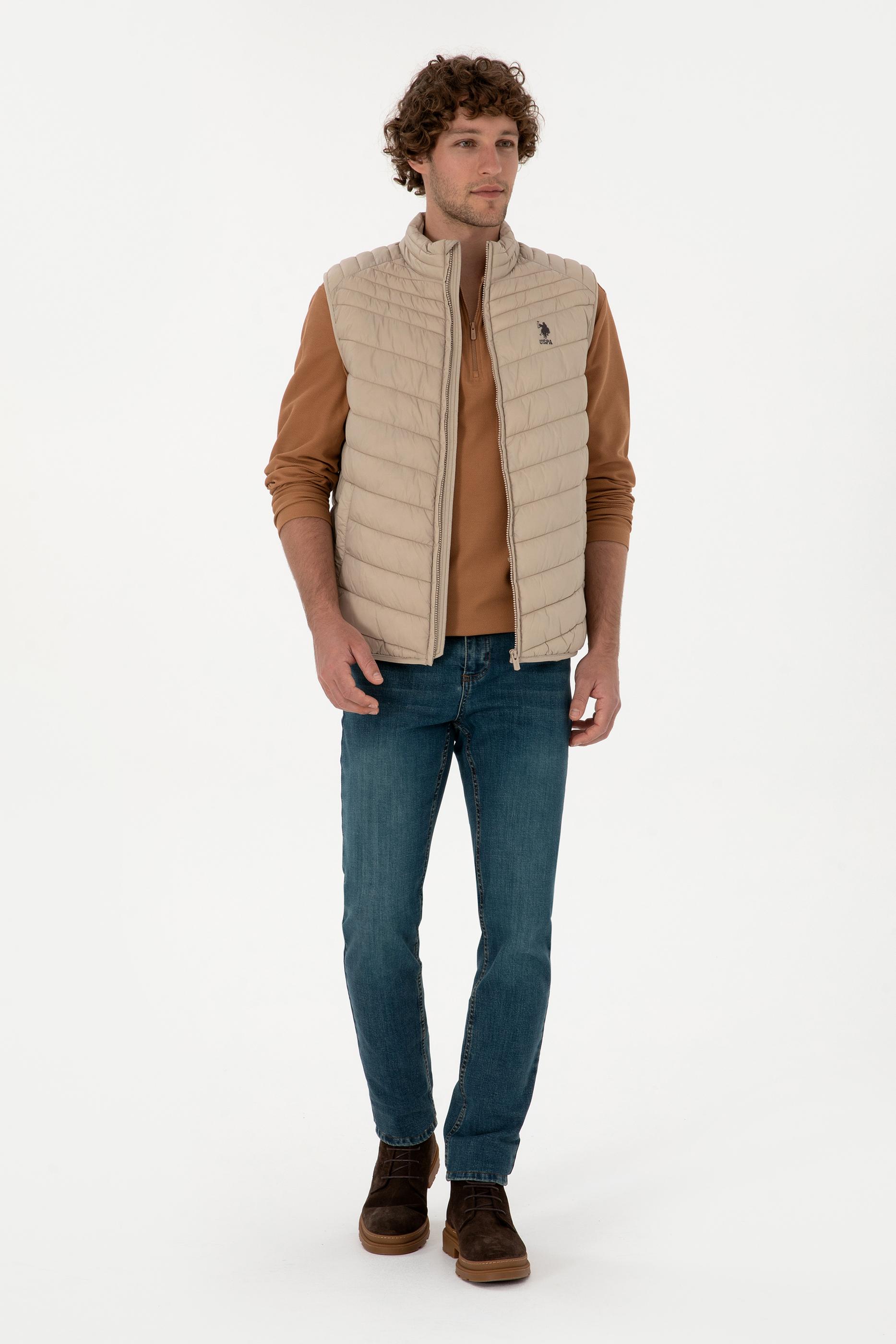 Erkek yelek, bej rengi ve basic tasarımıyla hem spor hem de günlük kombinler için işlevsel bir parça sunar. Standart boyu bel hizasında biterek rahat bir kullanım sağlar. Kollu tasarımlara göre daha hafif olması sayesinde hareket özgürlüğü verir ve katmanlı giyimde pratiklik kazandırır. Dokuma kumaş yapısı dayanıklıdır ve dolgulu iç yapısı sayesinde soğuk havalarda koruma sağlar. Regular kalıbı vücudu hafifçe sararak modern bir görünüm oluşturur. Dik yaka detayı boyun bölgesini korur ve şıklık katar. Ön kısmındaki fermuarlı kapama kolay kullanım sunarken, yan cepler hem işlevsellik hem de elleri ısıtma amacıyla tasarlanmıştır. Uzun kollu tişört, triko veya gömleklerle rahatlıkla kombinlenebilen bu yelek, mevsim geçişlerinde ideal bir tamamlayıcıdır.