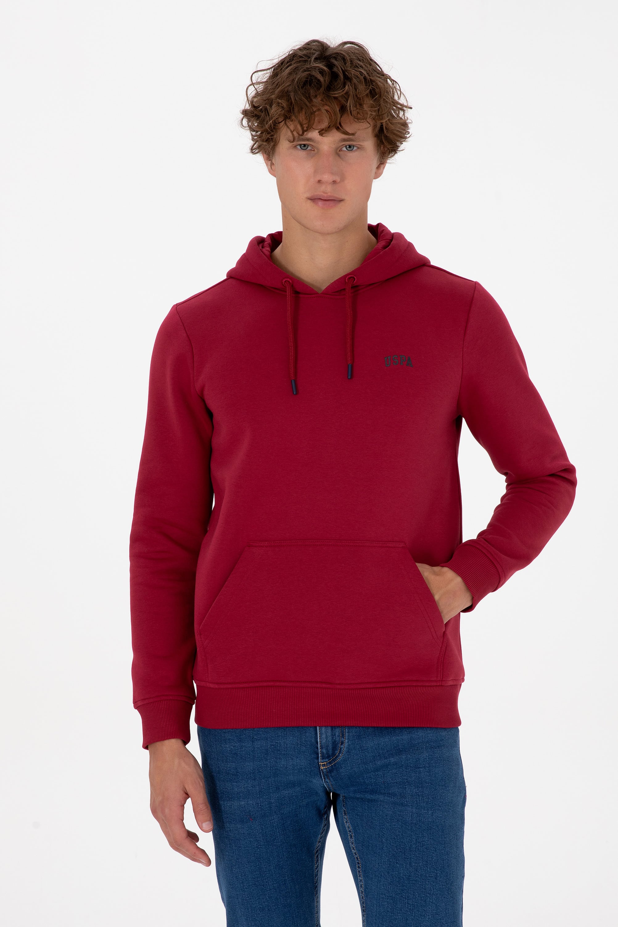 - Erkek Regular Fit Kapüşonlu Şardonlu Koyu Frambuaz Basic Sweatshirt