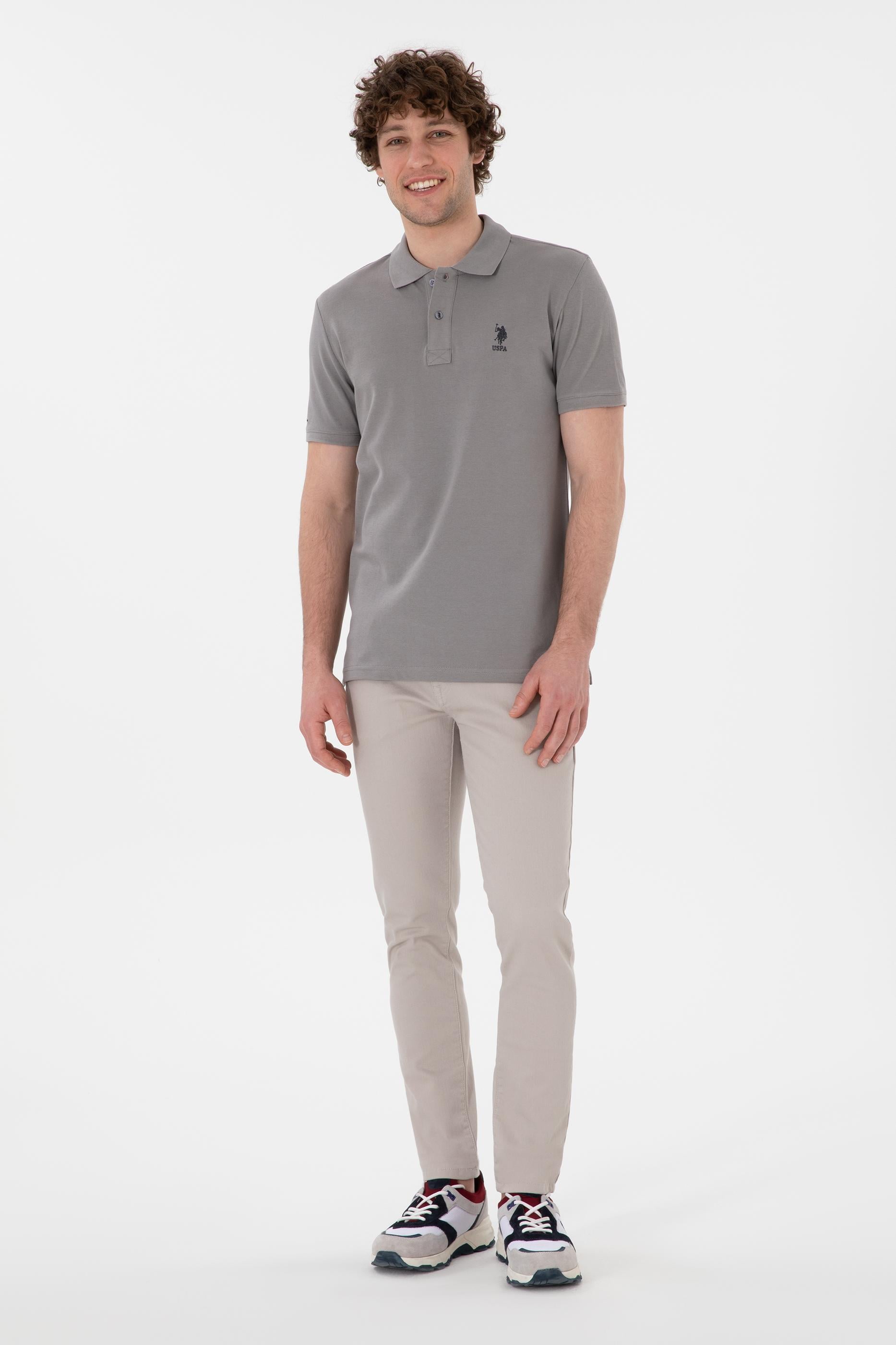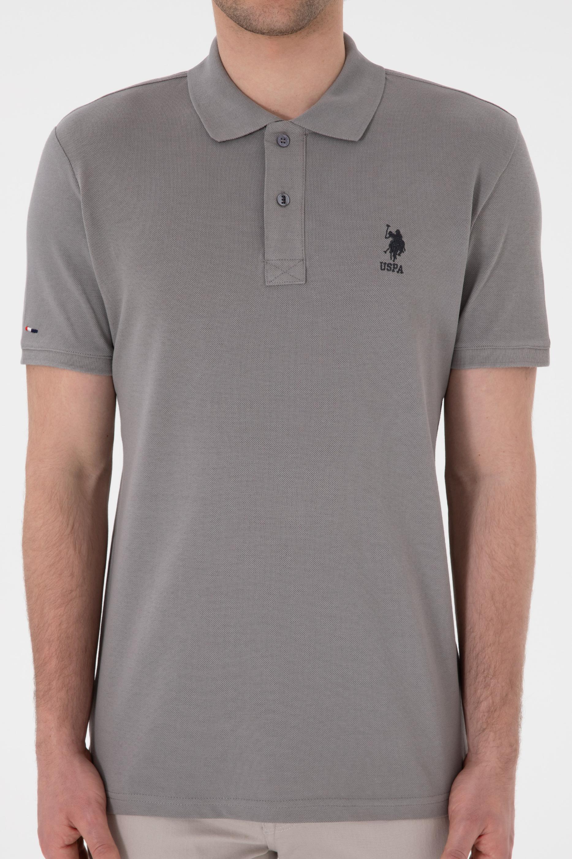- Erkek Slim Fit Polo Yaka Koyu Gri Basic Tişört