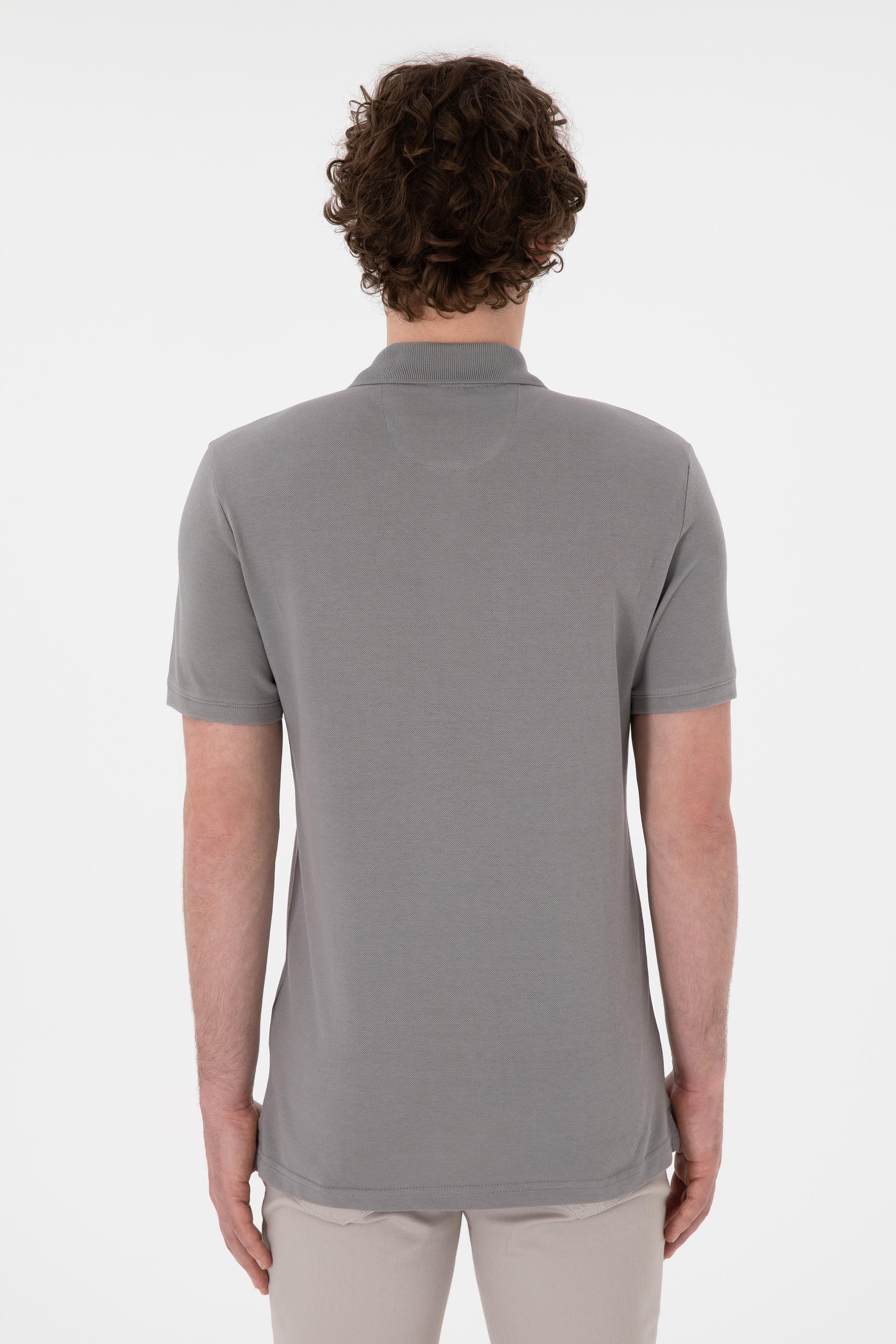 Erkek Slim Fit Polo Yaka Koyu Gri Basic Tişört