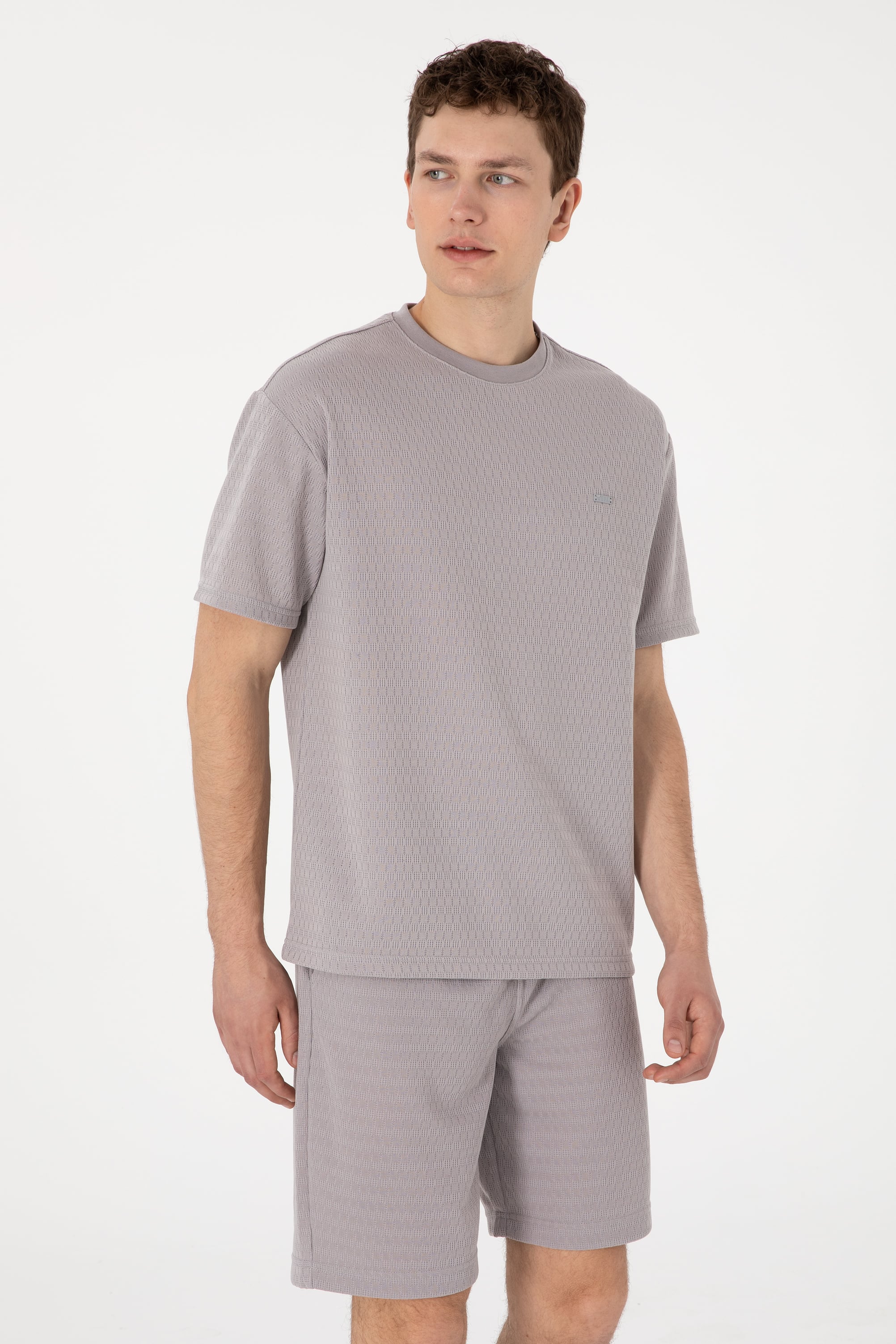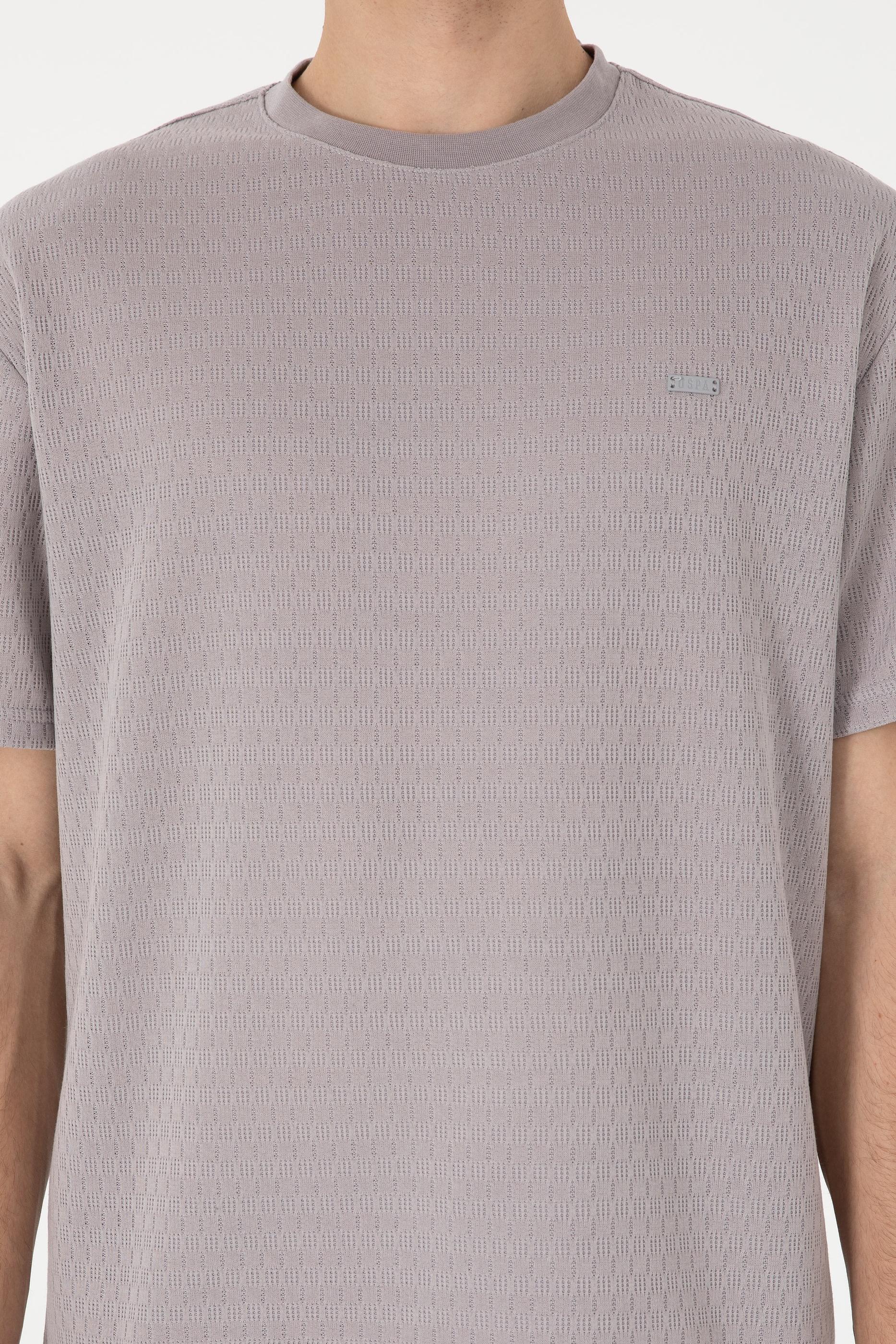 Erkek Comfort Fit Bisiklet Yaka Koyu Gri Tişört