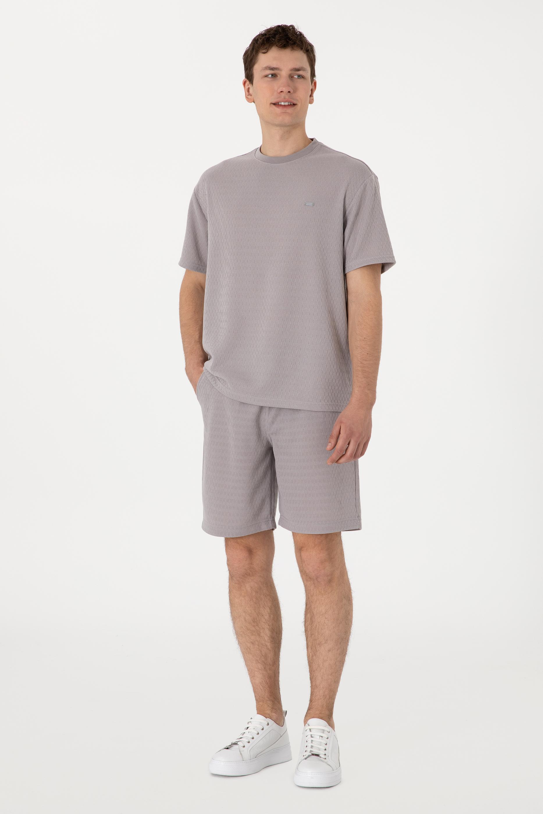 - Erkek Comfort Fit Bisiklet Yaka Koyu Gri Tişört