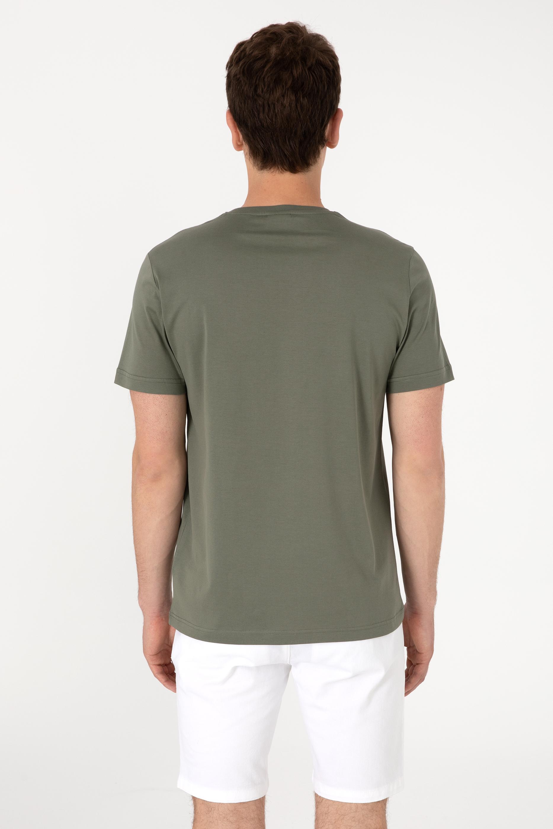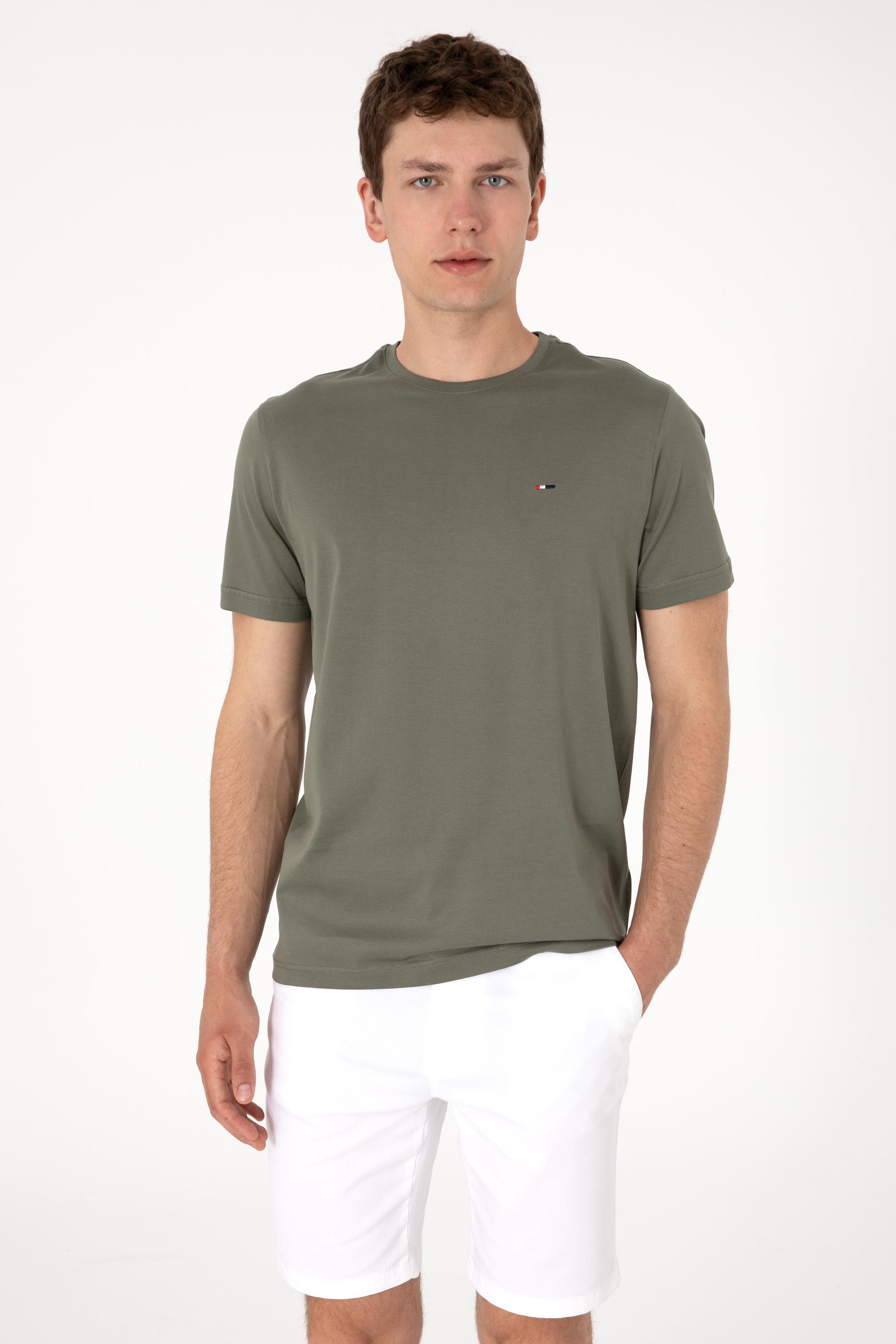 Erkek Regular Fit Bisiklet Yaka Koyu Haki Basic Tişört