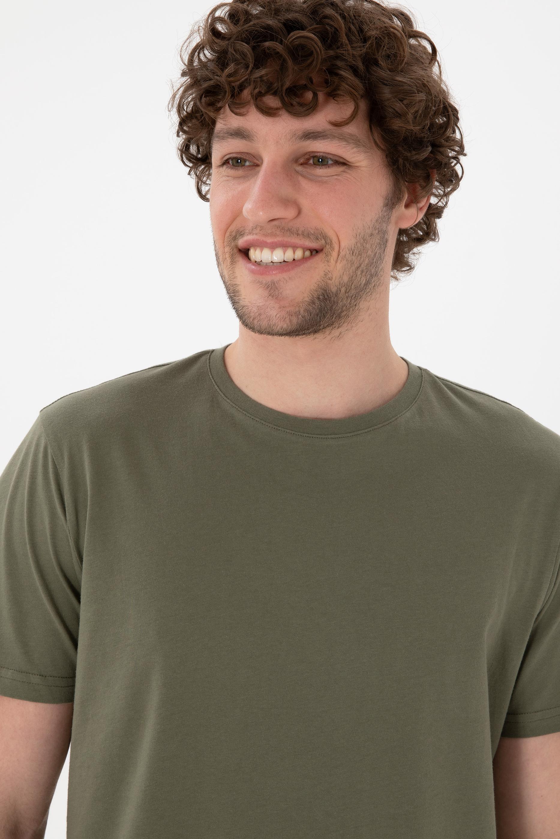 Erkek Regular Fit Bisiklet Yaka Koyu Haki Basic Tişört