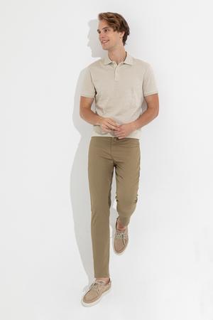 Pamuk karışımlı erkek chino pantolon modelimiz esnek kumaş yapısı ve yumuşak dokuyu harmanlayarak günlük kombinlerinize konfor katar.