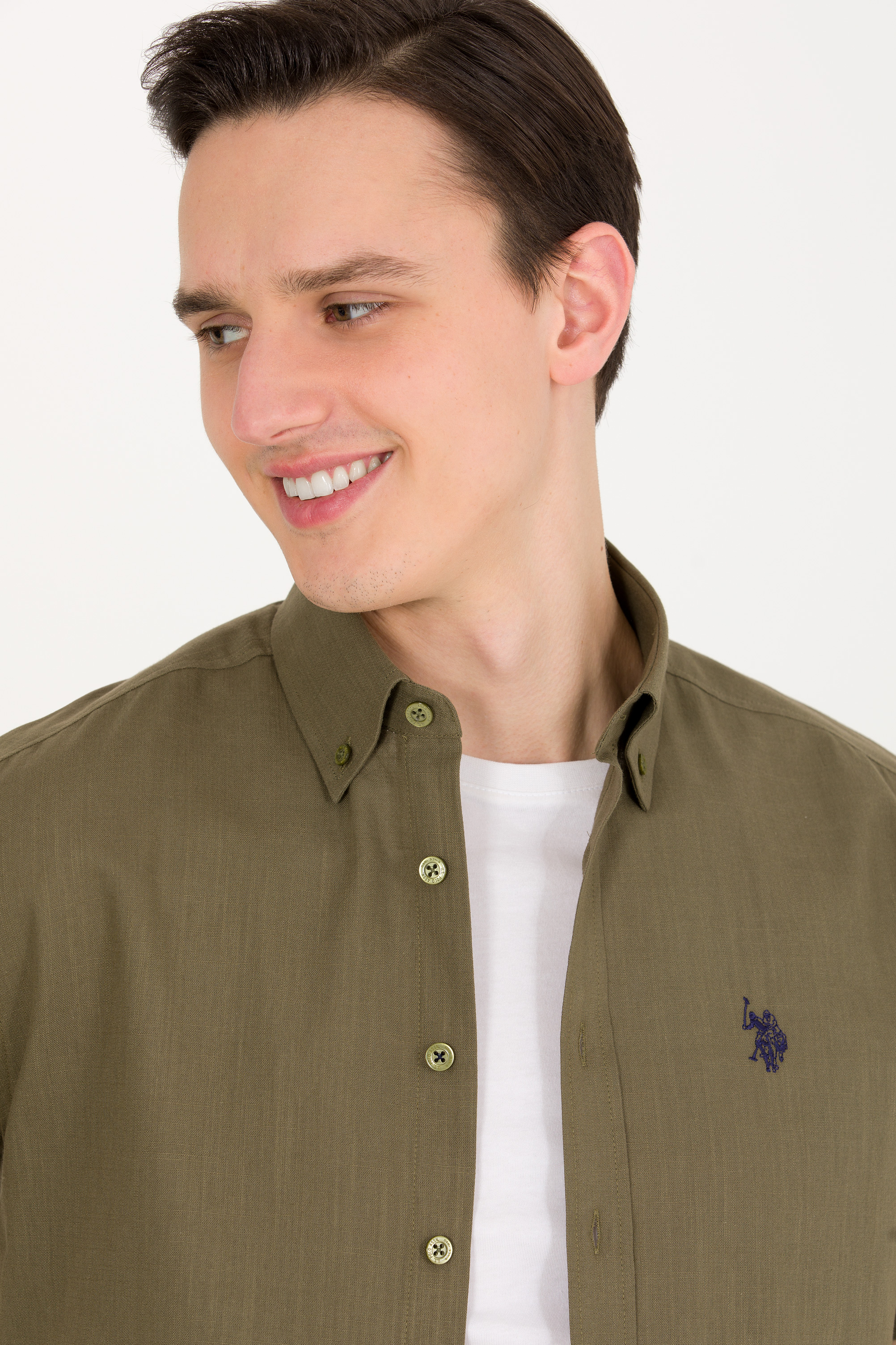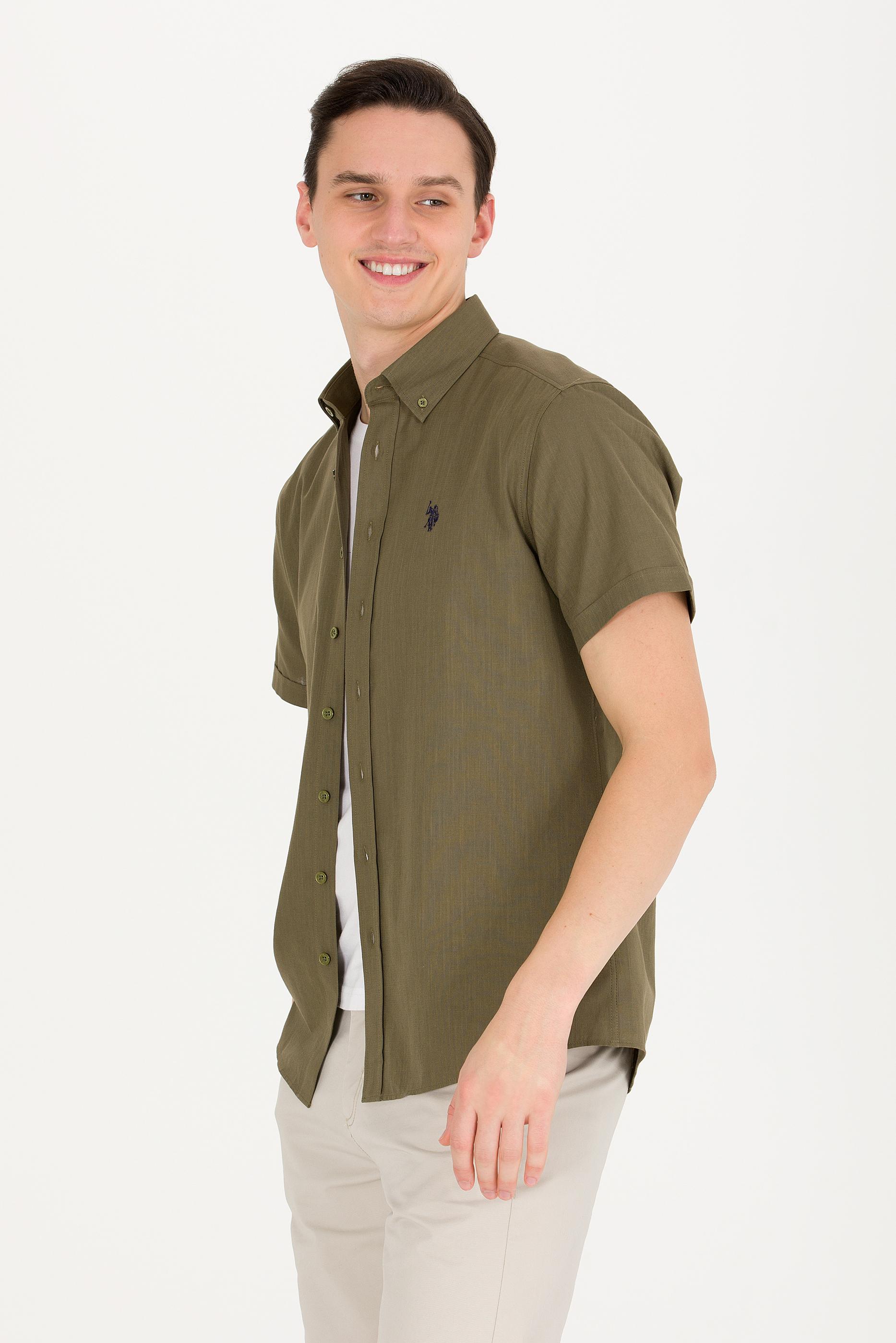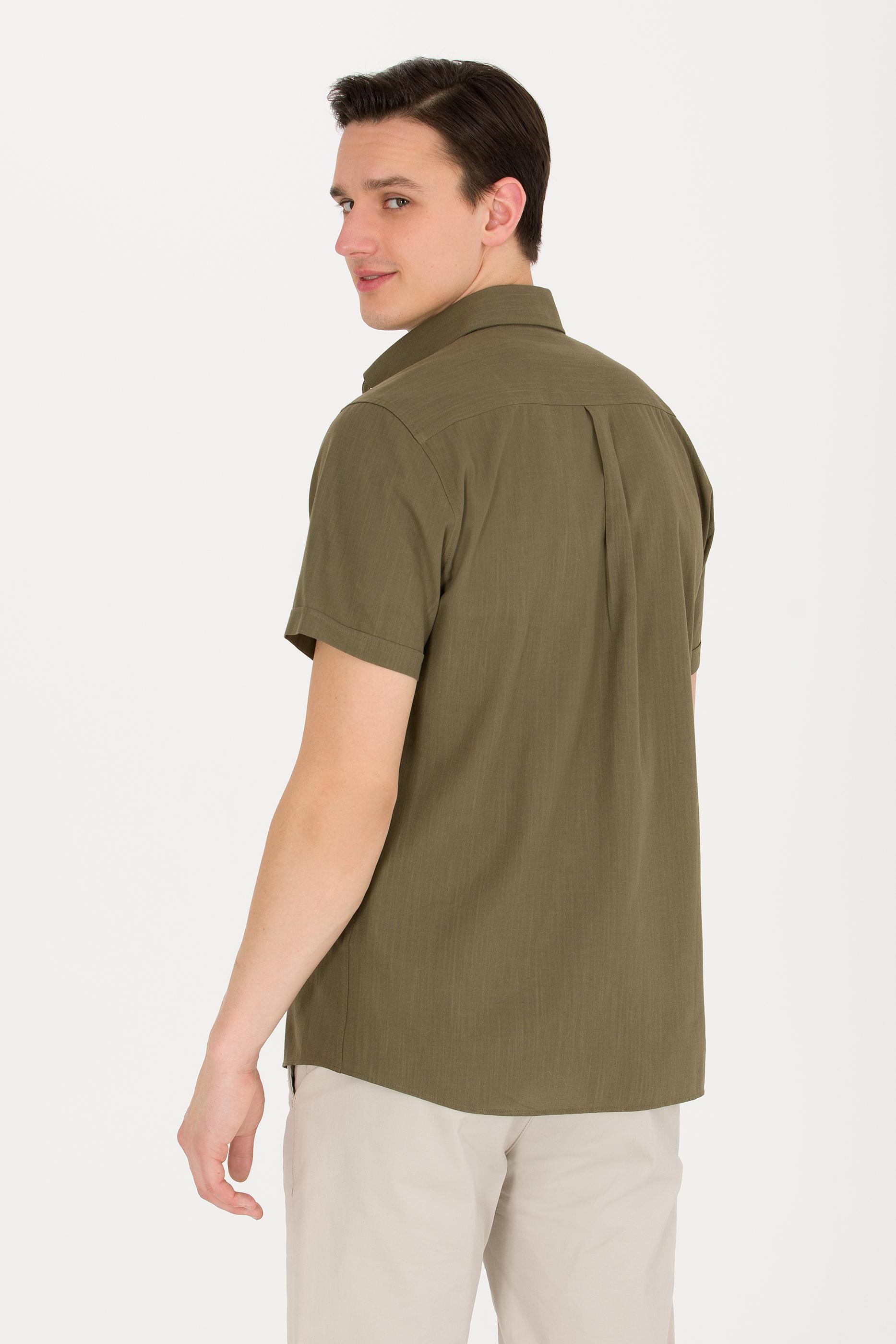 Erkek Koyu Haki Kısa Kollu Gömlek