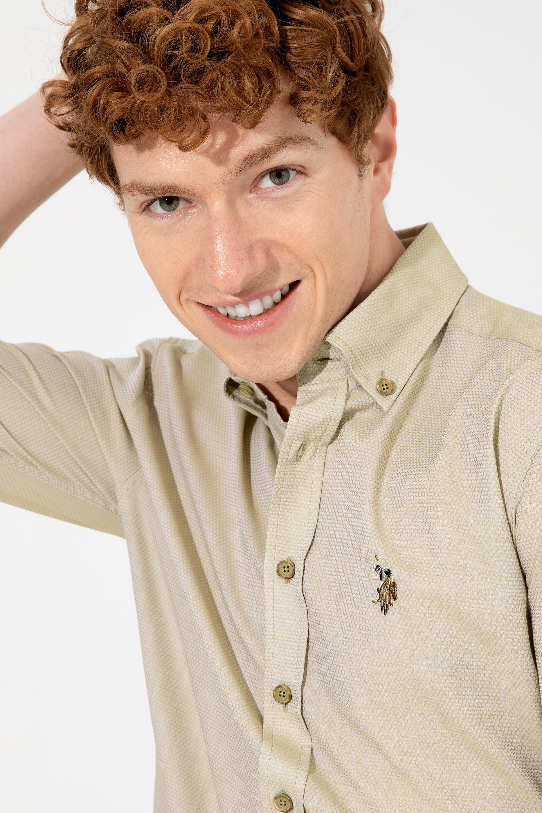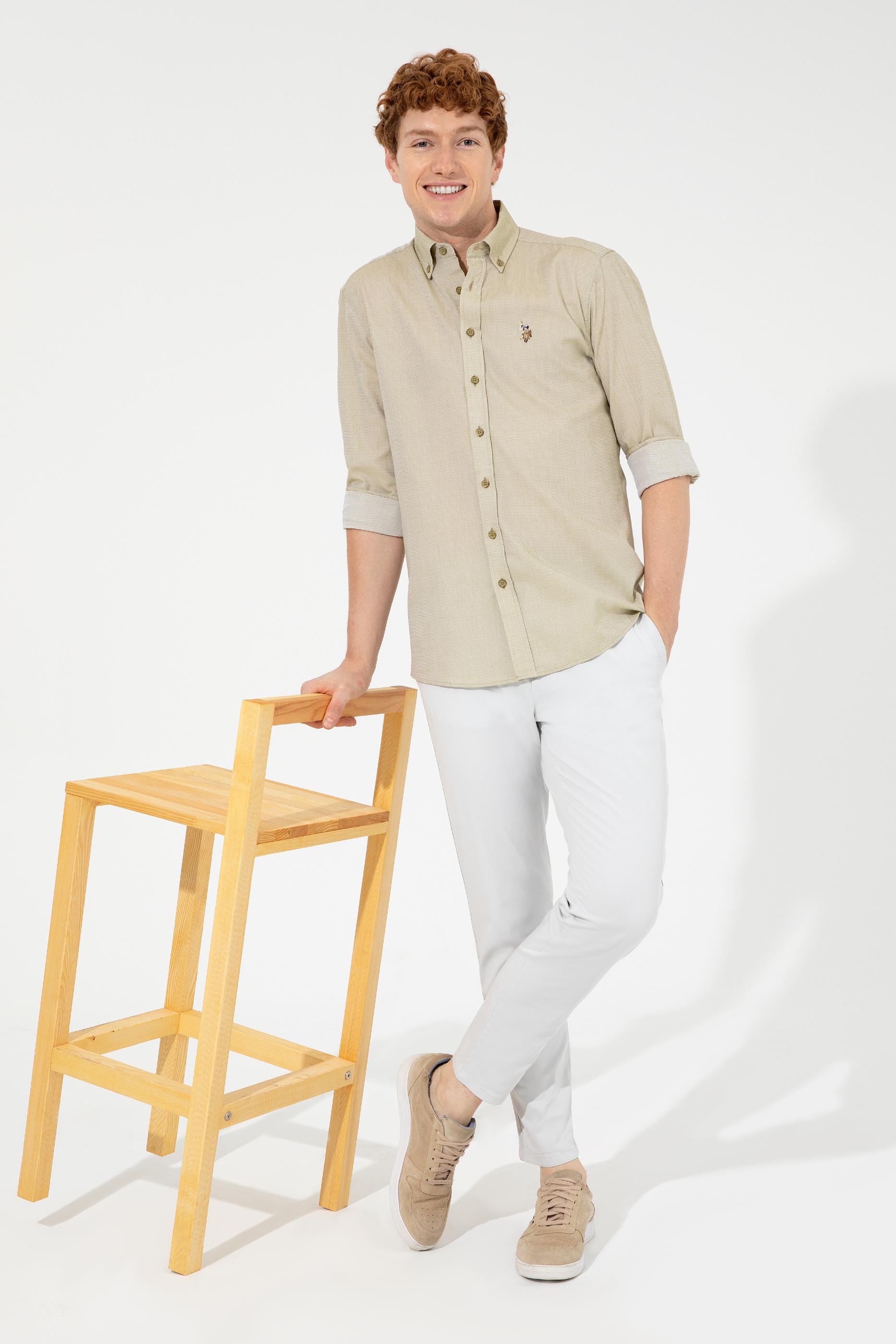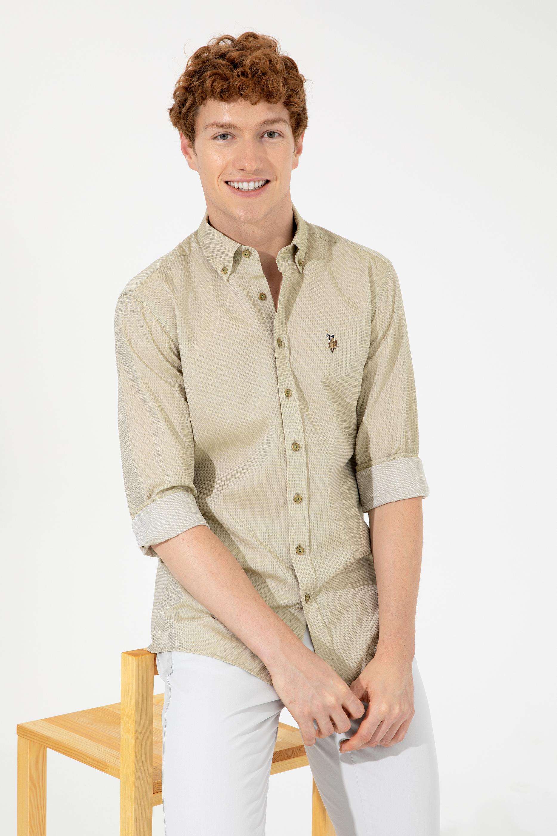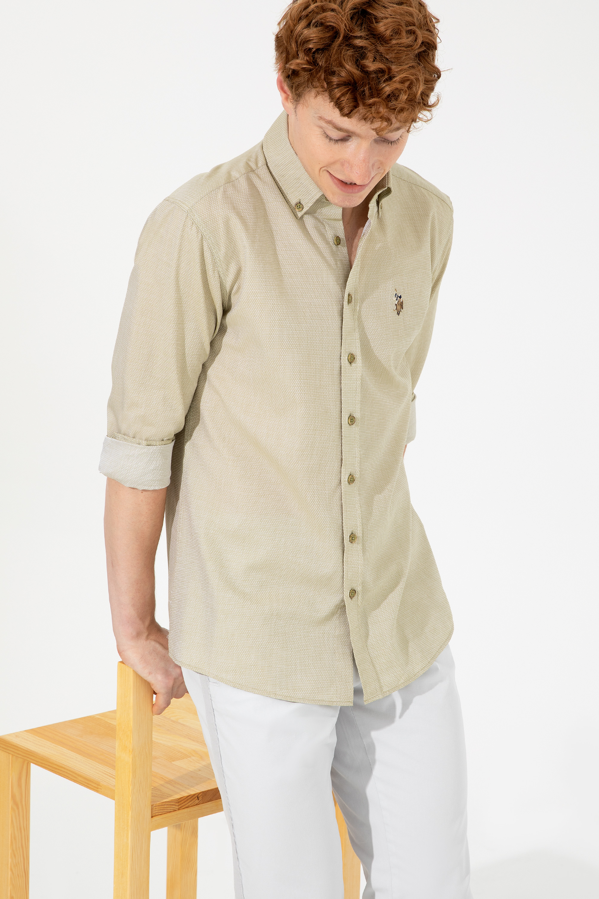 Erkek Koyu Haki Uzun Kollu Basic Gömlek