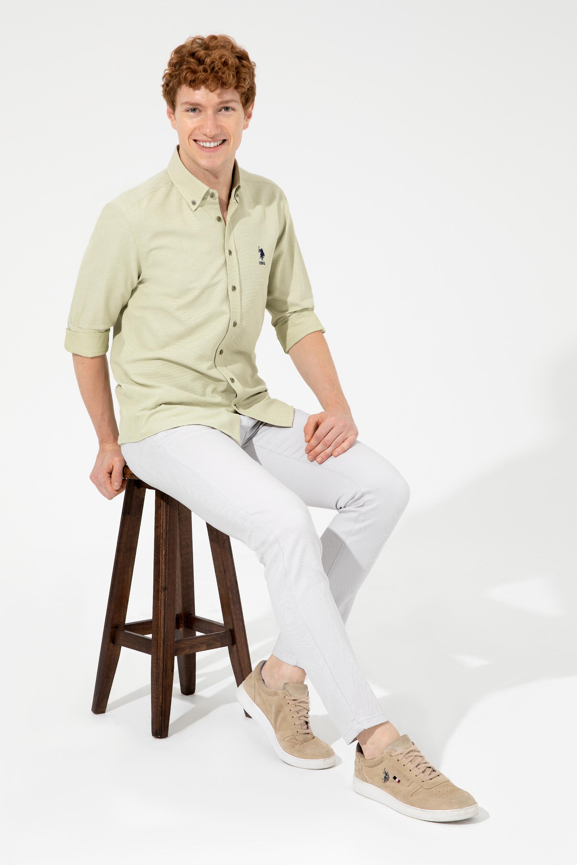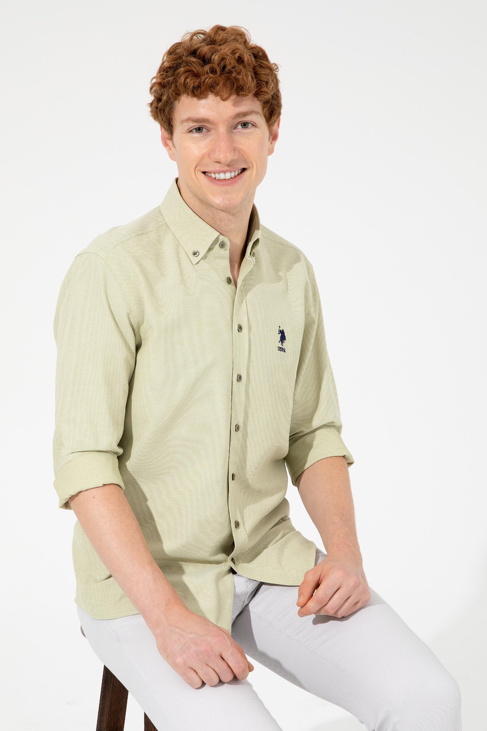 Erkek Koyu Haki Uzun Kollu Basic Gömlek