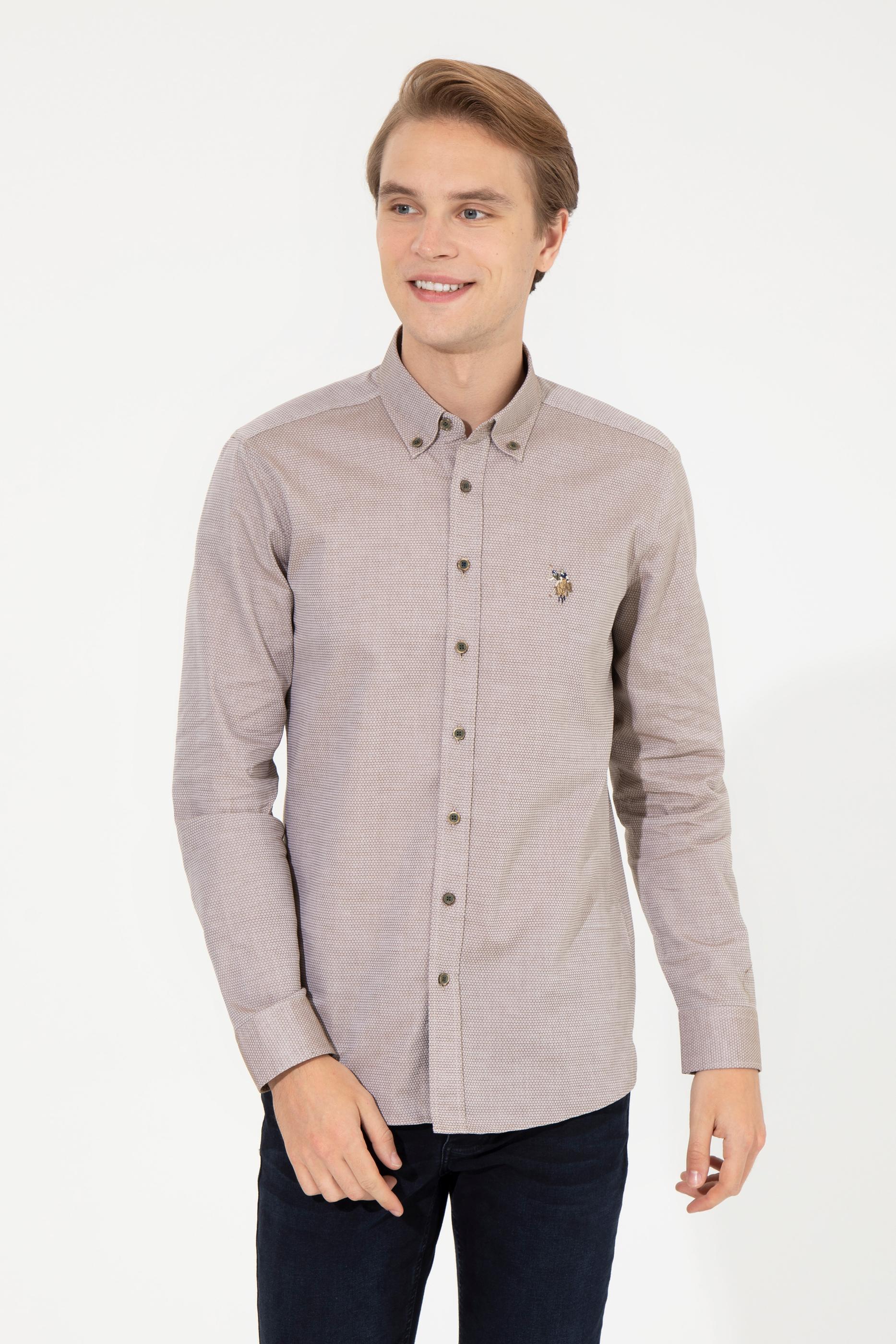 Erkek Koyu Haki Uzun Kollu Basic Gömlek - 50256733108